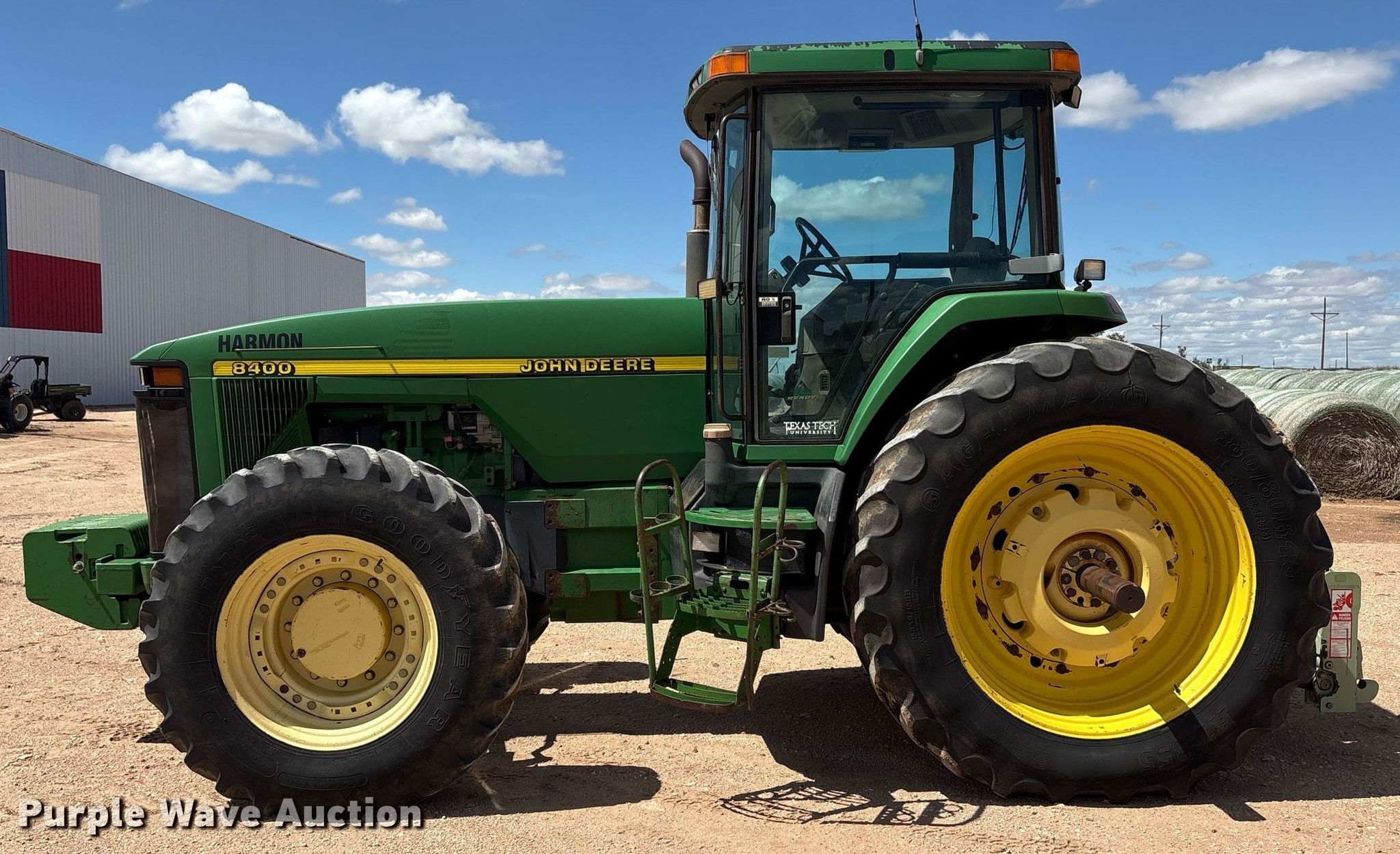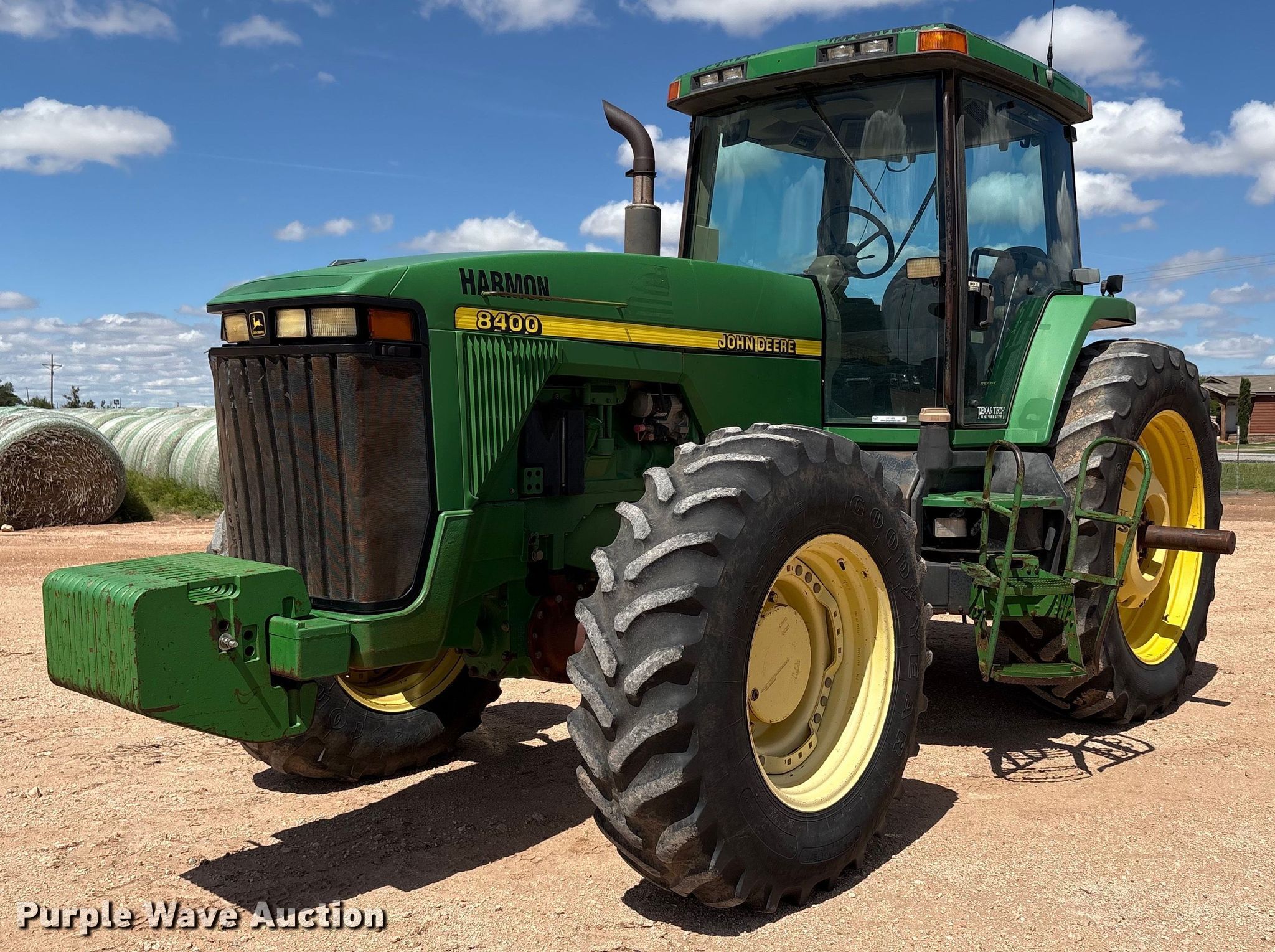Purple Wave is selling a used Tractor in Texas. This item is a 1998 John Deere 8400 MFWD tractor with the following: Hours: 5,726 on meter, Serial: RW8400P022951