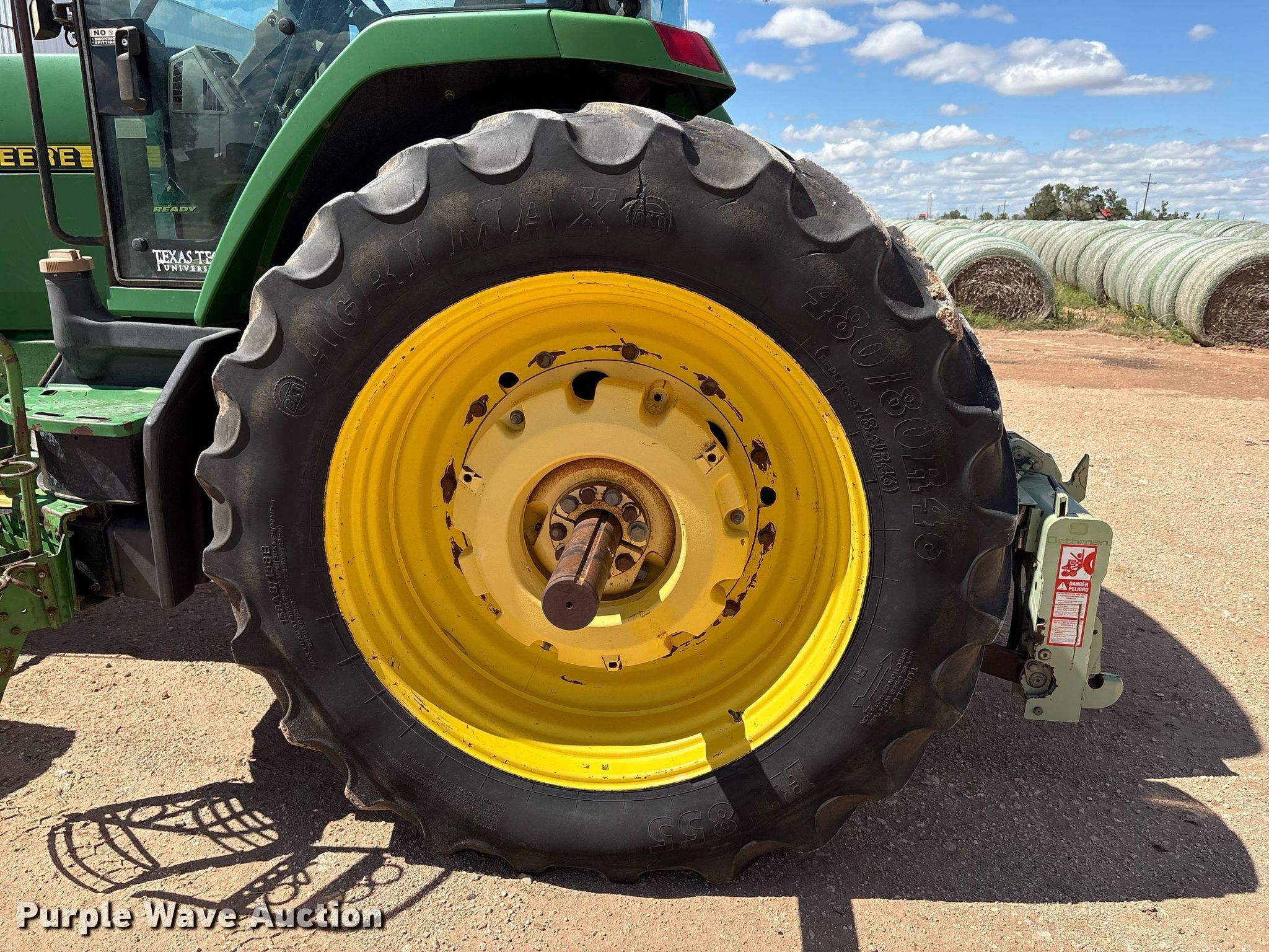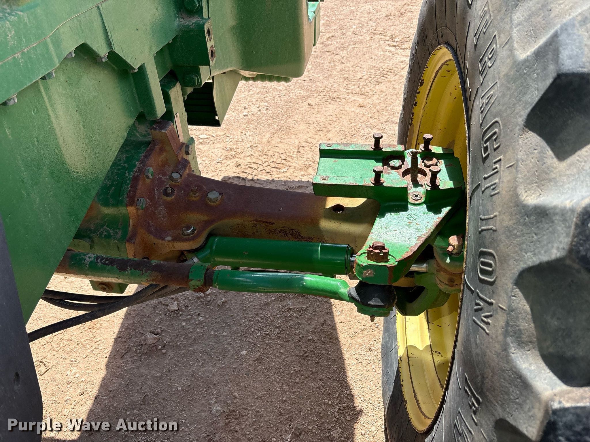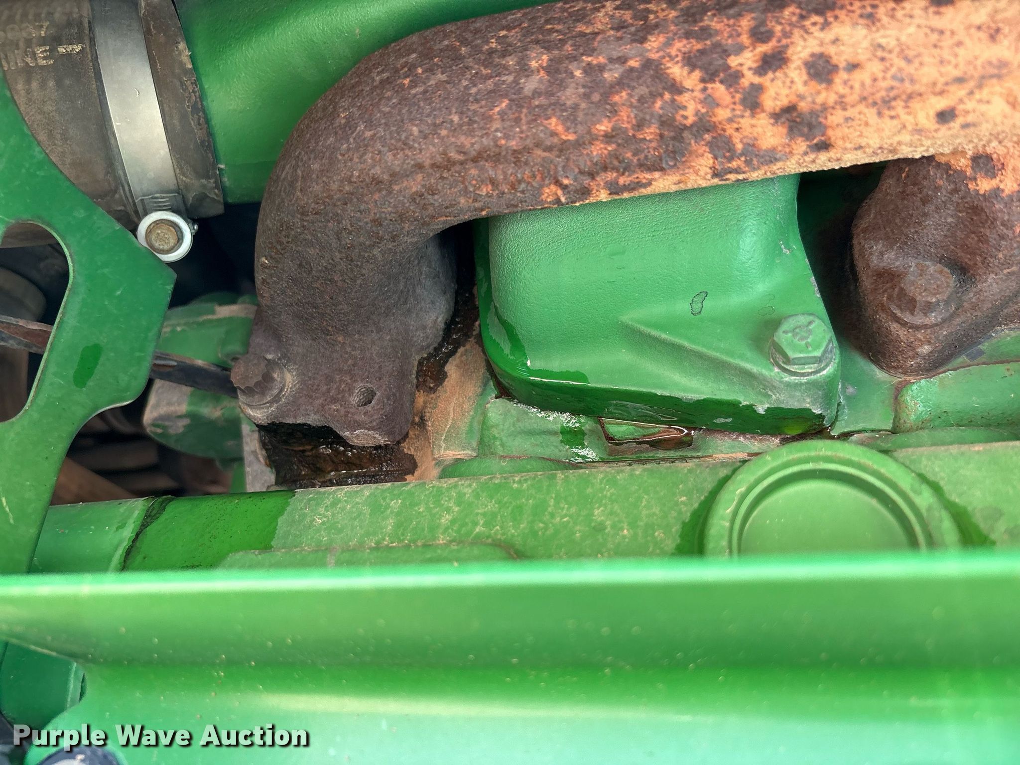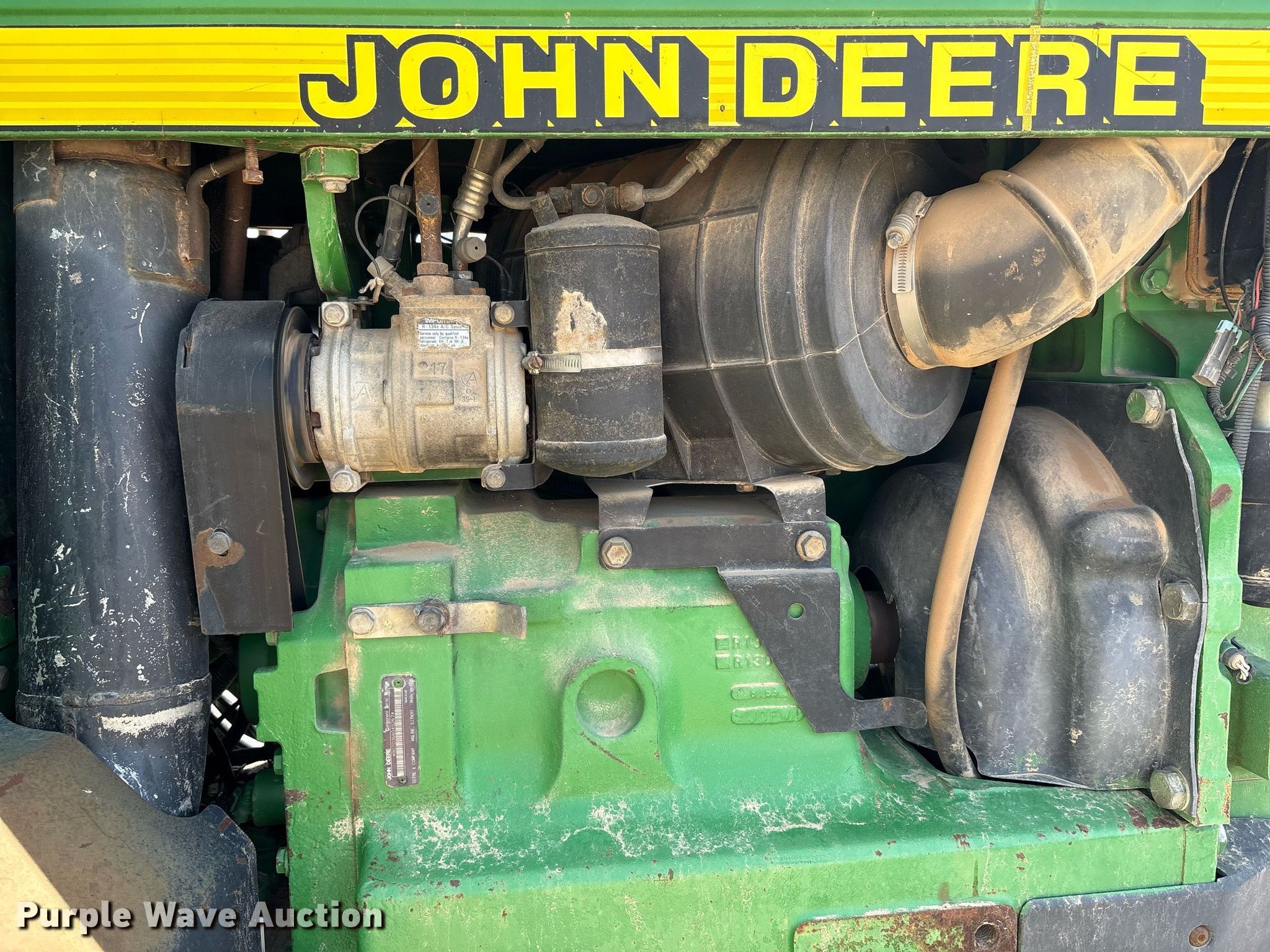 1998 John Deere 8400 MFWD tractor. Hours: 5,726 on meter, Serial: RW8400P022951. Engine John Deere 6081HRW17, Serial: RG6081H108164, Displacement: 8.1L, Cylinders: 6, Fuel type: Diesel. Transmission Powershift, 16F - 4R, Differential lock. Operators station AC, Heat. Features PTO: 1 3/4" 1000, Three point Top link, Quick attach, Seven pin outlet, Hydraulic remote sets Rear: 3, Suitcase weights: 14. Tires Front: 420/90R30, Rear: 480/80R46, Wheel weights: 2. Notes Warning indicator: Engine light. Harmon Farms. Lubbock, TX 79403