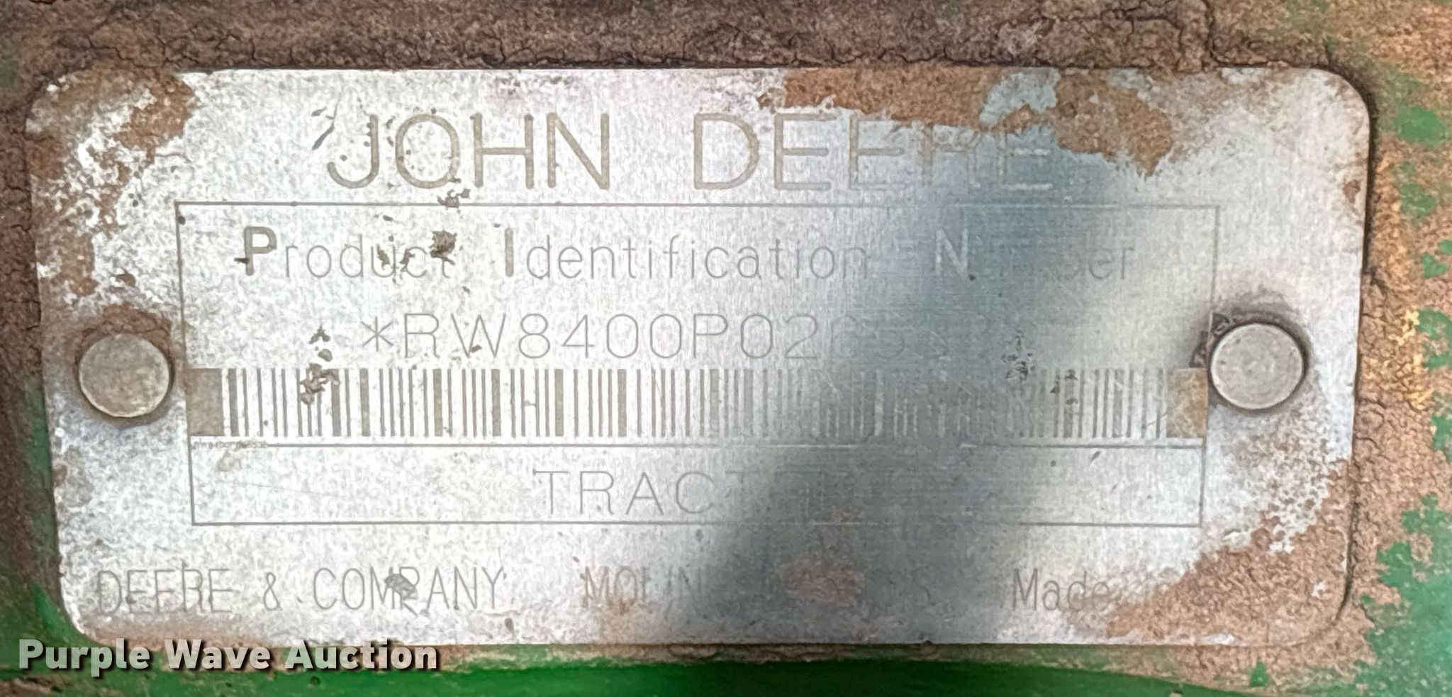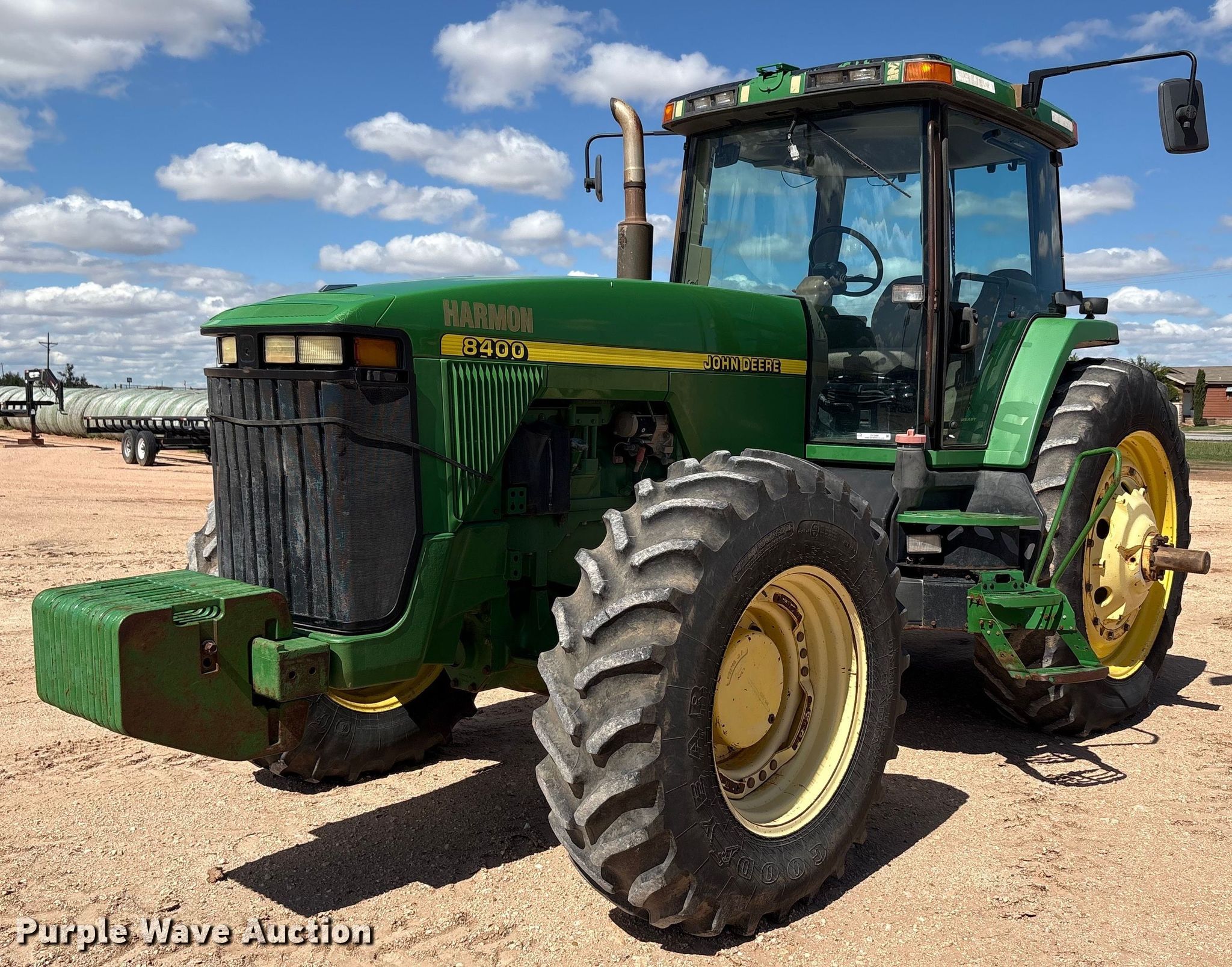 Purple Wave is selling a used Tractor in Texas. This item is a 1999 John Deere 8400 MFWD tractor with the following: Hours: 2,886 on meter, Serial: RW8400P026538