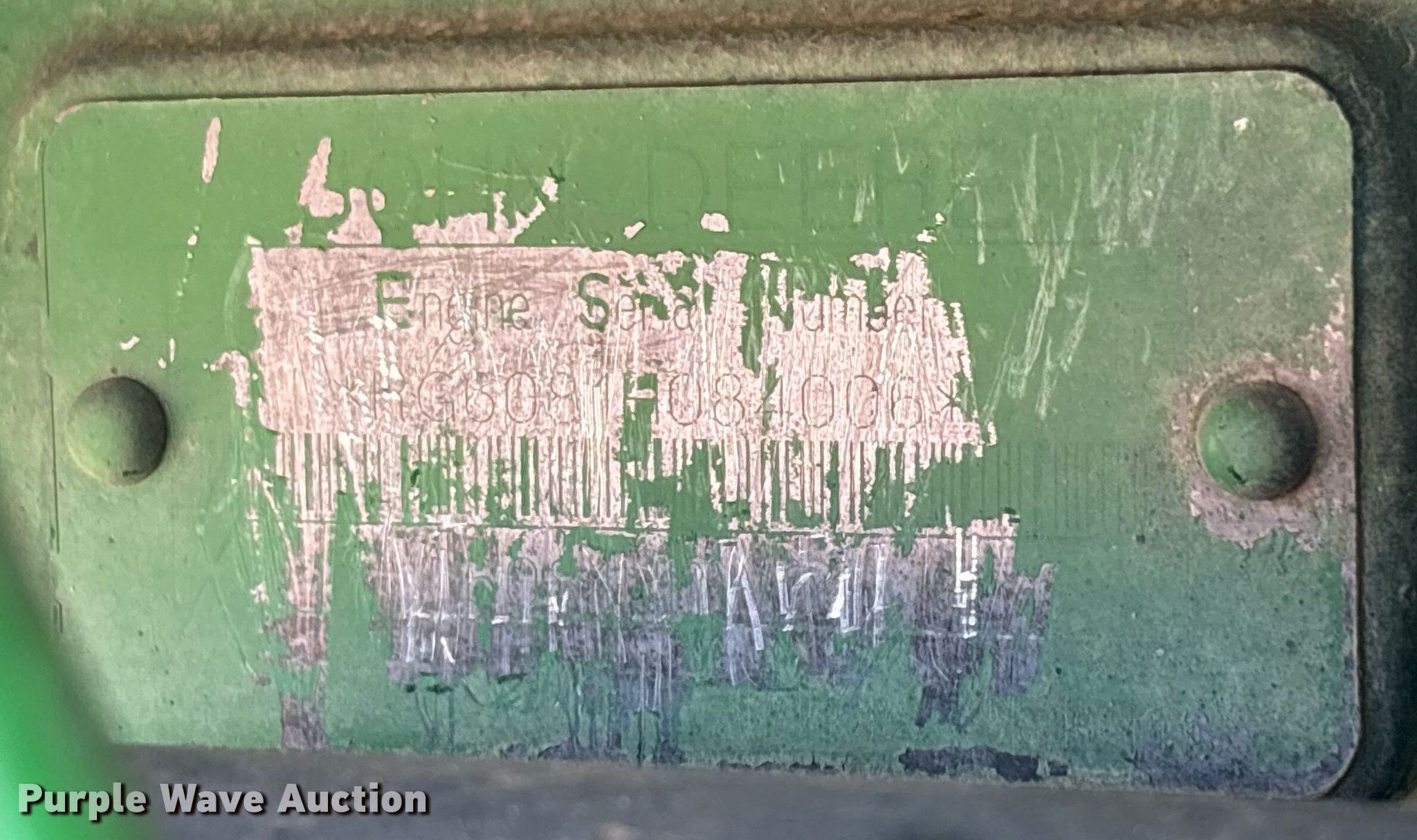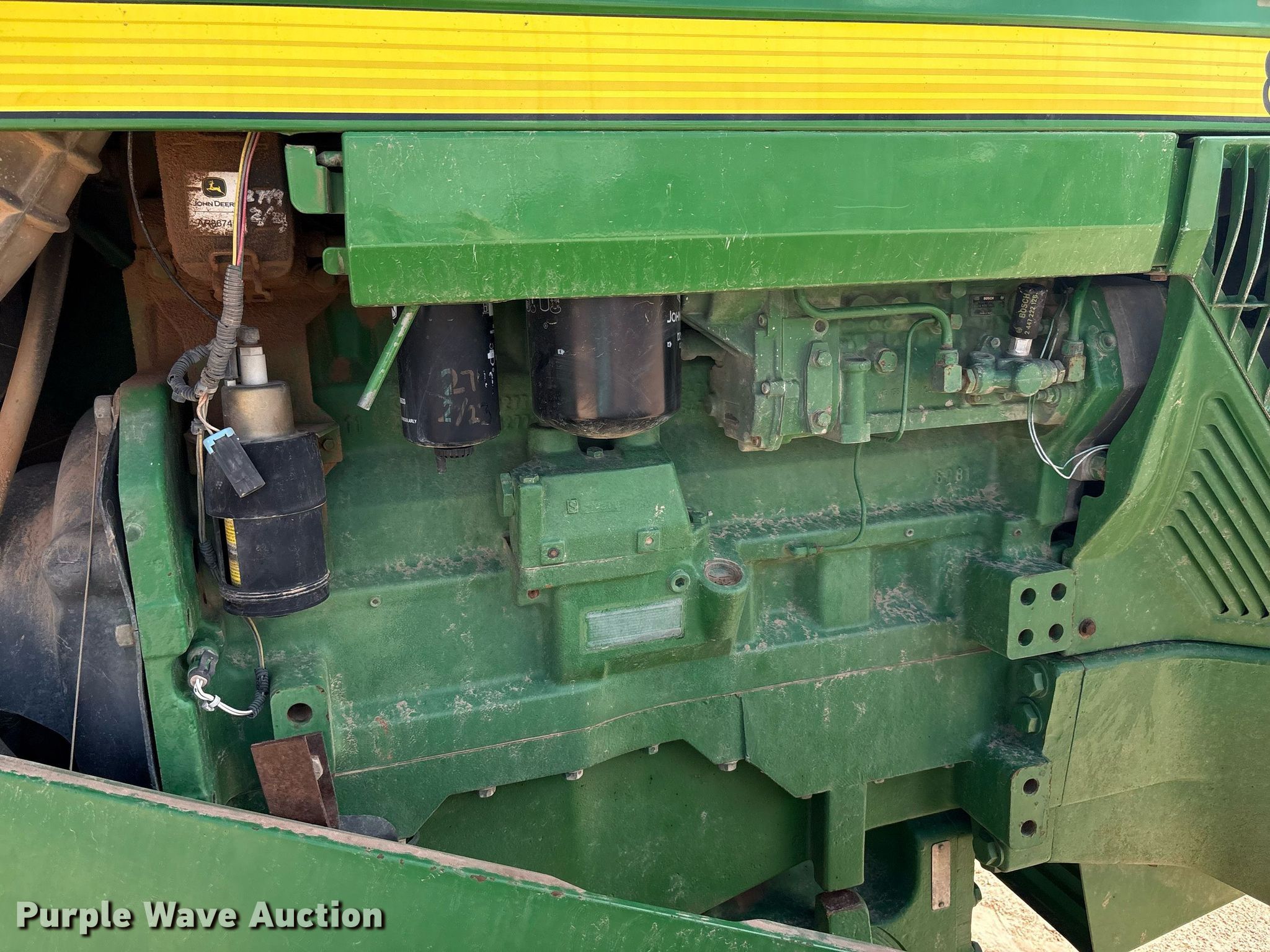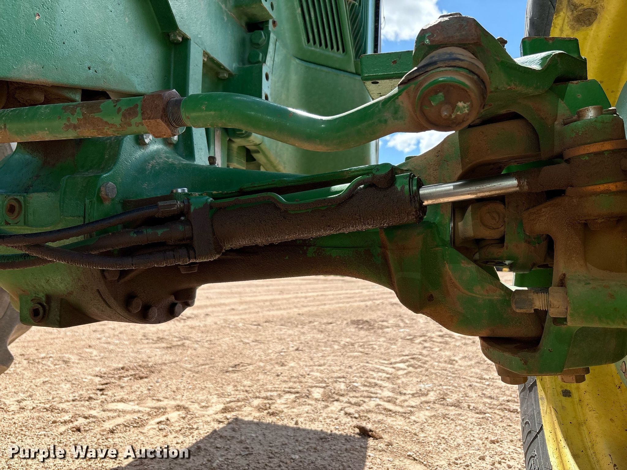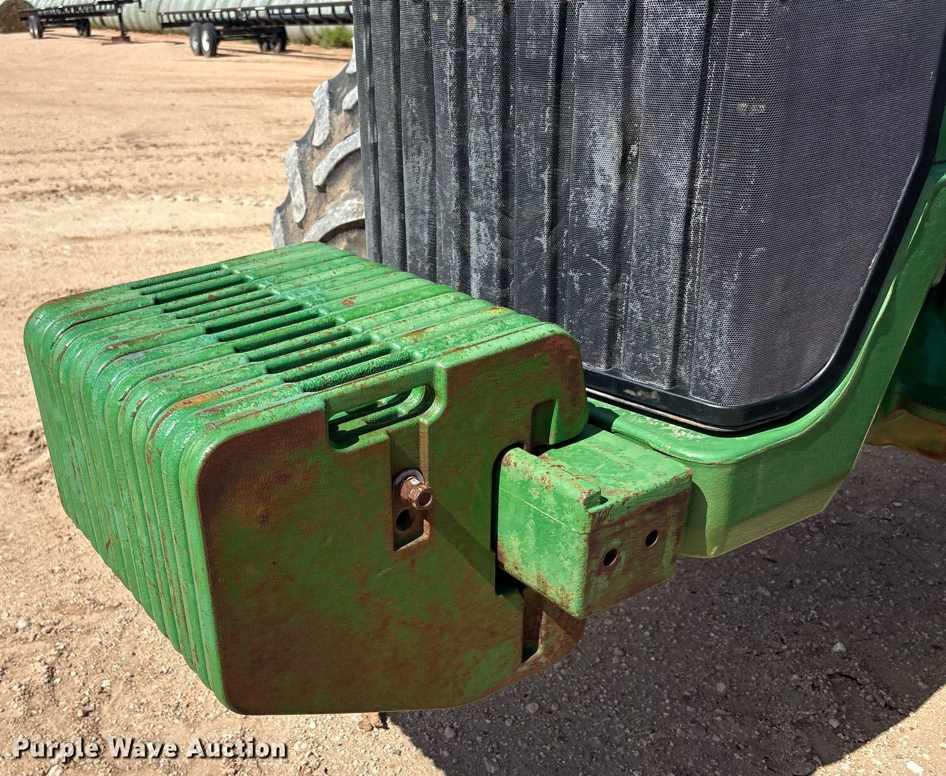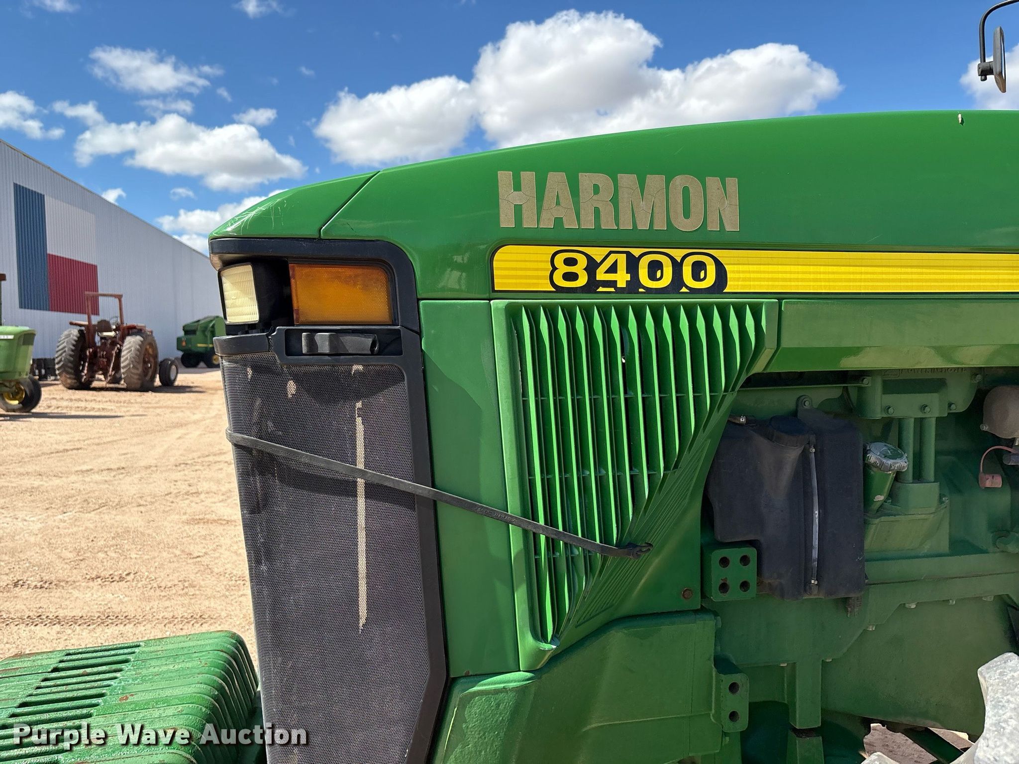 1999 John Deere 8400 MFWD tractor. Hours: 2,886 on meter, Serial: RW8400P026538. Engine John Deere 6081, Displacement: 8.1L, Cylinders: 6, Fuel type: Diesel. Transmission Powershift, 16F - 4R, Differential lock. Operators station AC, Heat. Features PTO: 1 3/4" 1000, Three point Top link, Quick attach, Seven pin outlet, ISOBUS outlet, Hydraulic remote sets Rear: 4, Suitcase weights: 14. Tires Front: 420/90R30, Rear: 480/80R46. Harmon Farms. Lubbock, TX 79403