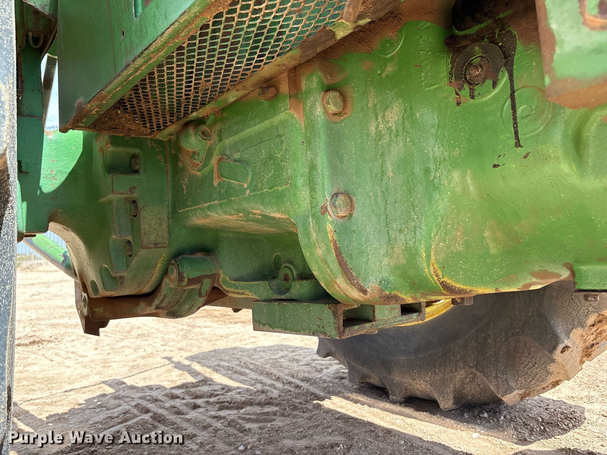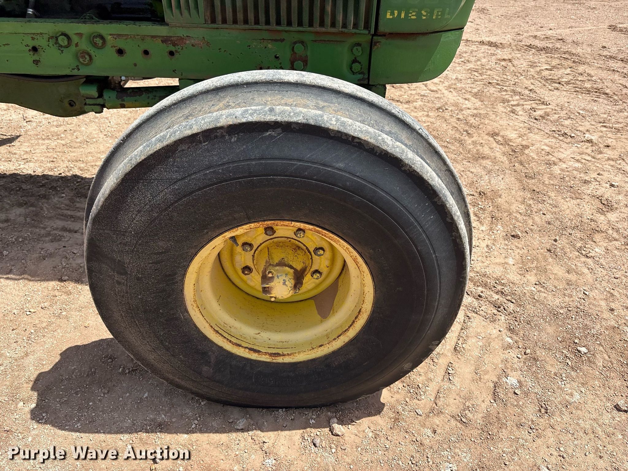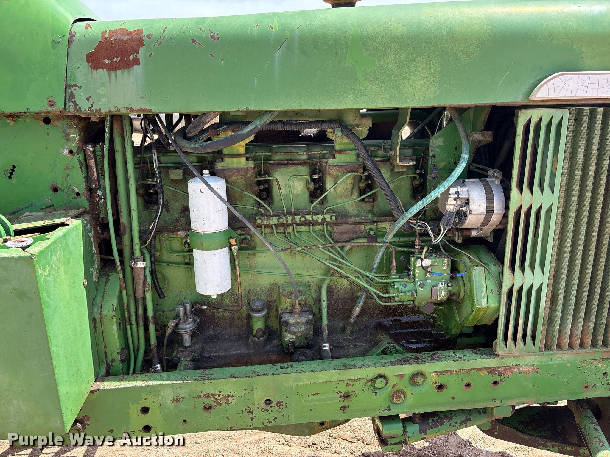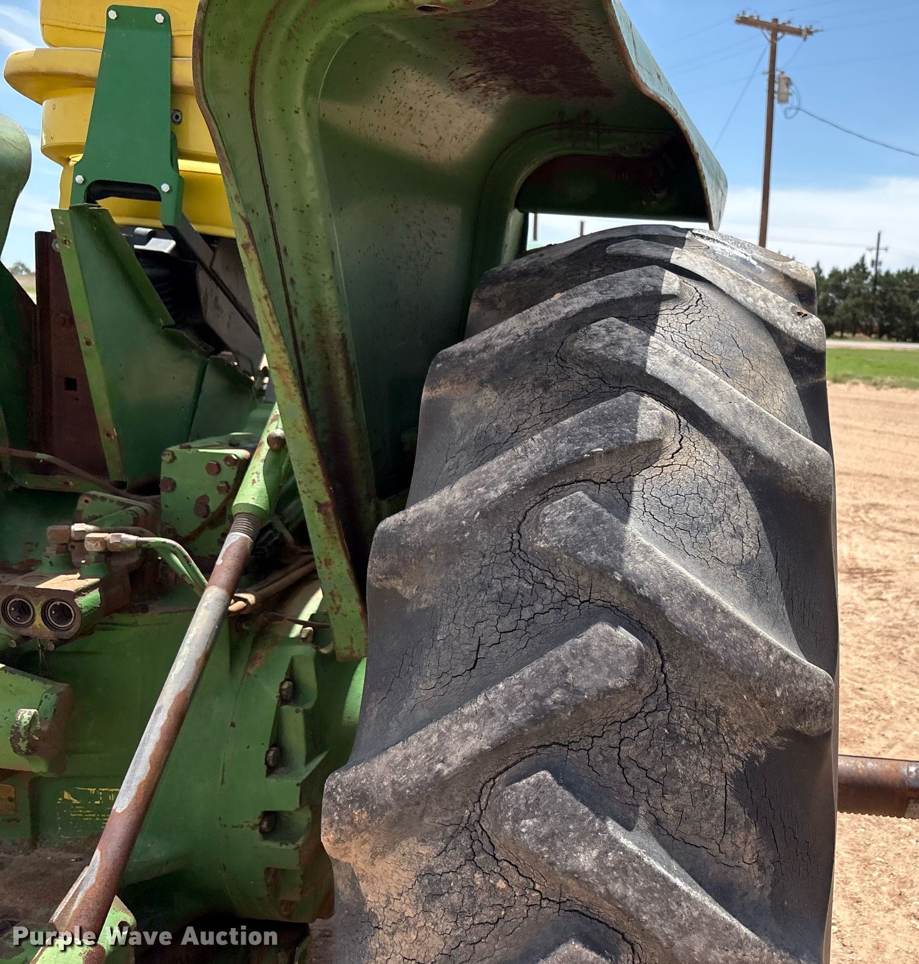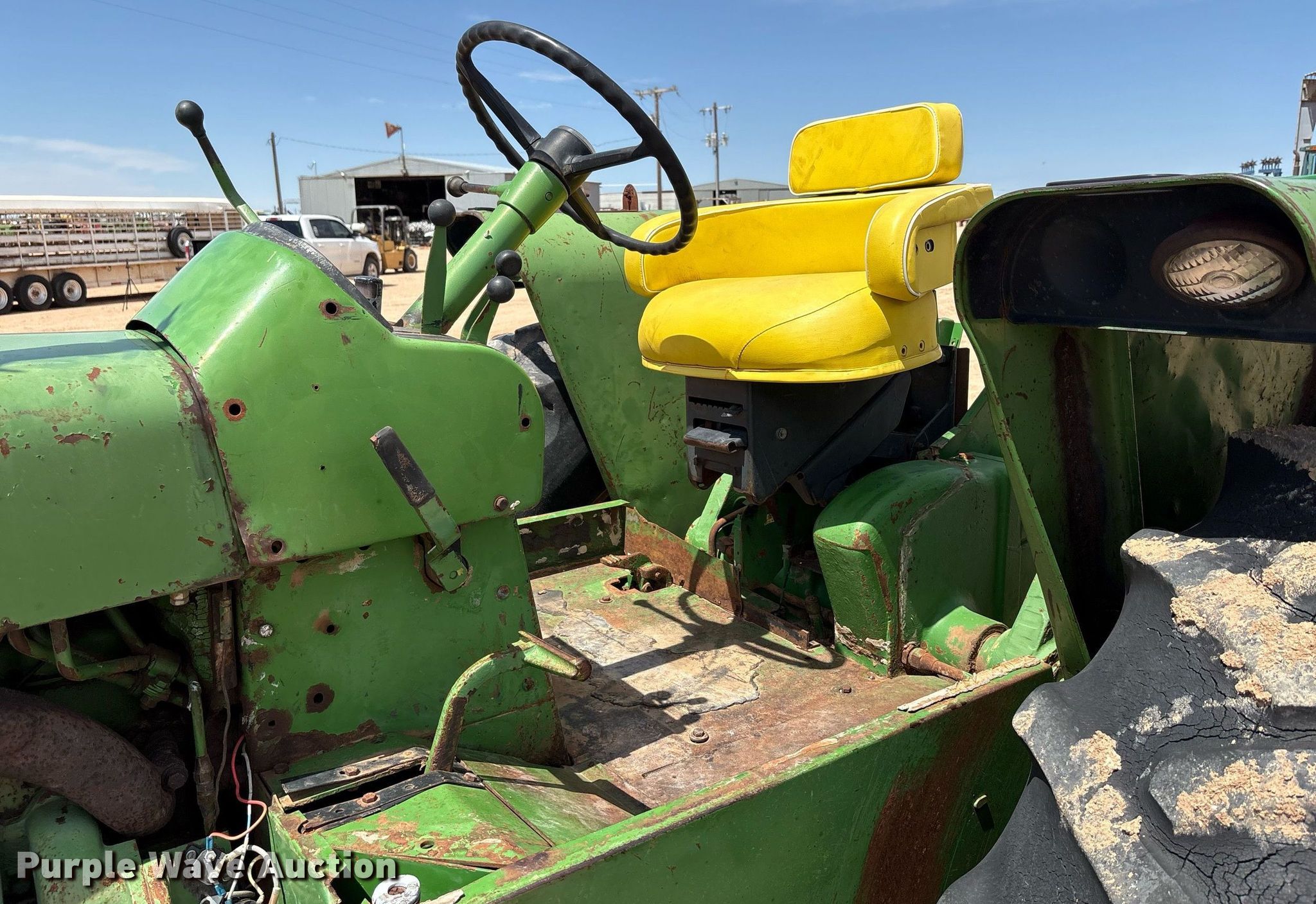 1970 John Deere 5020 tractor. Hours: 4,122 on meter, Serial: 028189R. Engine John Deere 531DRA, Serial: 031326R, Cylinders: 6, Fuel type: Diesel. Transmission Synchro, 8F - 2R. Features PTO: 1000, Three point, Hydraulic remote sets Rear: 2. Tires Front: 11.00-16SL, Rear: 18.4-38, Wheel weights: 2. Notes Dead battery, Fuel leak. Harmon Farms. Lubbock, TX 79403
