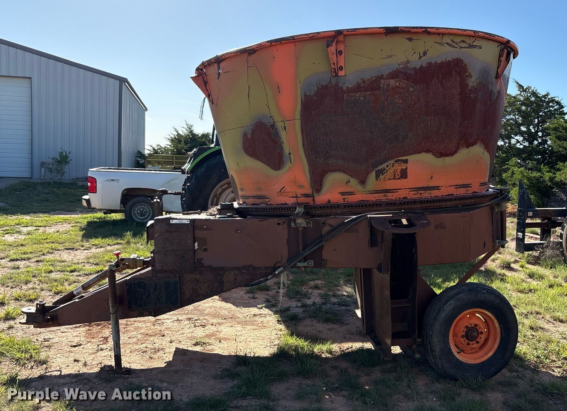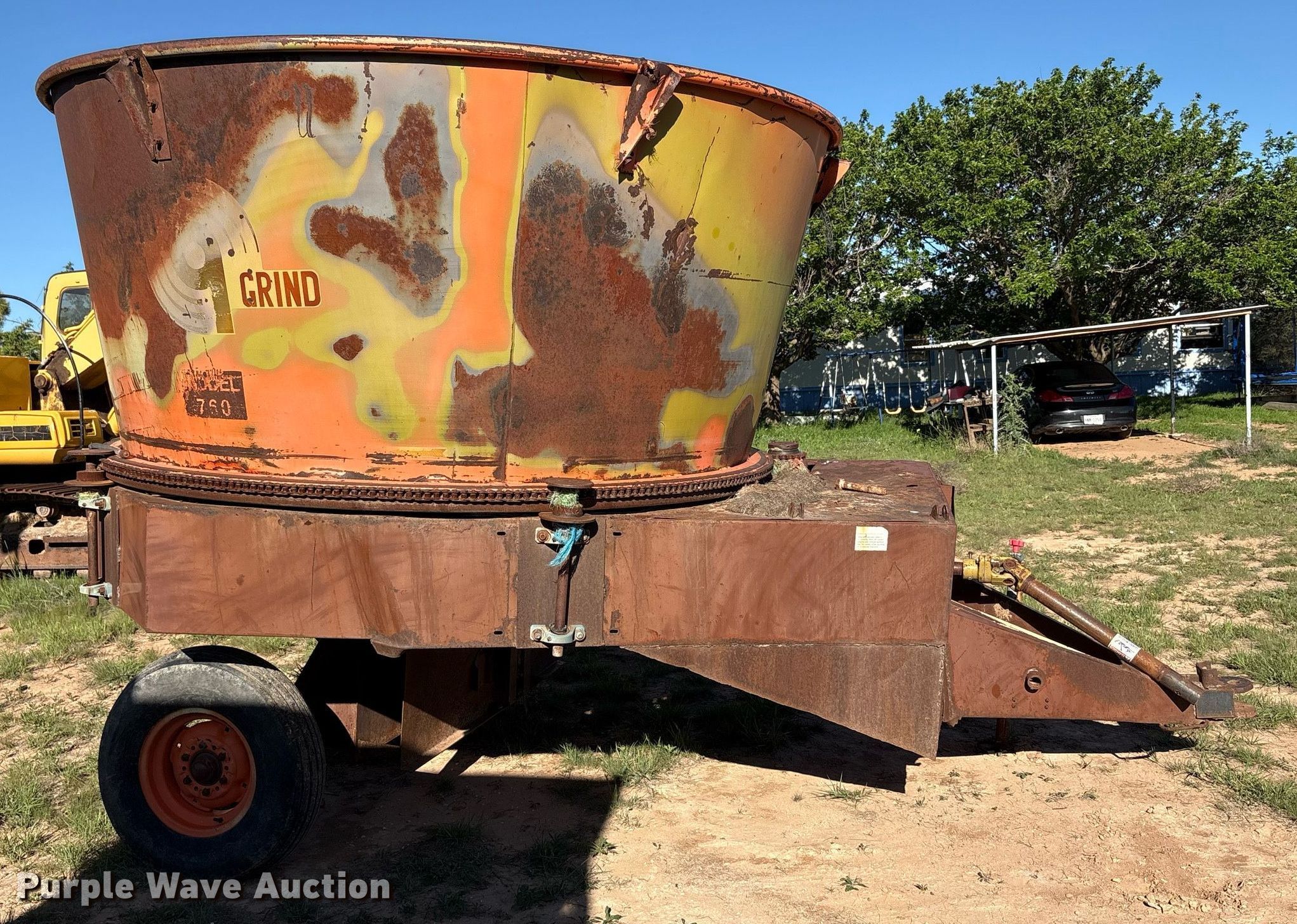 Purple Wave is selling a used Feed Mixer or Bale Processor in Texas. This item is a Roto Grind 760 tub grinder with the following: Discharge: Side, Width: 9"