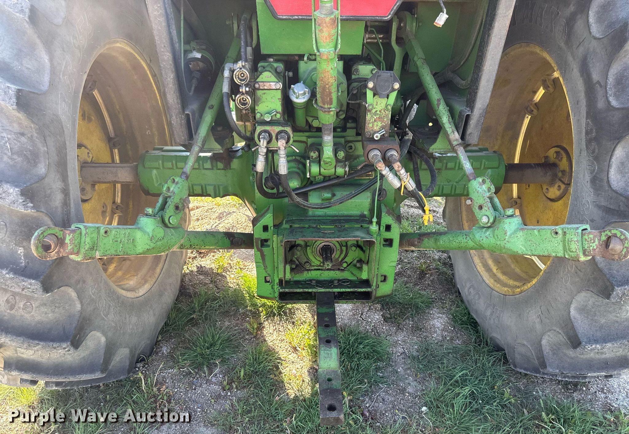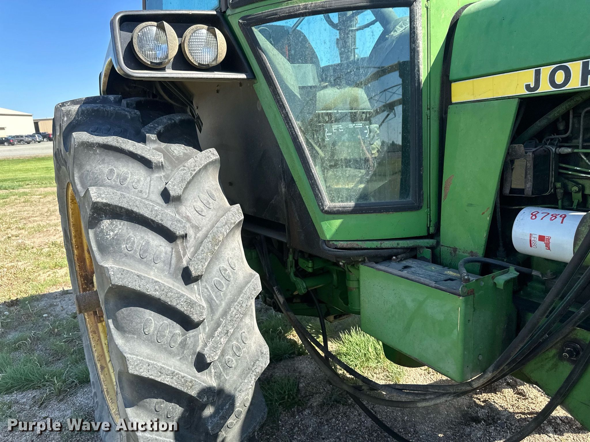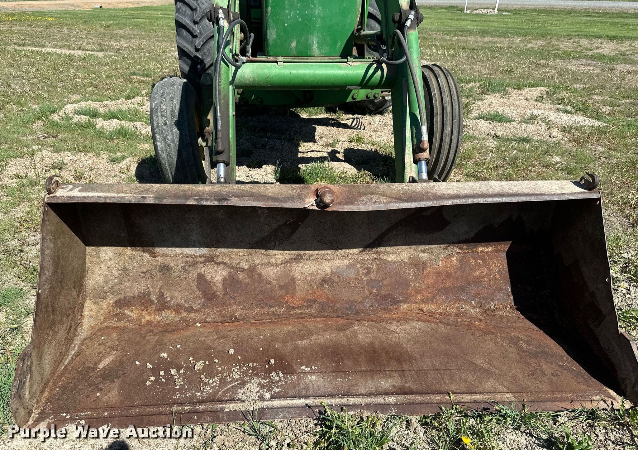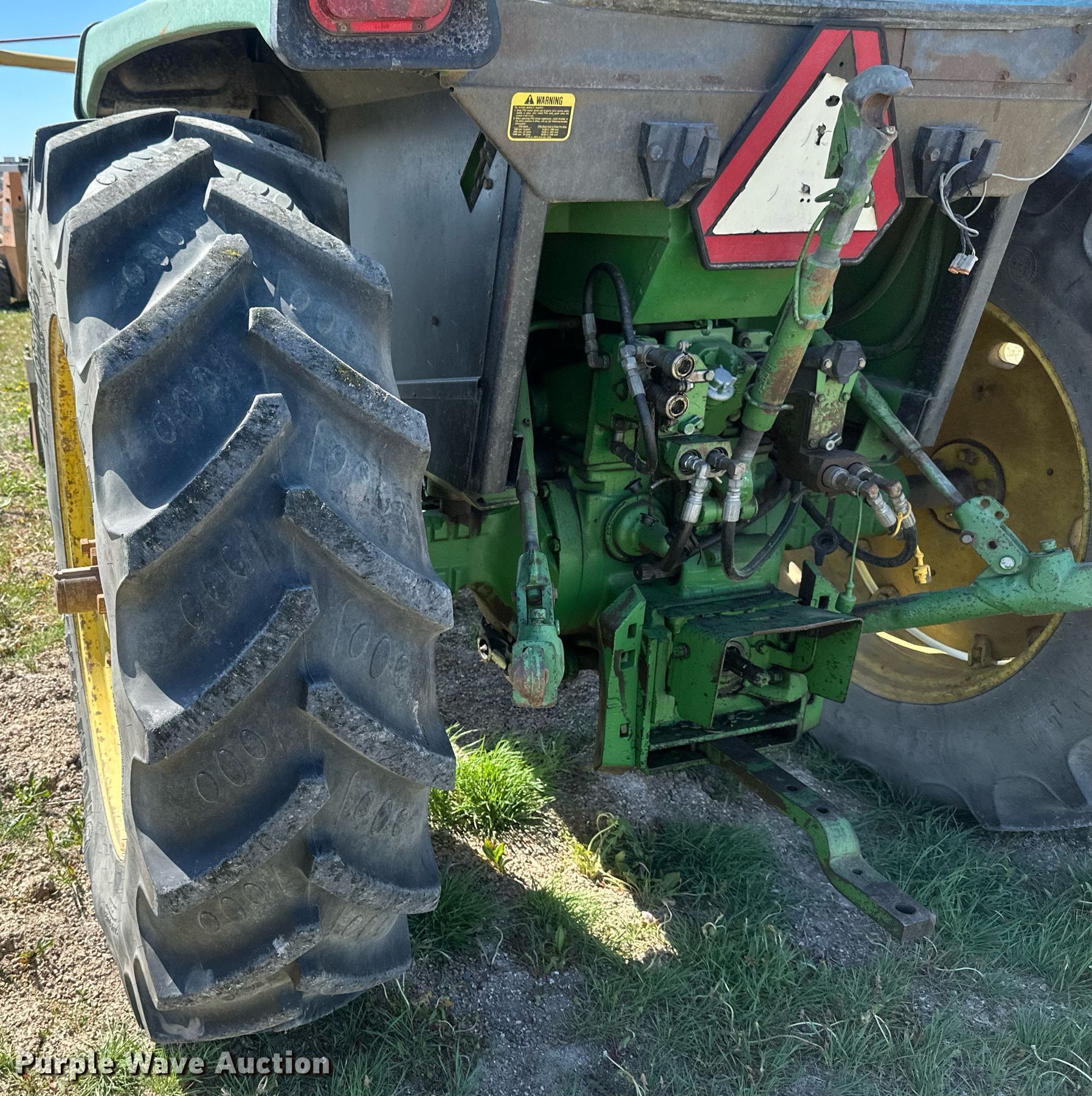 John Deere 4040 tractor. Hours: 8,806 on meter. Engine Cylinders: 6, Fuel type: Diesel. Transmission Quad-range, 16F - 6R, Differential lock. Operators station AC, Heat. Features PTO: 540, Three point Top link, Seven pin outlet, Rear: 3, Loader John Deere 158, Controls: Two-lever, Bucket Width: 84".. Tires Front: 10.00-16, Rear: 16.9R38. Christensen Family Farms. Sleepy Eye, MN 56085