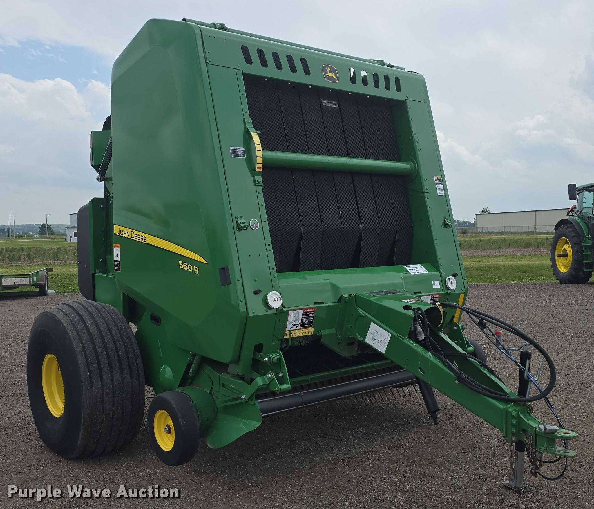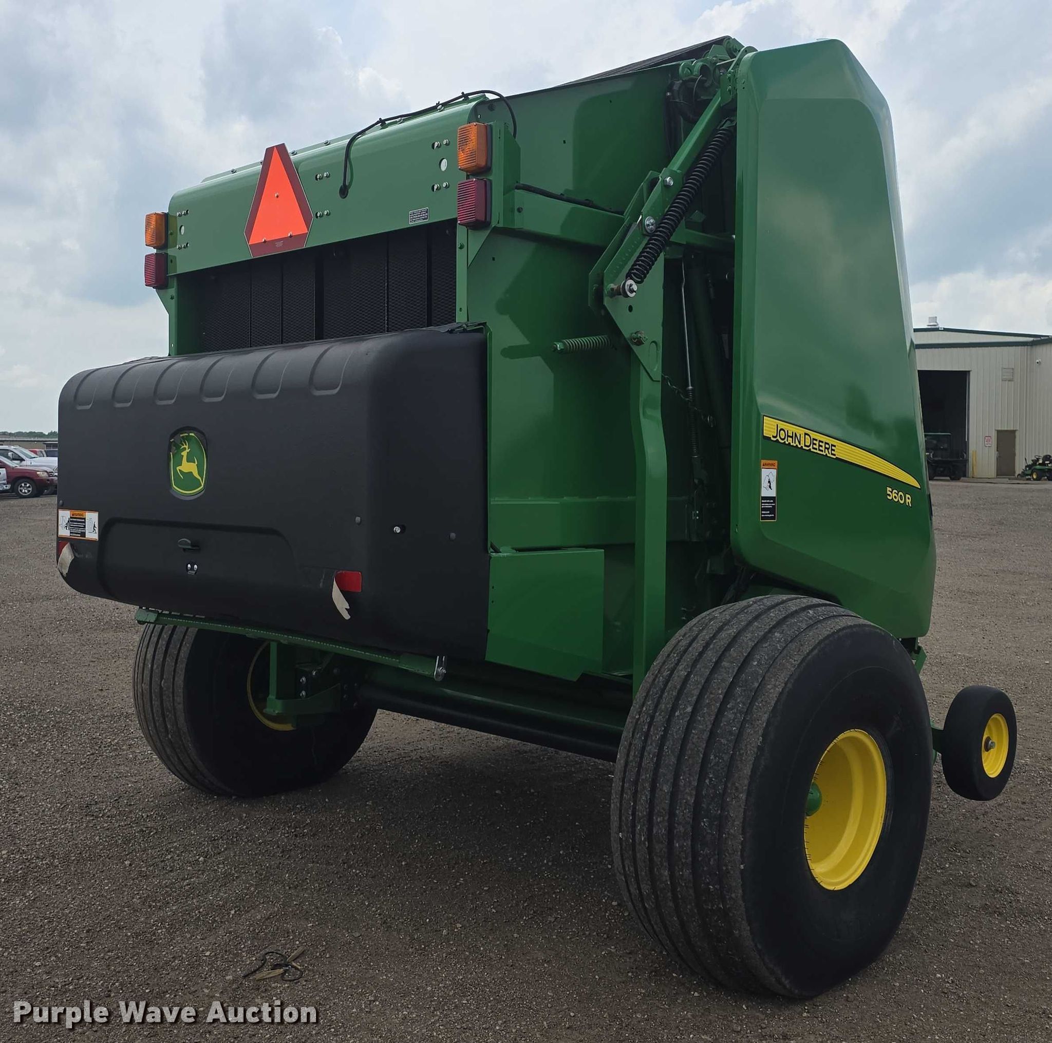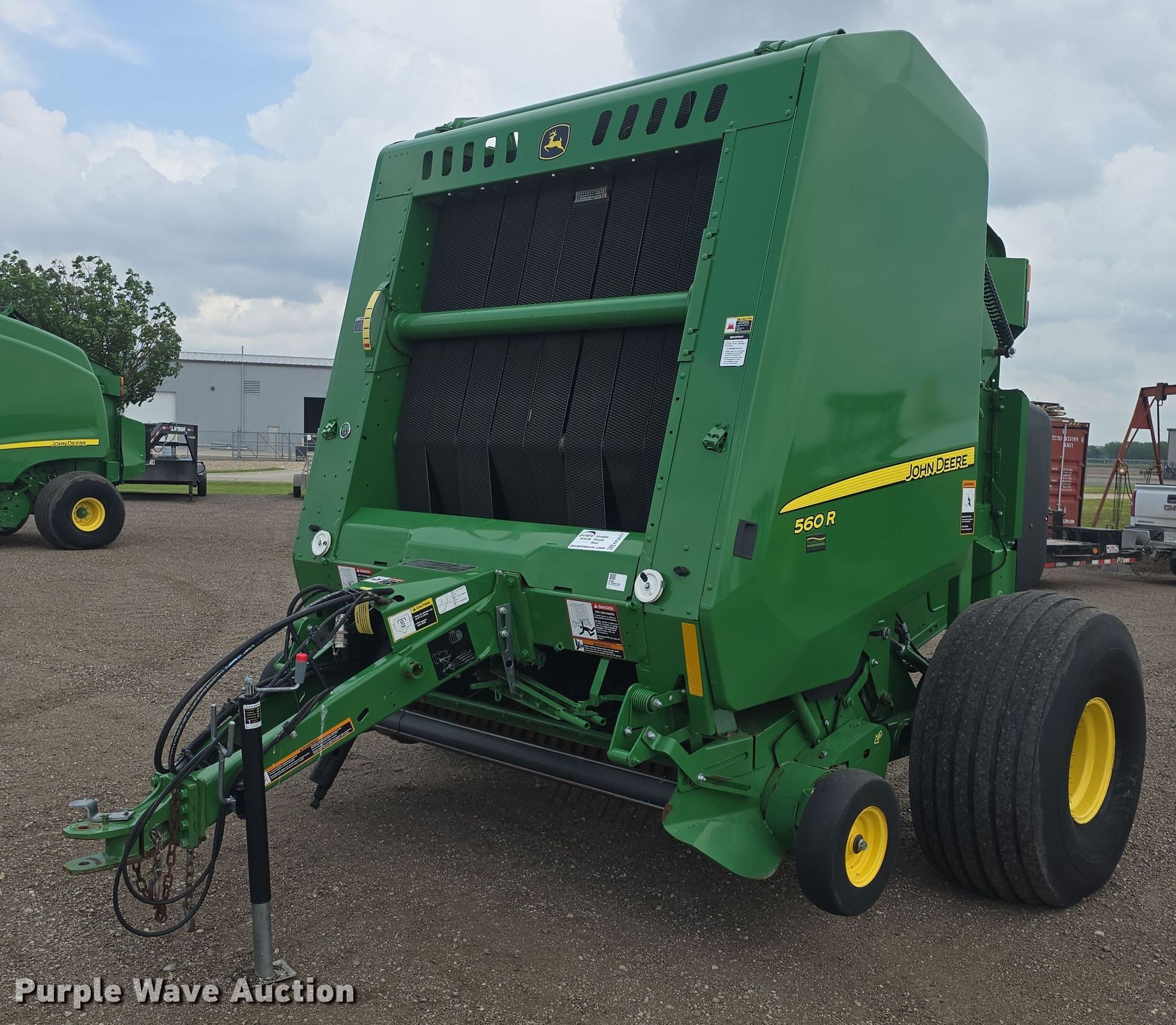 Purple Wave is selling a used Round Baler in Kansas. This item is a 2020 John Deere 560R Premium round baler with the following: Bale count: 9,177, Serial: 1E0560RDJLL468250, Unit #: 481045