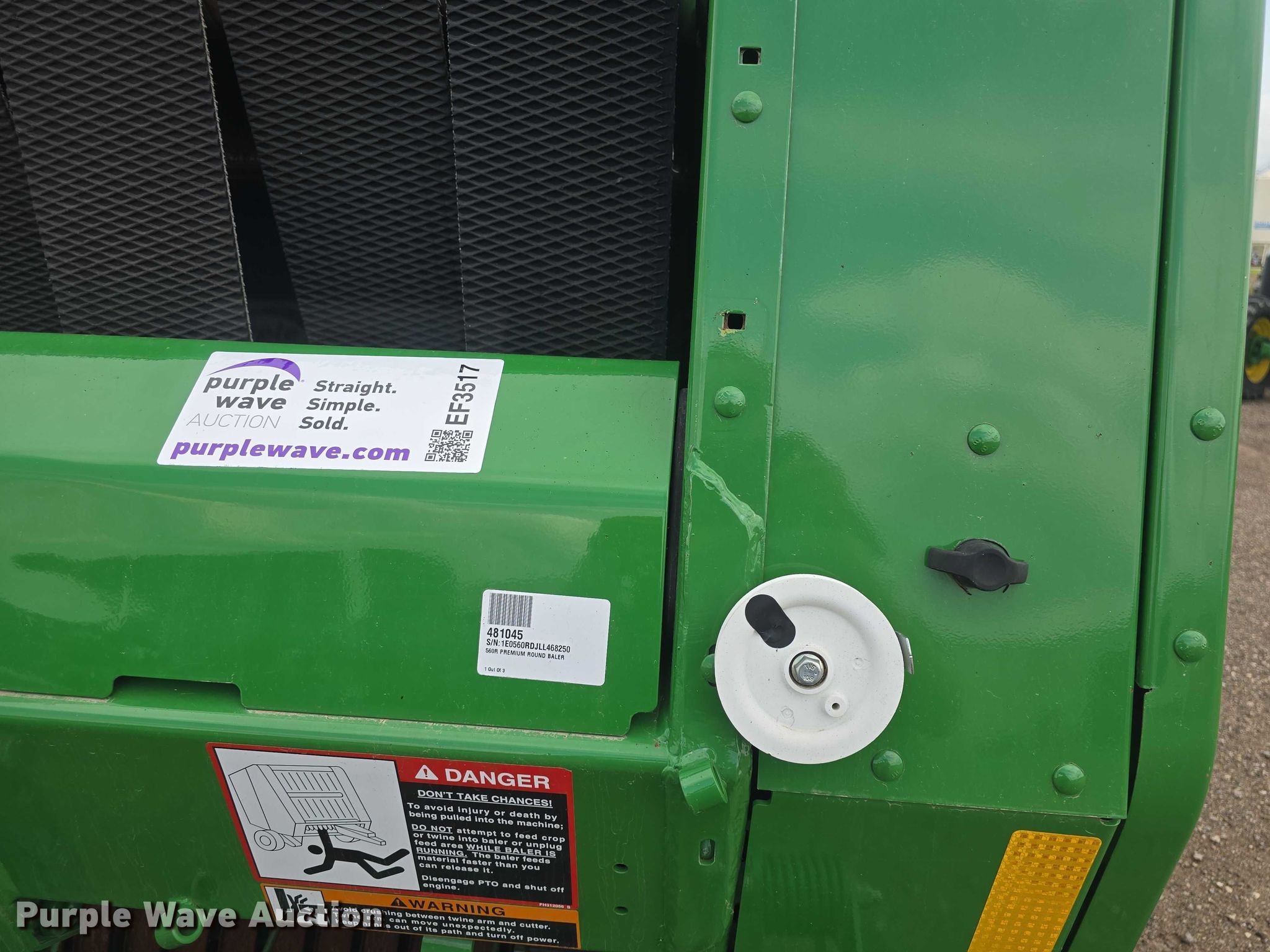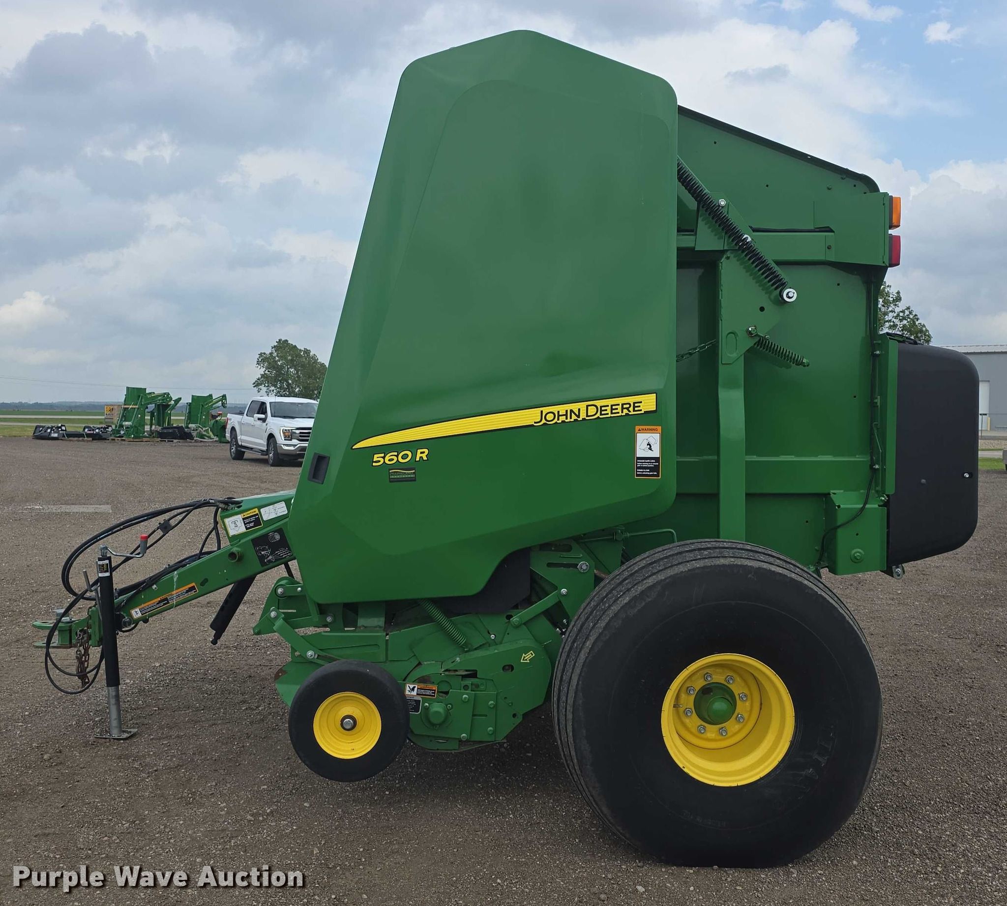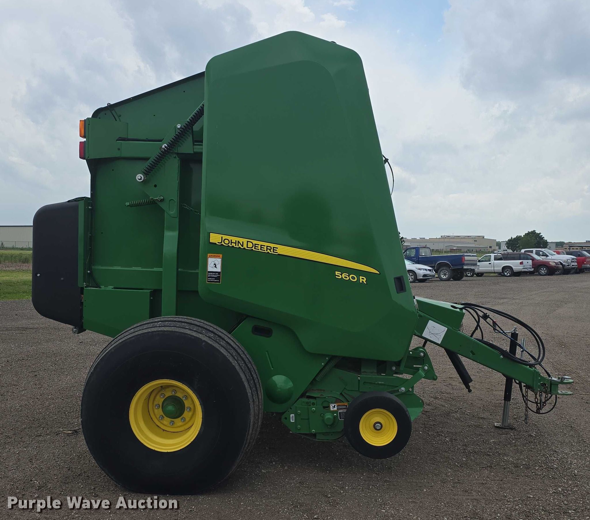 Purple Wave is selling a used Round Baler in Kansas. This item is a 2020 John Deere 560R Premium round baler with the following: Bale count: 9,177, Serial: 1E0560RDJLL468250, Unit #: 481045