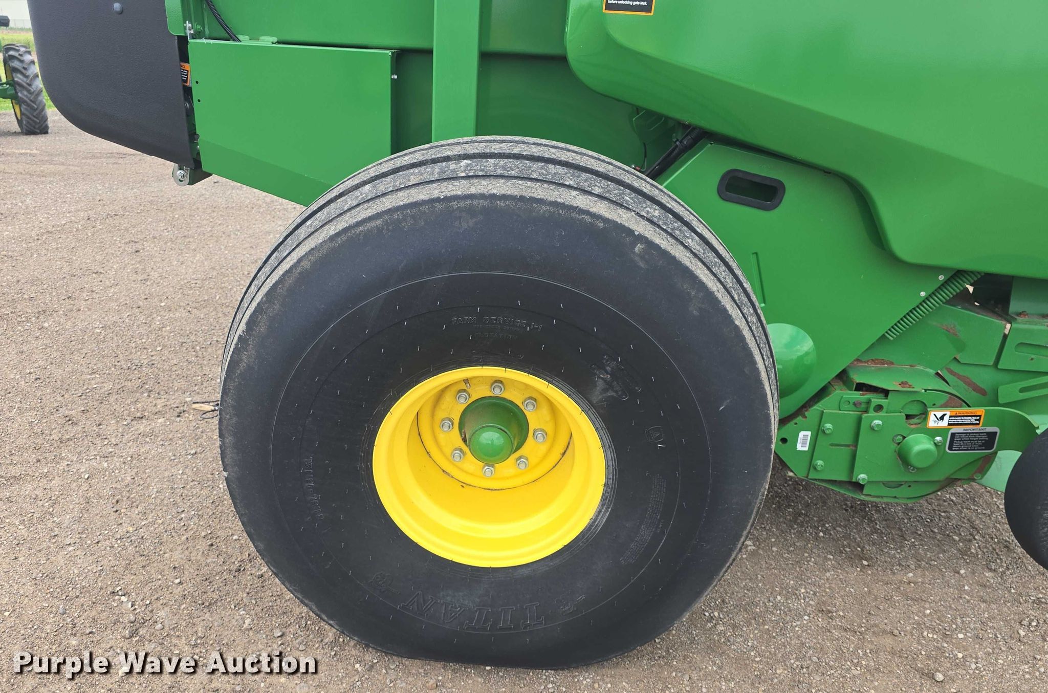 2020 John Deere 560R Premium round baler. Bale count: 9,177, Serial: 1E0560RDJLL468250, Unit #: 481045. Features PTO: 1000, Transport lights, Feed assist roller, Gauge wheels Size: 4.80-8/3.75, Pickup width: 6', Bale size: 5' x 6', Twin twine tie, Net-wrap. Tires Size: 21.5-15.1, Brand: Titan. PrairieLand Partners. Wamego, KS 66547