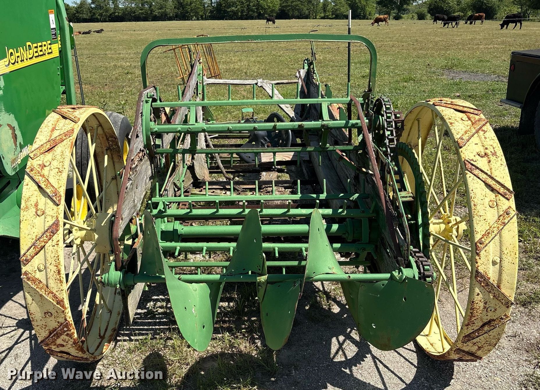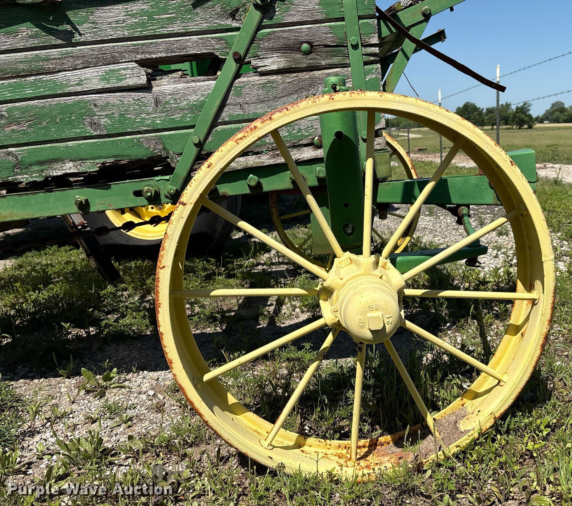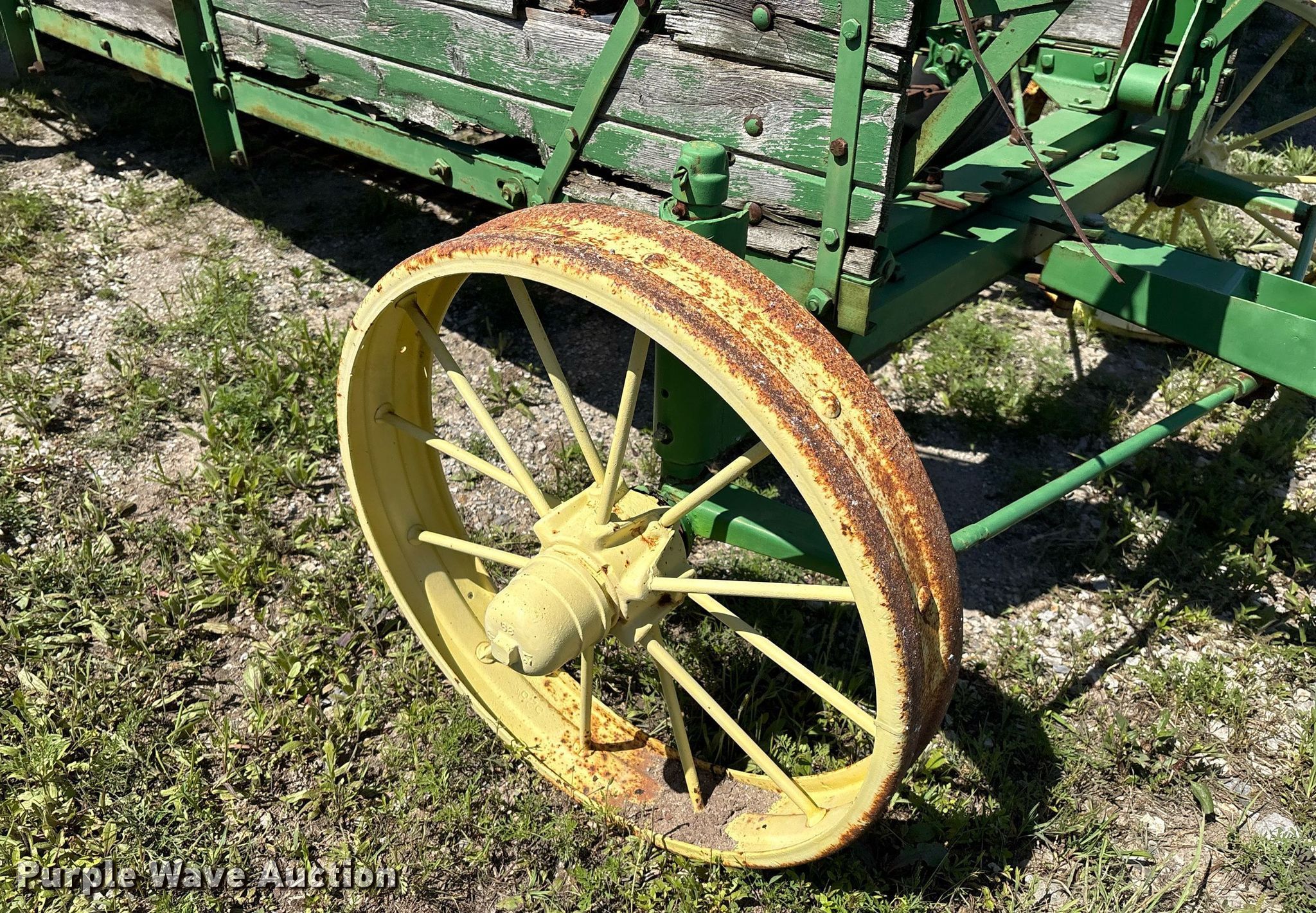 Purple Wave is selling a used Manure Spreader in Oklahoma. This item is a John Deere horse drawn manure spreader with the following: 13' L x 68" W, Side height: 20"
