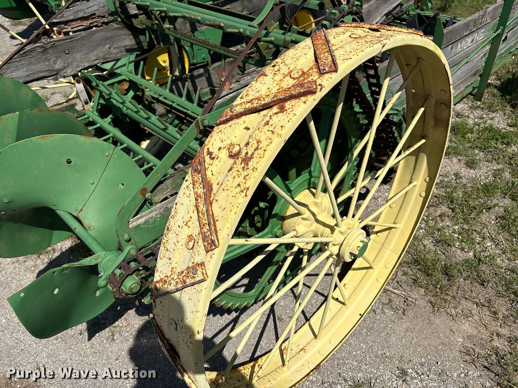 John Deere horse drawn manure spreader. Features. 13' L x 68" W, Side height: 20". Wheels Front: 25", Rear: 44". Kiefer, OK 74041
