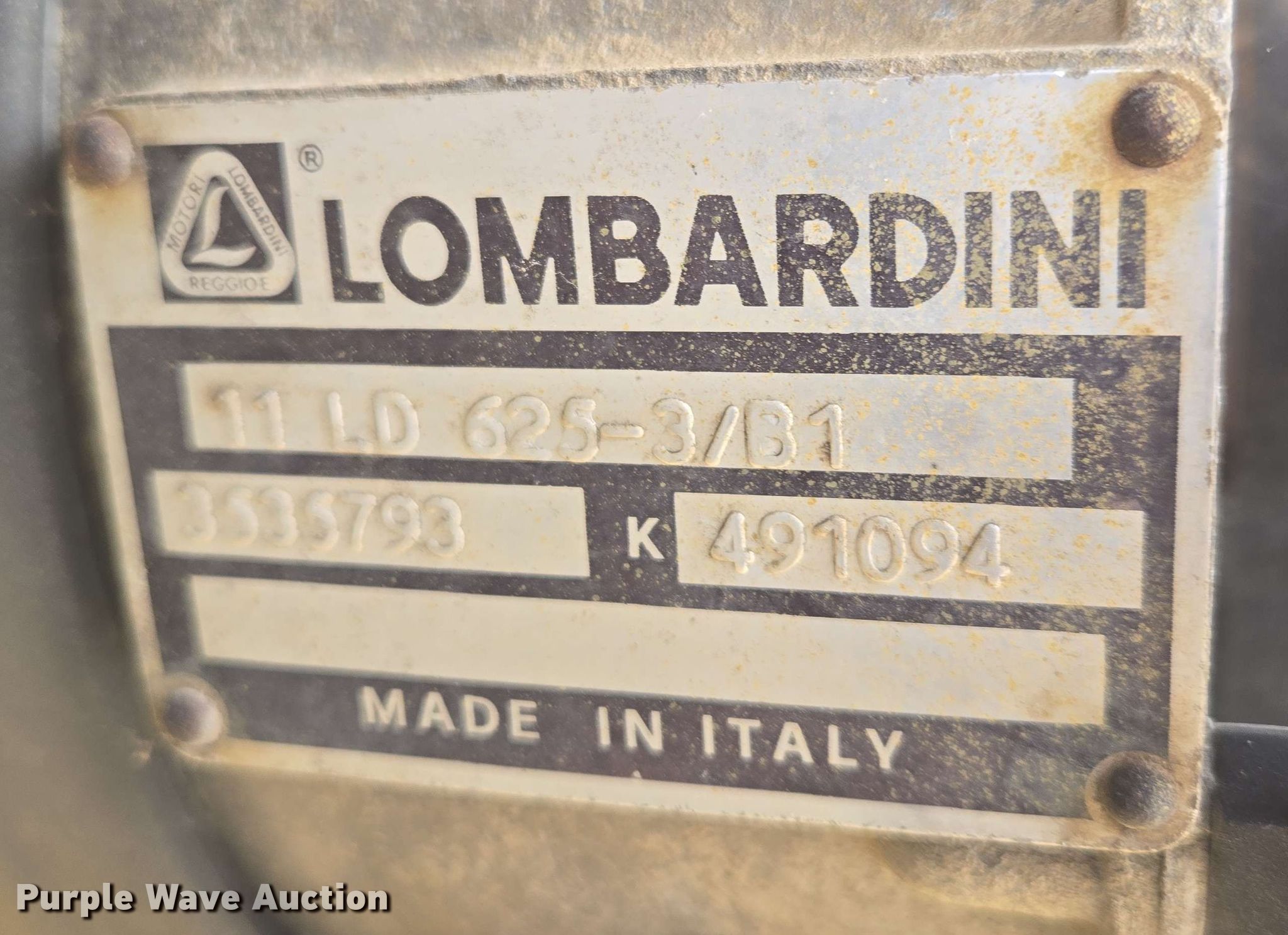 Wacker PT6LT irrigation pump. Hours: 1,018 on meter, Serial: 675801297, Unit #: 5219209. Engine Lombardini 11 LD 625-3/B1, Serial: 3535793, Cylinders: 3, Fuel type: Diesel. Trailer 9' L x 63" W, Hitch: Pintle, Landing gear: Single, Tire size: F78-14ST. Notes Left landing gear missing, Hood damage, Tire damage, dry rot, Unknown operating condition. This is worksite support equipment and will not come with a title. Transfer of ownership documentation will be a bill of sale. Sprouls Construction Inc... Lamar, MO 64759