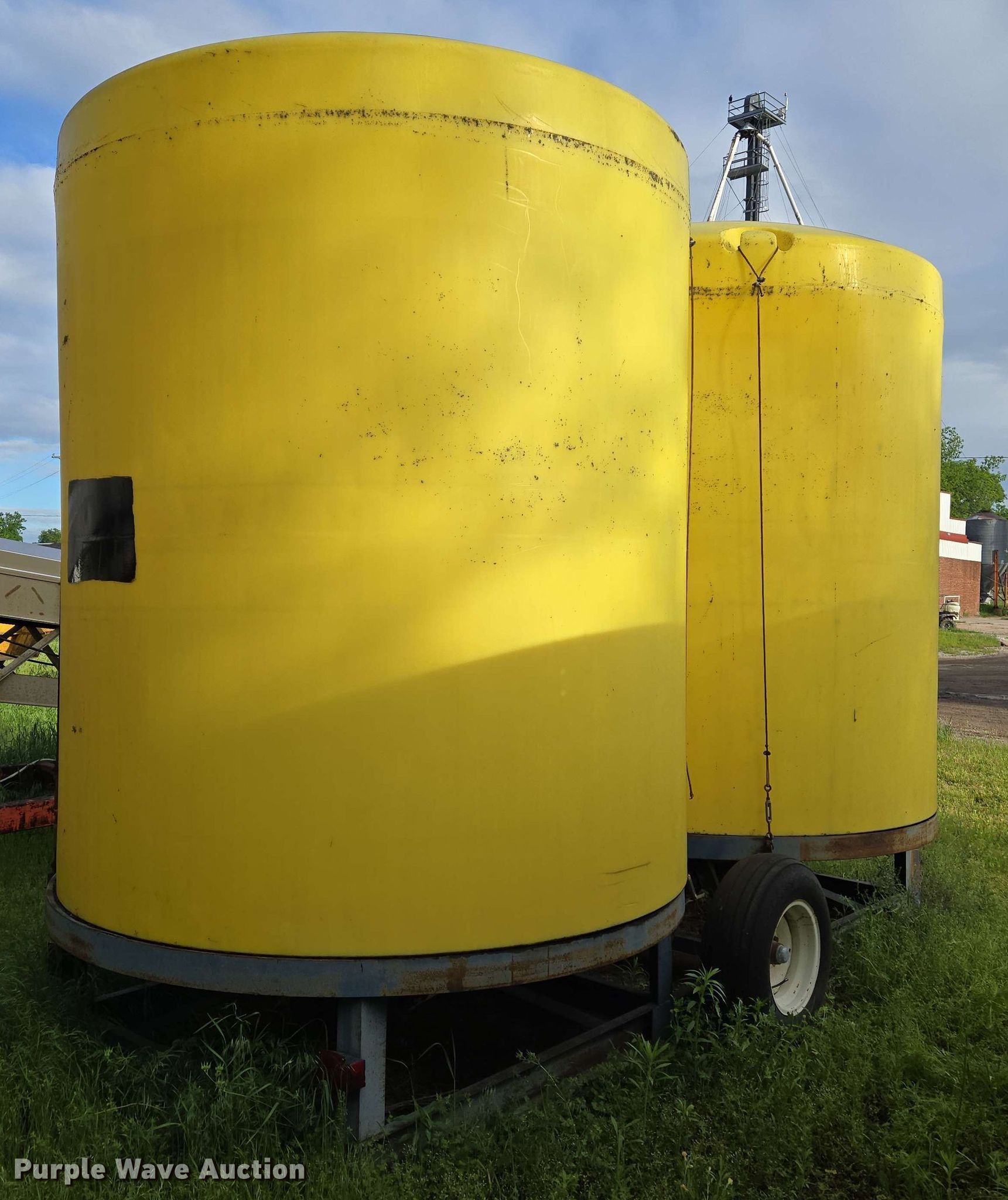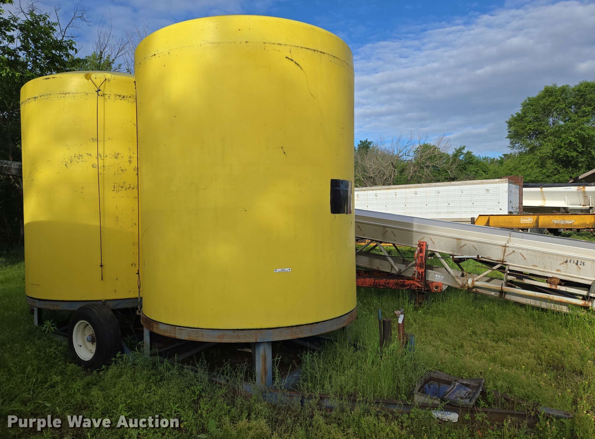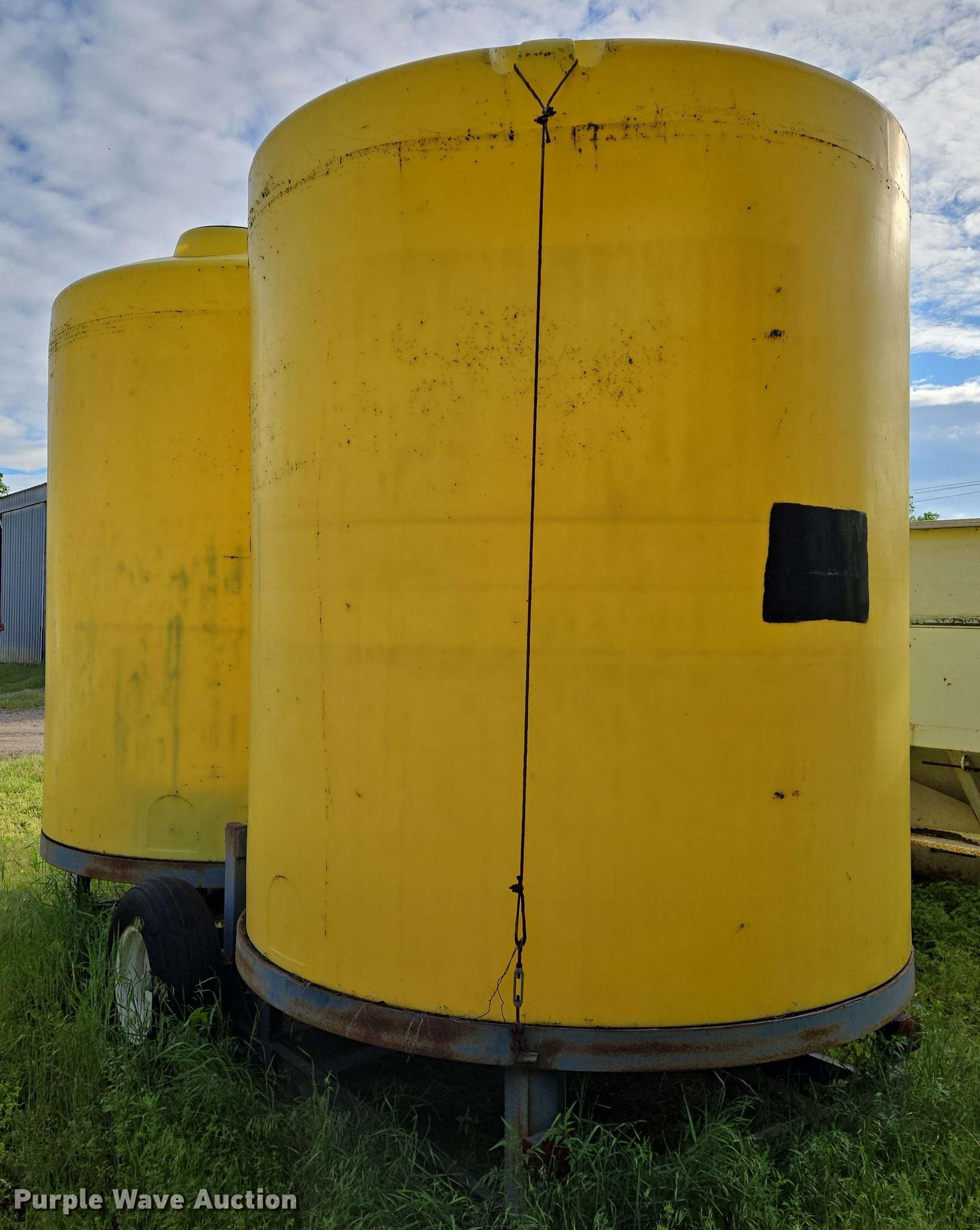 Nurse tank trailer. Dimensions. Overall: 20' L x 94" W. Features (2) poly tanks Capacity: 3,000 gallons, Outlet valves: 1 Size: 4". Chassis Hitch: Pin, Suspension: Torsion. Tires Steel wheels, Size: 9.5L-15SL. Notes Tire damage. Sedan, KS 67361