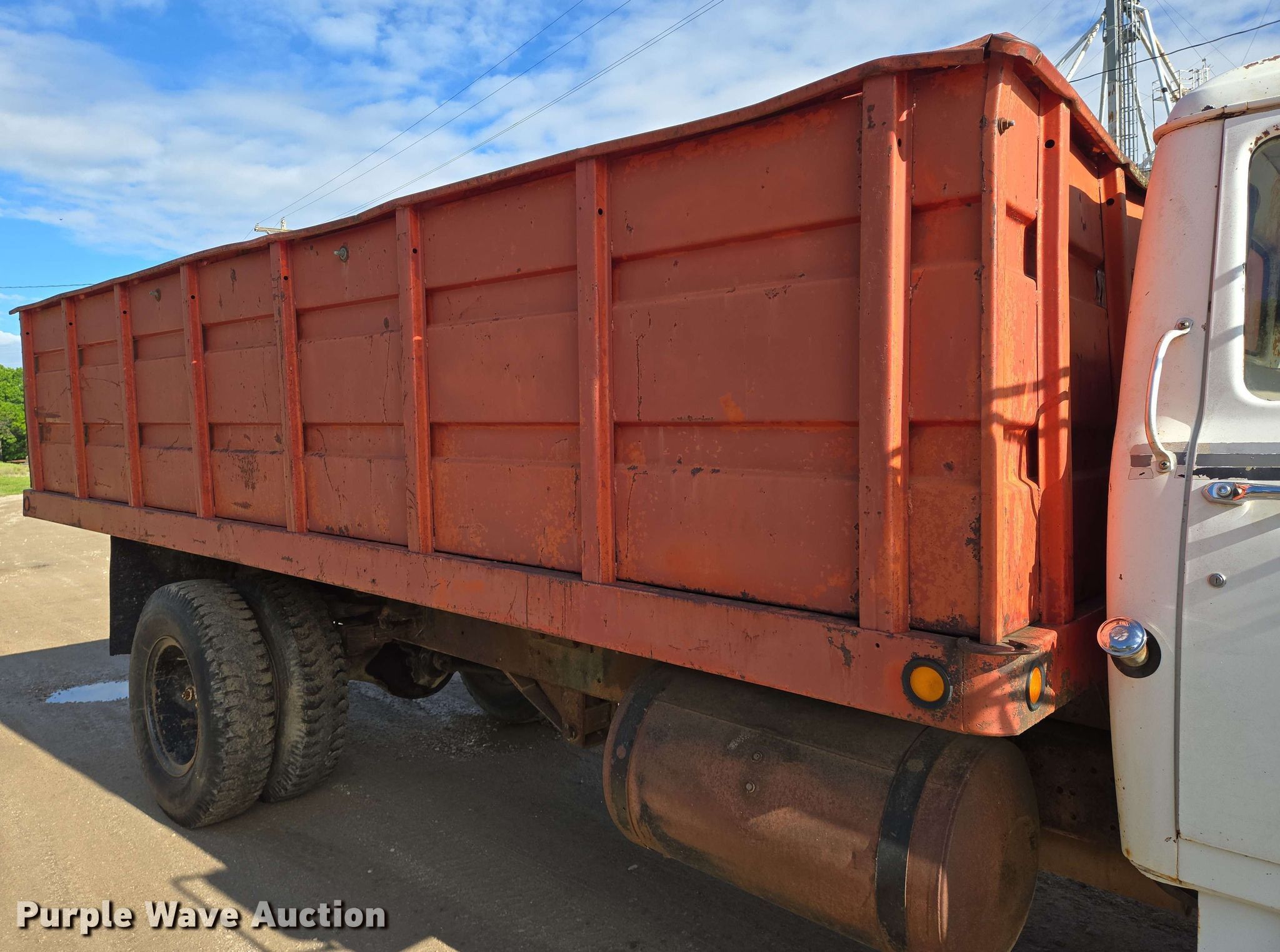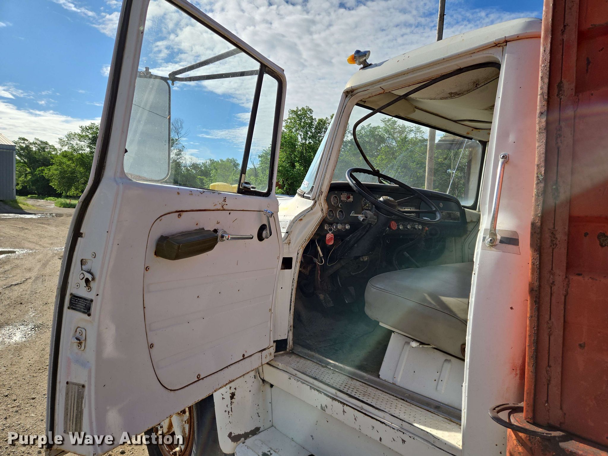 1976 International Loadstar 1700 grain truck. Miles: 95,278 on odometer, VIN: D0522FHA16320. Engine Cylinders: 8, Fuel type: Gas. Transmission Manual, Speed: 5, plus 2. Chassis Axles: Single, Suspension: Spring, Brakes: Hydraulic, PTO. Interior Heat. Features Dump bed 18' L x 93" W, Side height: 40", Bed type: Steel, Ram: Dual. Tires Size: 10.00-20. Kansas title. Rocker Bell Farms. Moline, KS 67353