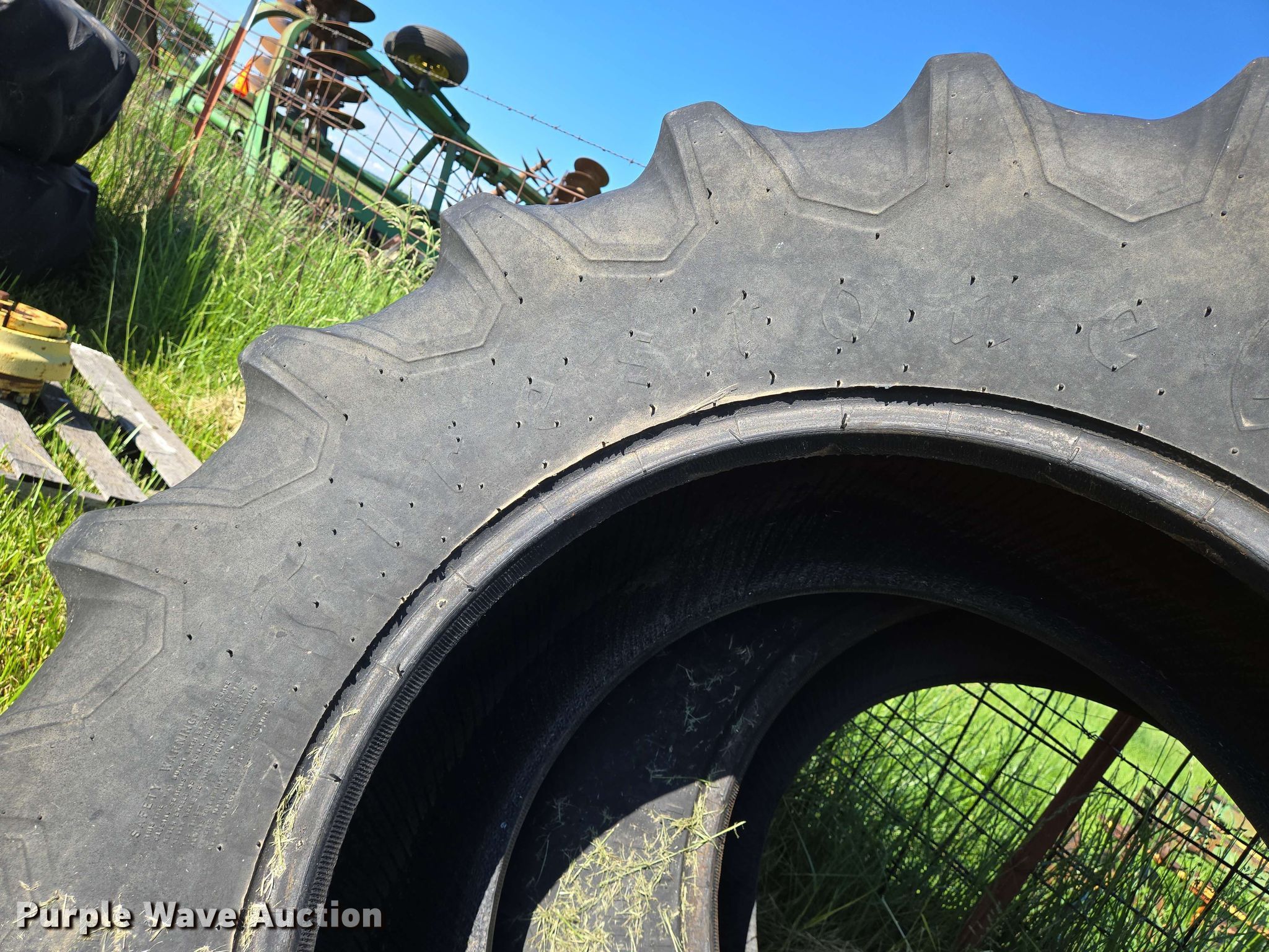 Purple Wave is selling a used Industrial Tires or Tracks in Kansas. This item is a (2) Firestone 18.4-26 tires with the following: (2) Firestone 18.4-26 tires. Rocker Bell Farms. Moline, KS 67353