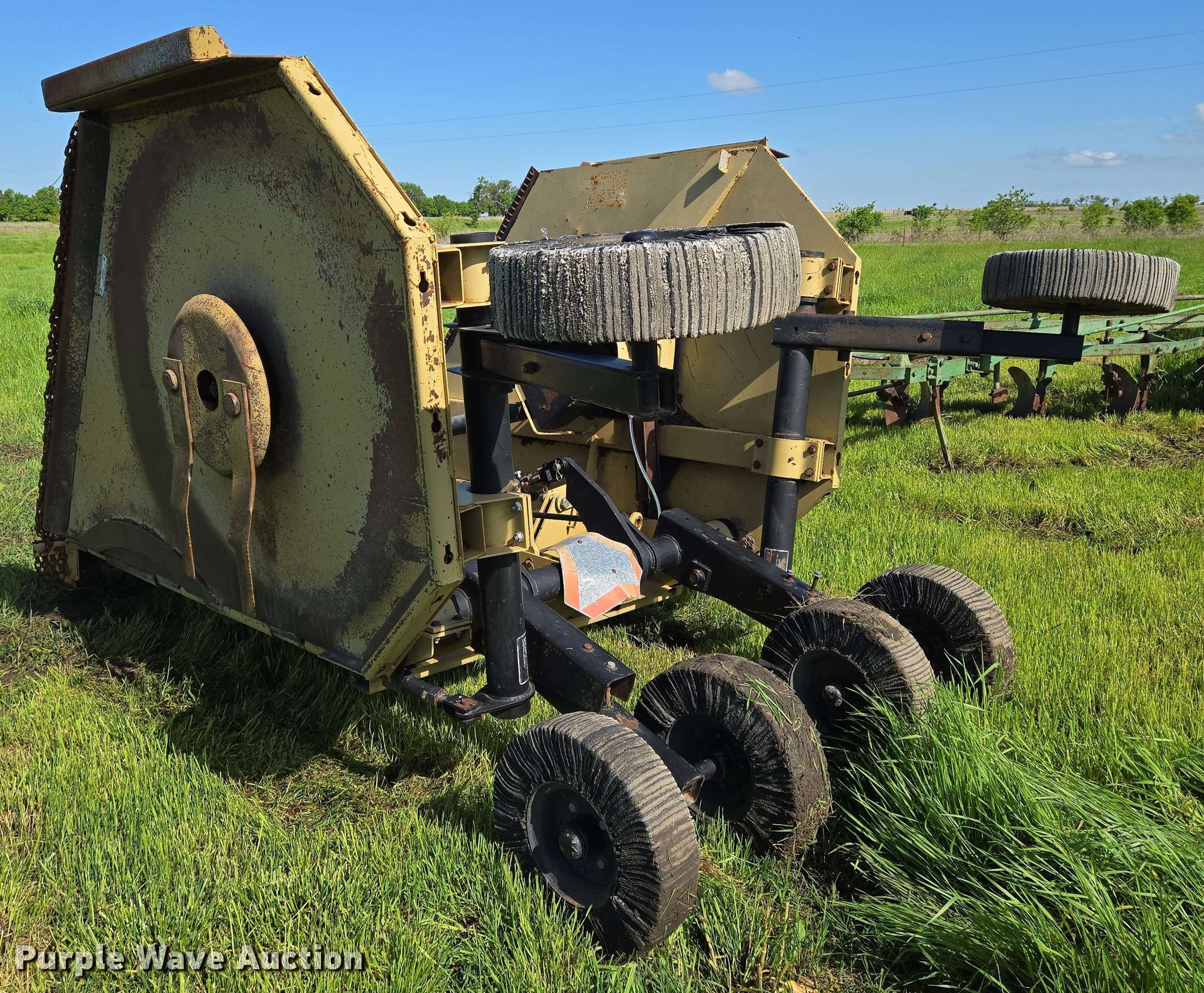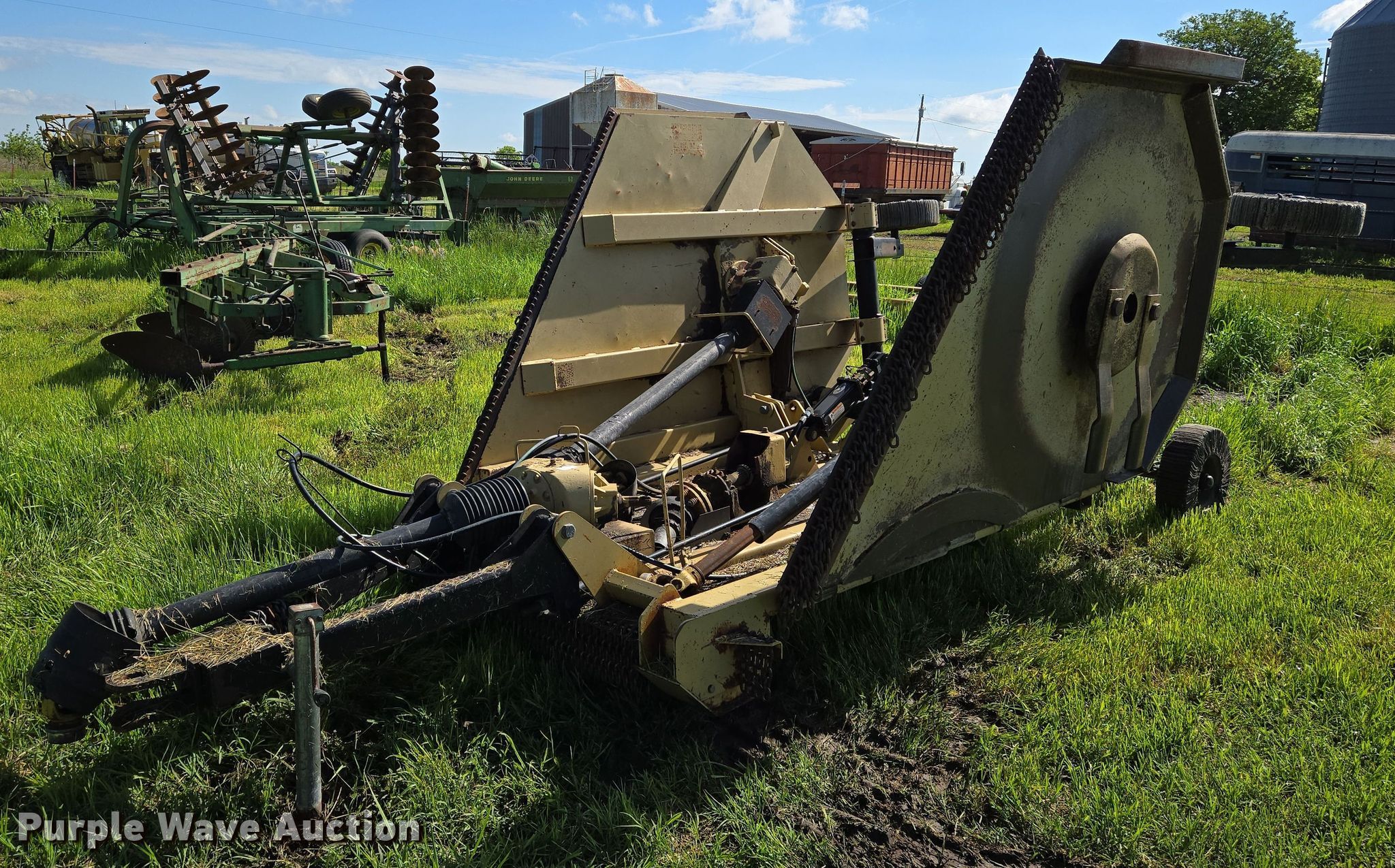 Purple Wave is selling a used Mower, Cutter, Shredder in Kansas. This item is a 15' W batwing rotary mower with the following: Hydraulic lift, Hydraulic fold, PTO: 540