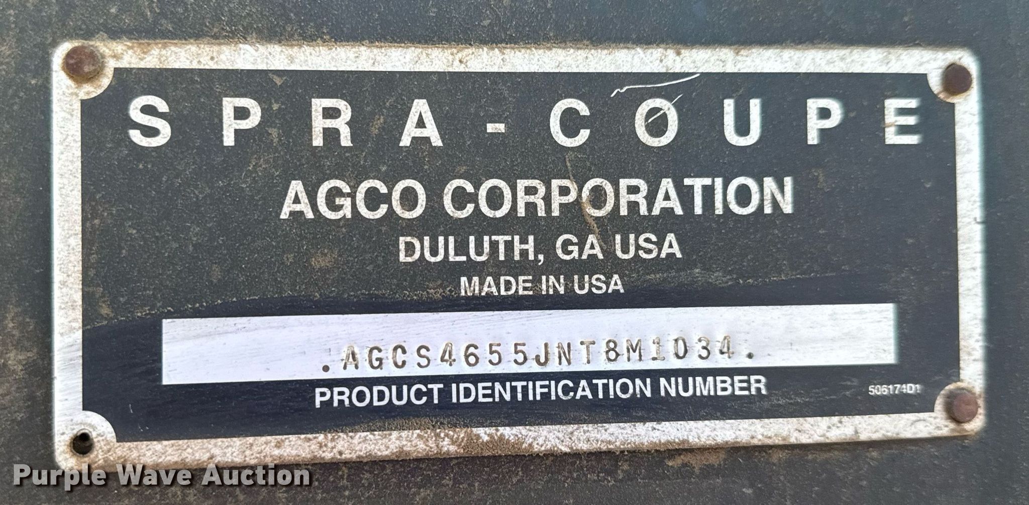 Purple Wave is selling a used Applicator Self Propelled in Kansas. This item is a 2010 Spra-Coupe 4655 sprayer with the following: Engine hours: 2,702 on meter, Miles or hours may vary, unit still in use, Serial: AGCS4655JNT8M1034
