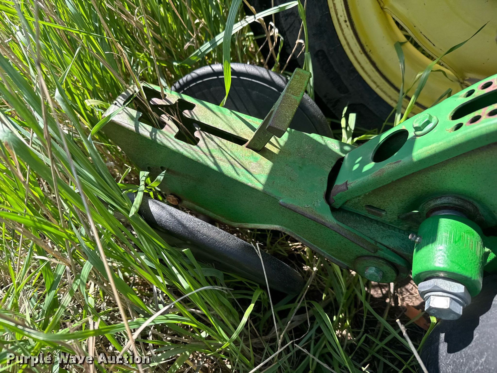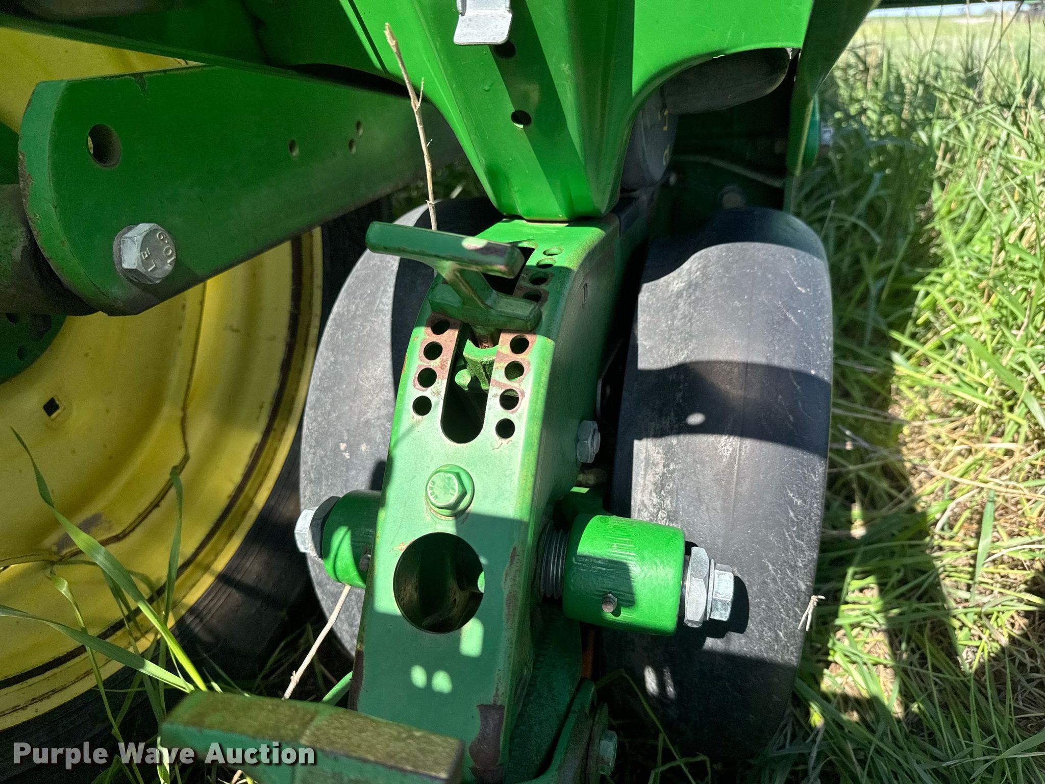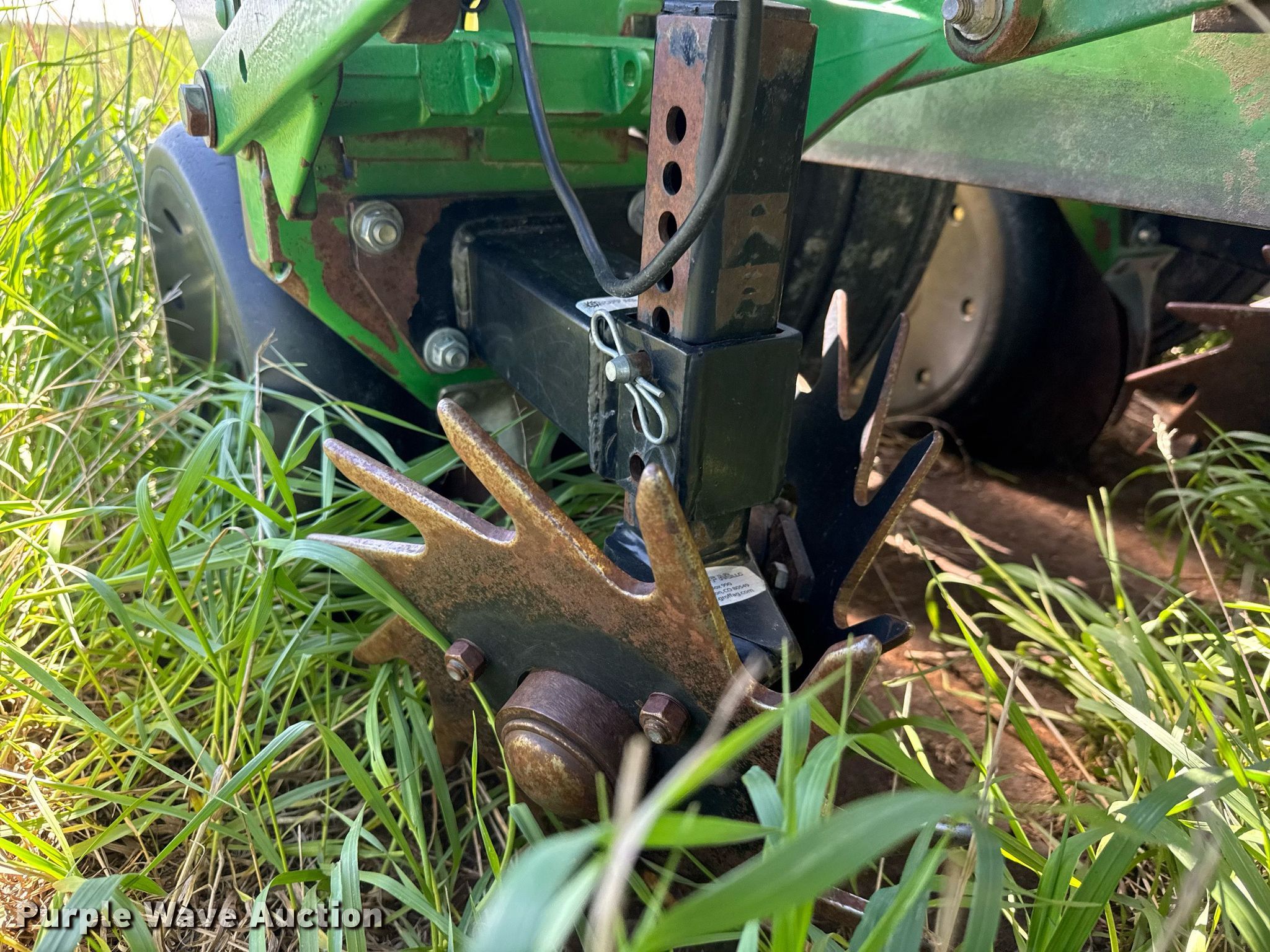 2002 John Deere 1770 Conservation planter. Serial: A01770B695151. Features Frame Hitch: Two point, Split row units: 24, Split row spacing: 30", Fold type: Front, Seed delivery Individual seed hoppers, Row units Vacuum metering, Meter drive: Hydraulic, Down pressure: Pneumatic, Row cleaners, Disk openers: Double, Gauge wheels: Double, Closing system: Double Type: Rubber, (2) poly tanks Capacity: 100 gallons. Tires Transport tire size: 9.00-16 Quantity: 4, Drive/ outside tire size: 7.50-20 Quantity: 6. Plainville, KS 67663