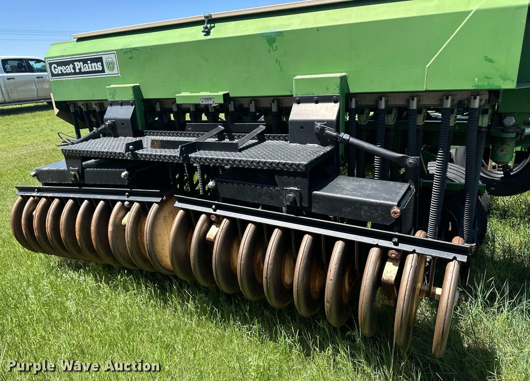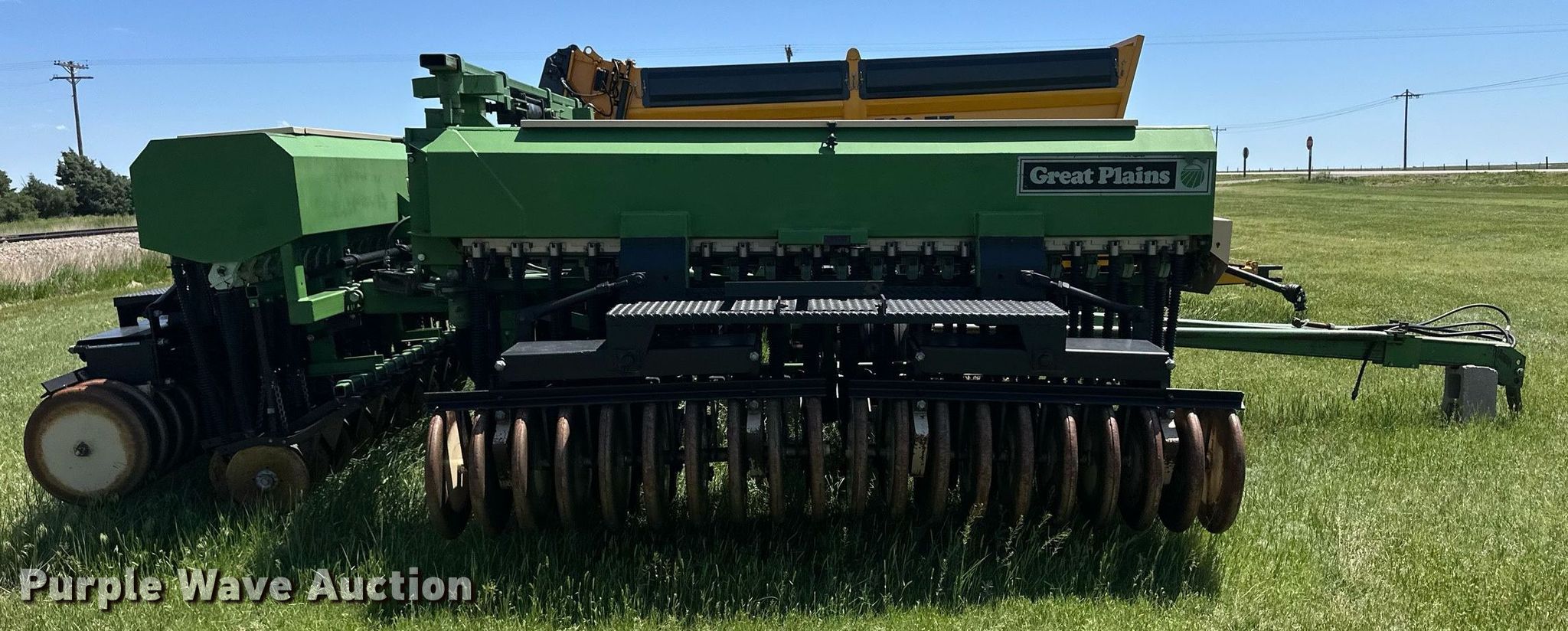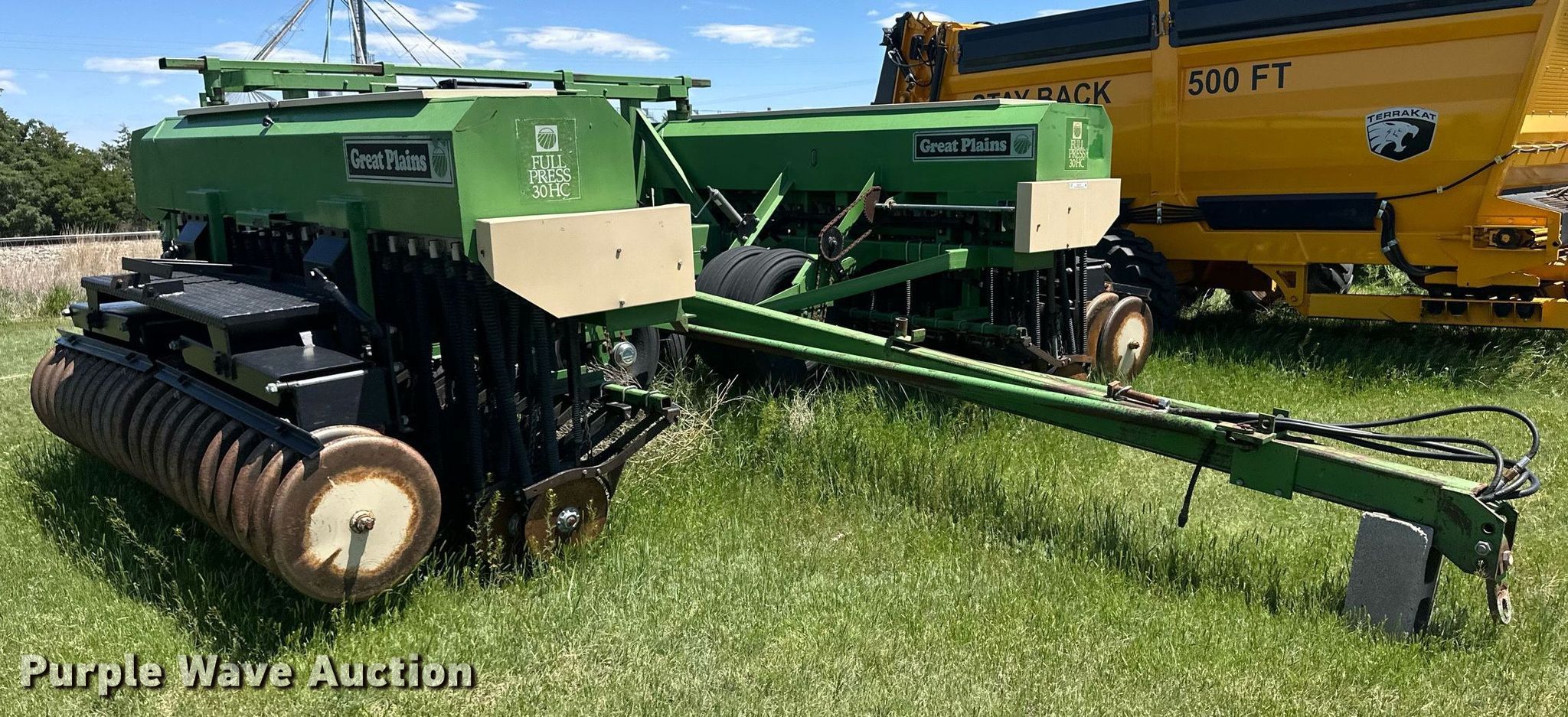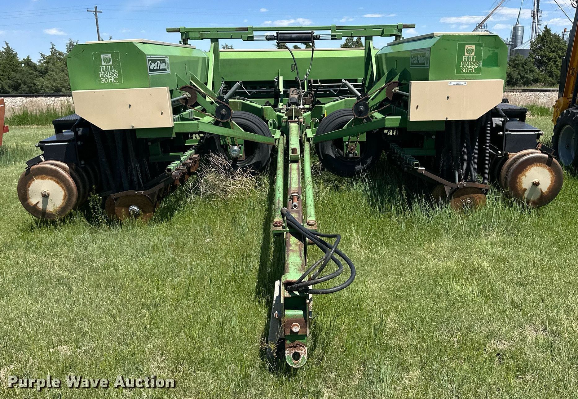 Purple Wave is selling a used Grain Drill or Seeder in Kansas. This item is a Great Plains Full Press 30 HC grain drill with the following: Width: 30', Row units: 60, Row spacing: 6"