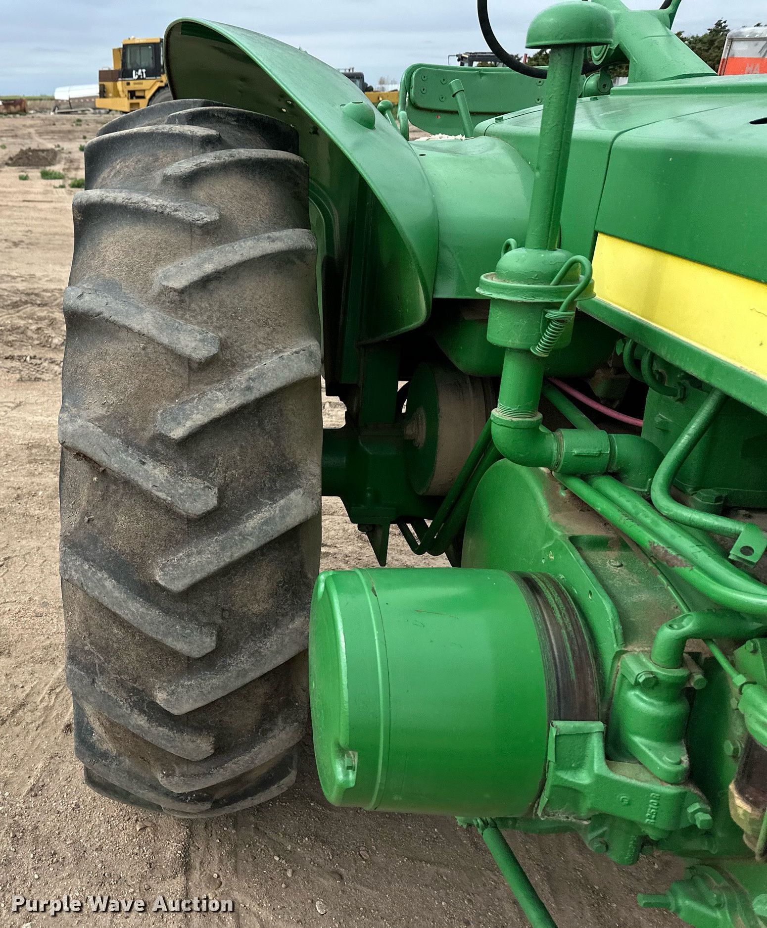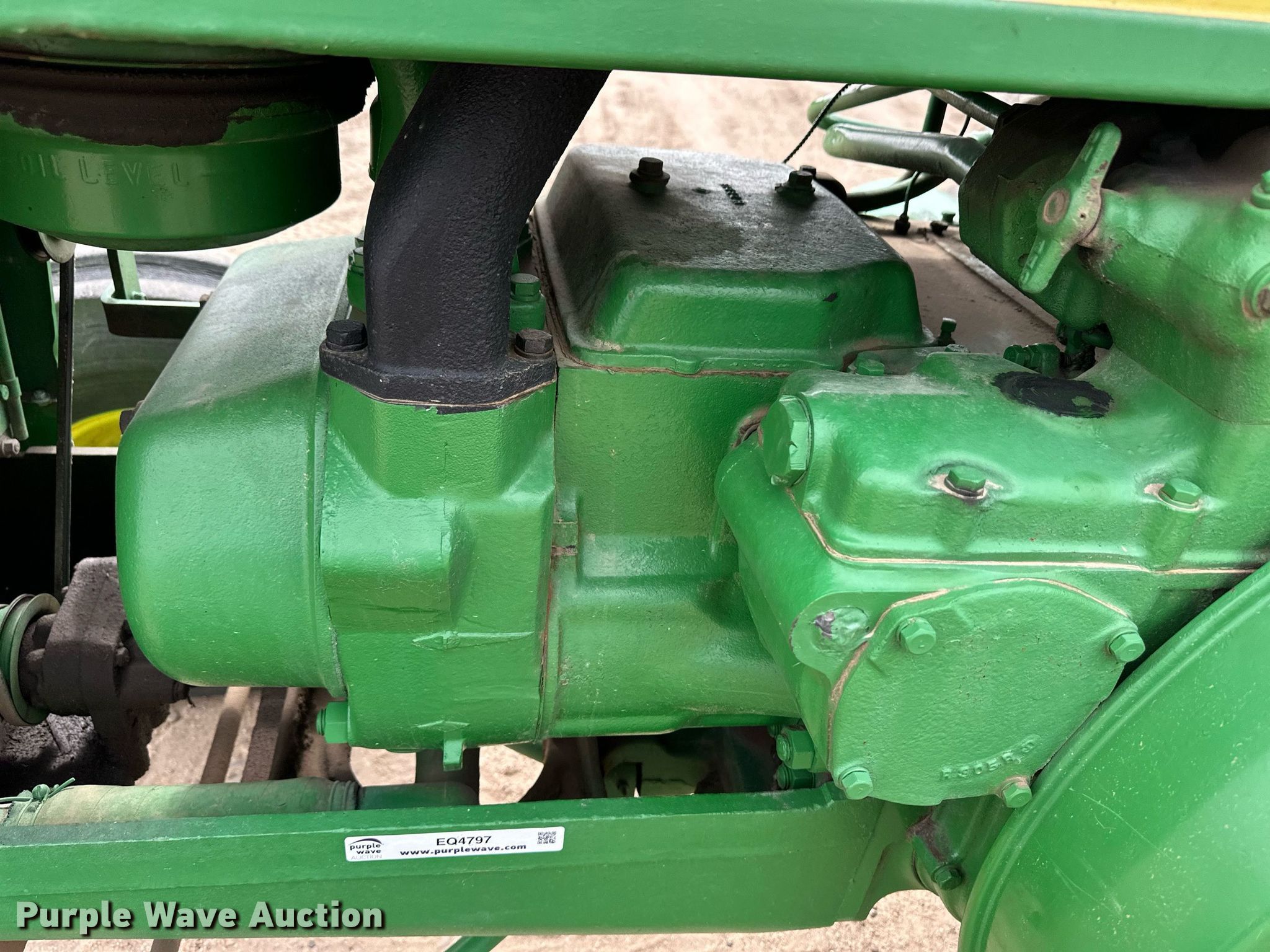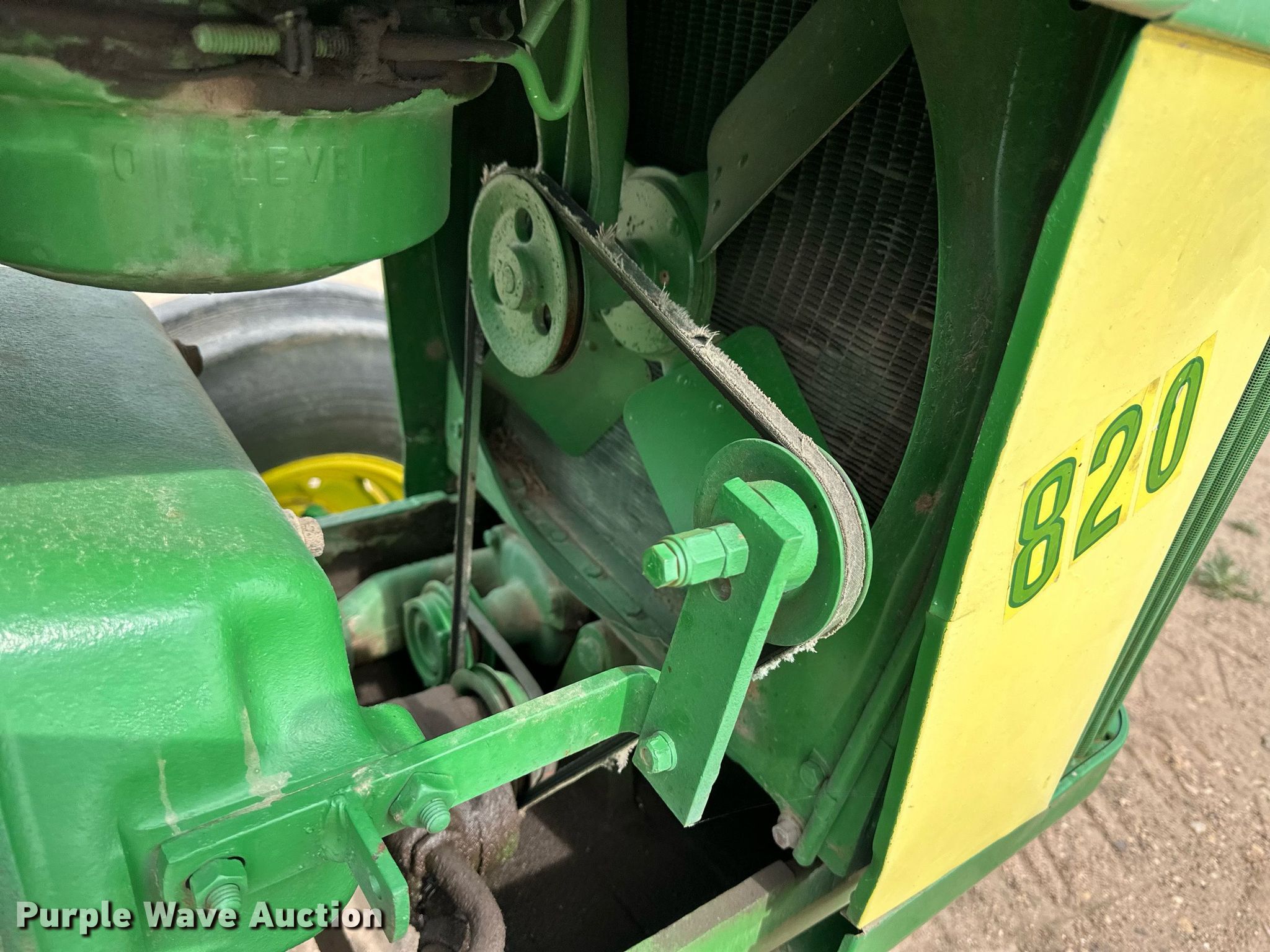 1957 John Deere 820 tractor. Serial: 8202536. Engine Cylinders: 2, Fuel type: Diesel. Transmission Manual, 6F - 1R. Features PTO: 540, Hydraulic remote sets Rear: 1. Tires Front: 10.00-16, Rear: 18.4-34. Sublette, KS 67877
