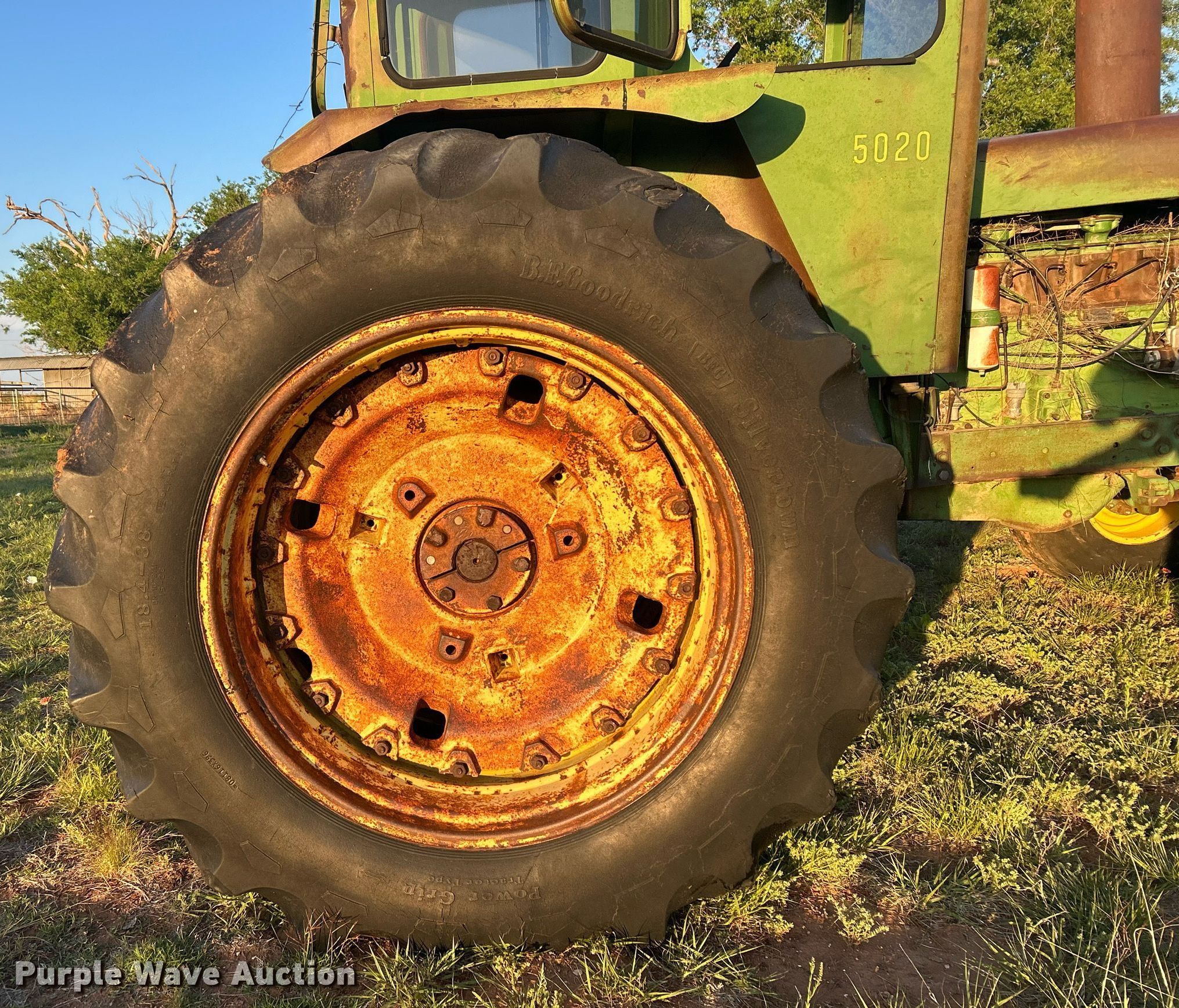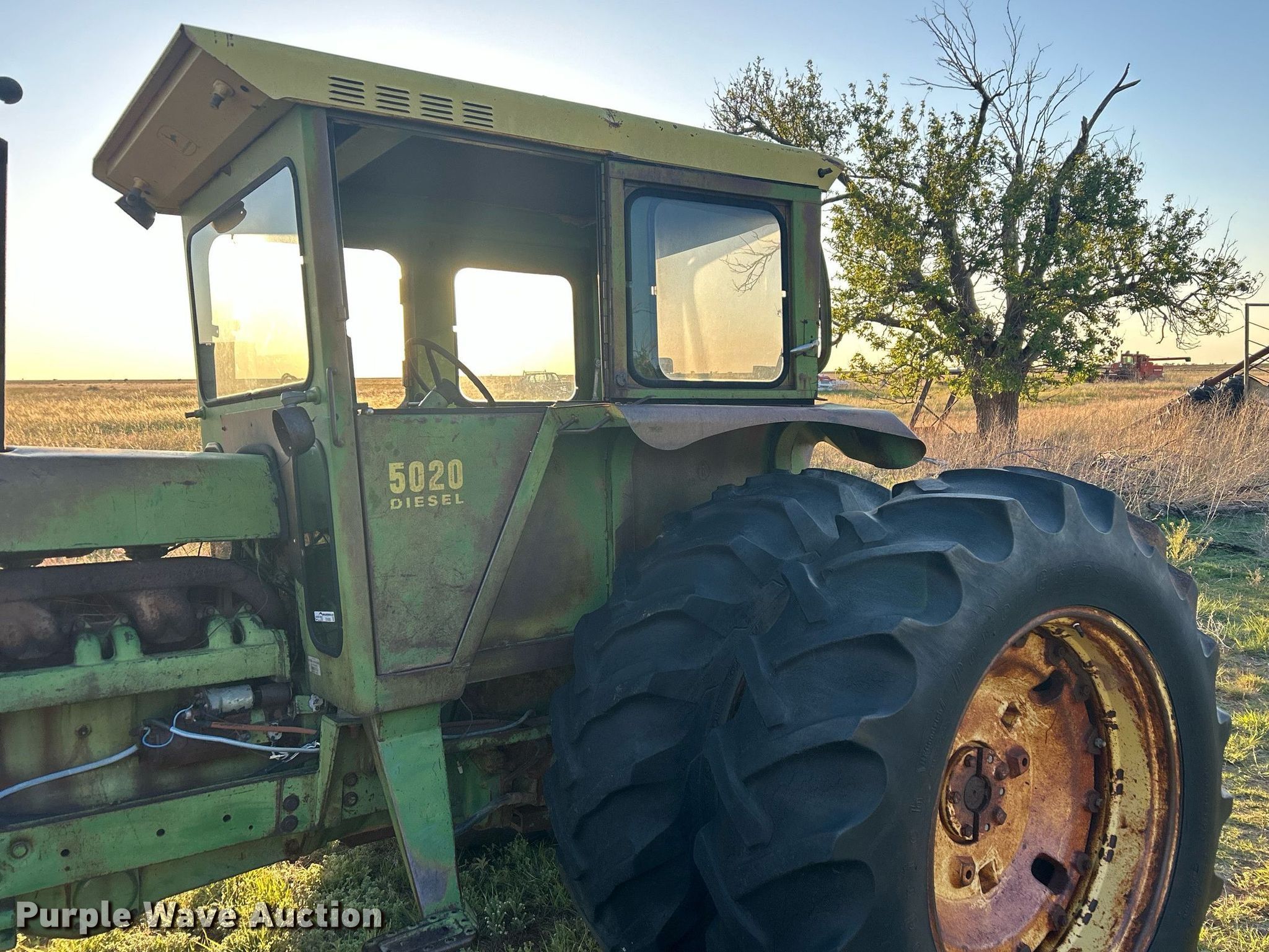 1968 John Deere 5020 tractor. Hours: 6,454 on meter Actual hours unknown, Serial: 022301R. Engine John Deere M33R0, Serial: 022544R, Cylinders: 6, Fuel type: Diesel. Transmission Synchro, 8F - 2R. Features PTO: 1 3/4" 1000, Three point Top link, Hydraulic remote sets Rear: 2, Suitcase weights: 5. Tires Front: 14L-16.1, Rear: 18.4-38, Duals. Notes Glass missing, Possible tire damage, dry rot, Non-operational unit. Floyd, NM 88118