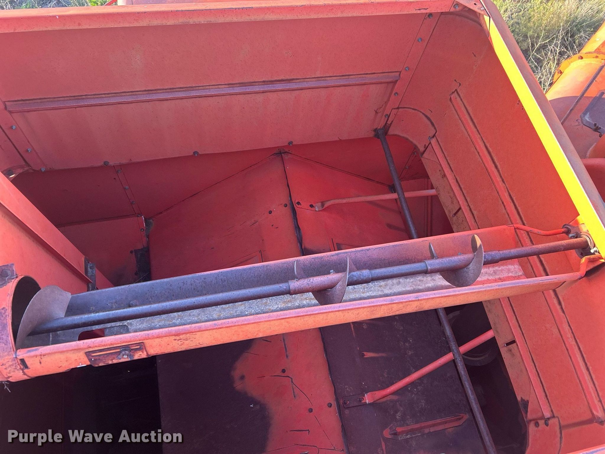 Massey Ferguson 510 combine. Serial: 9347. Engine Perkins, Displacement: 5.8L, Cylinders: 6, Fuel type: Diesel. Transmission Manual, 3F - 1R. Features Concaves: Round, Unloading auger length: 12', Header Massey Ferguson, Platform head Rigid, Width: 20', Reel: Bat, Skid plates: Steel, Drivelines: Single. Notes Possible tire damage, dry rot, Non-operational unit. Floyd, NM 88118