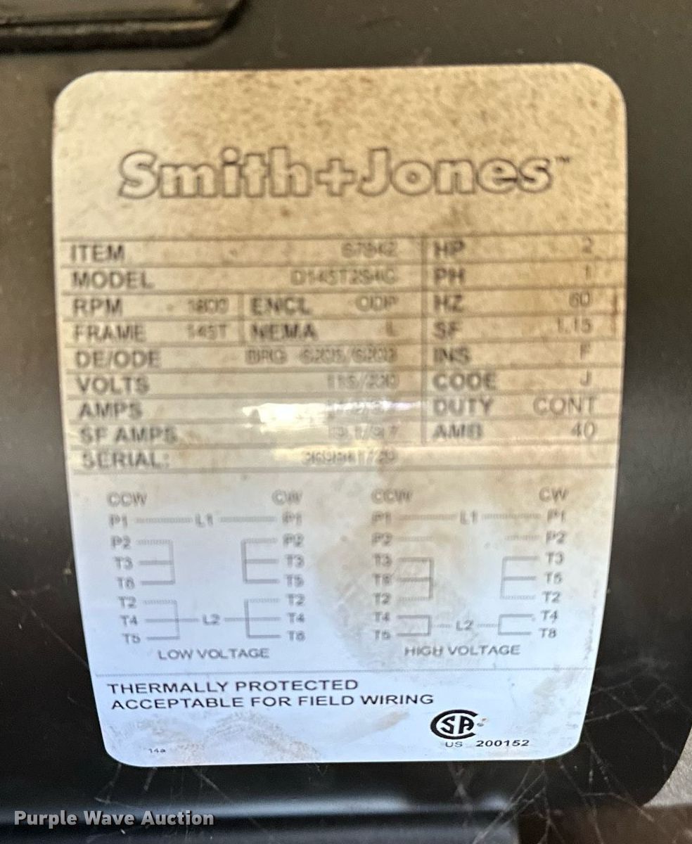 Squeeze chute. Serial: 369841729. Features Overall dimensions: 95� L x 56� W, Hydraulic controls. Electric Motor Smith Jones D145T2S4C HP: 2, RPM: 1800, PH: 1, Volts: 115/230. Elmer Hamann Retirement Auction. Aurora, CO 80011