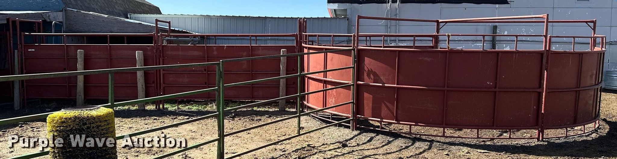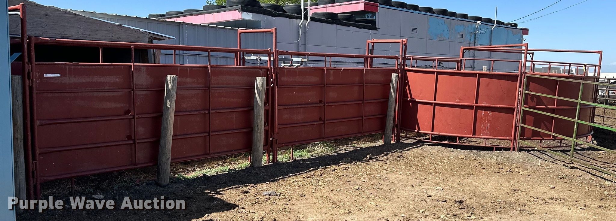 Purple Wave is selling a used Livestock Equip. in Colorado. This item is a Livestock corral with palpation chute with the following: (7) panels, 10� 2� W x 71� H, Half round tub, Sweep gate, (3) sections,, Palpation chute, 35� L x 36� W, (2) gates