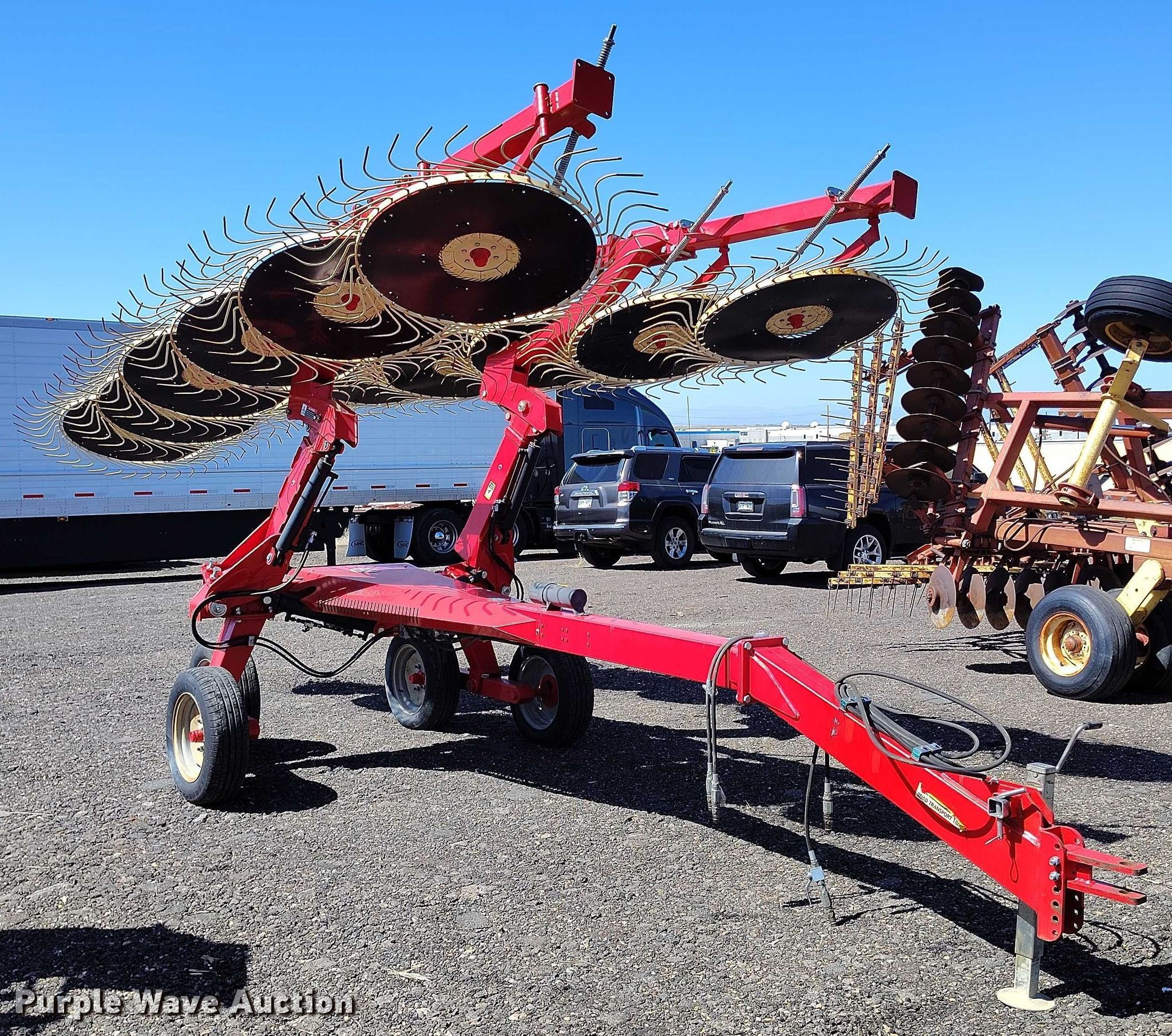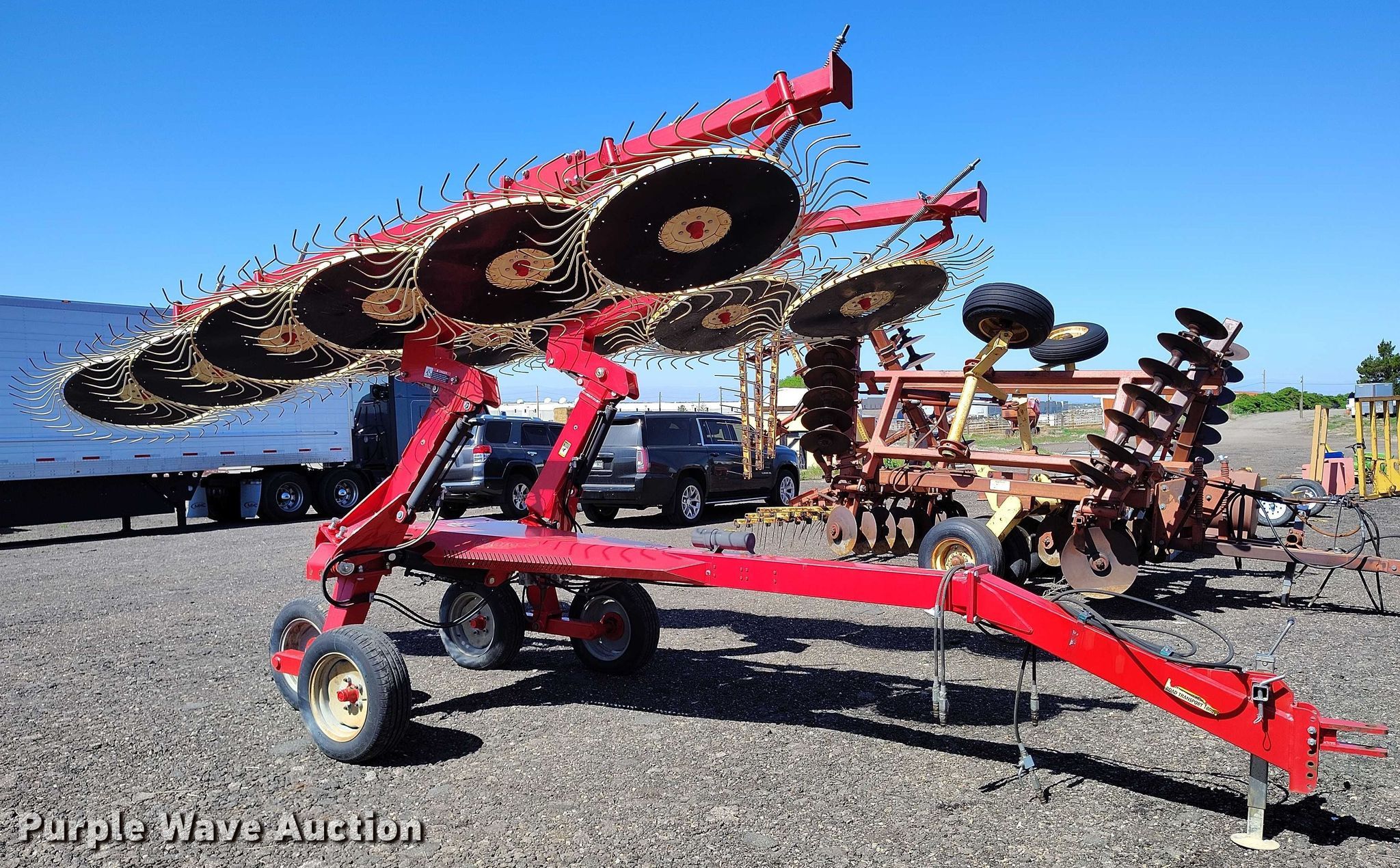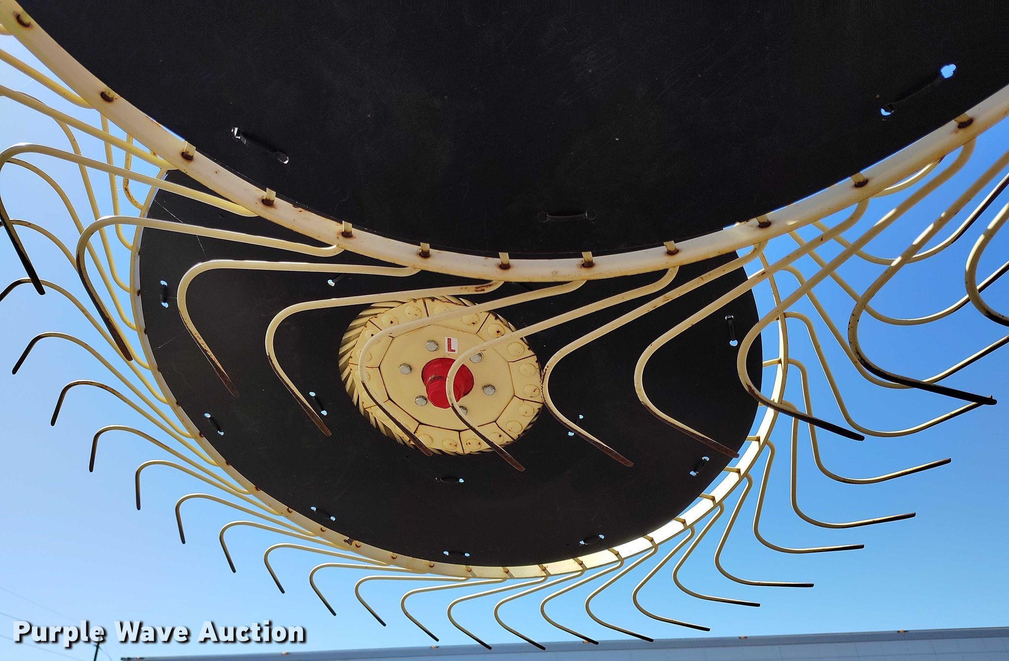 Purple Wave is selling a used Hay Rake in Colorado. This item is a Enorossi hay rake with the following: Width: 30', Wheels: 12, Diameter: 60", Hydraulic lift, Hydraulic fold, Hydraulic driven