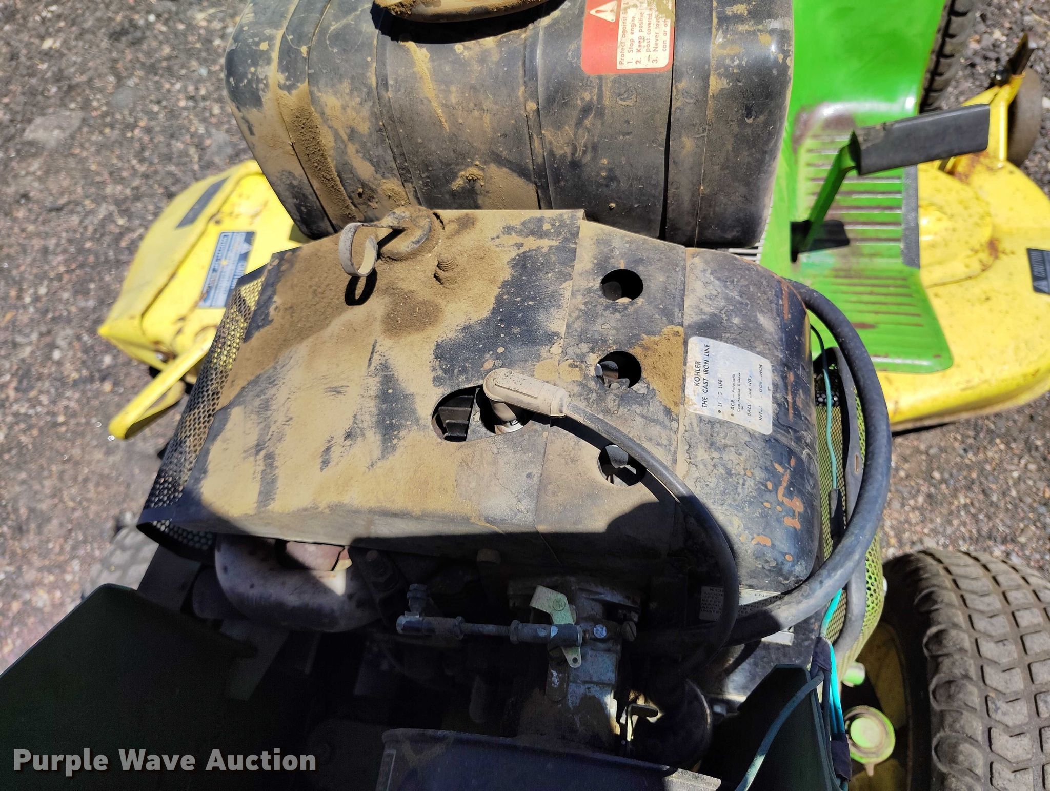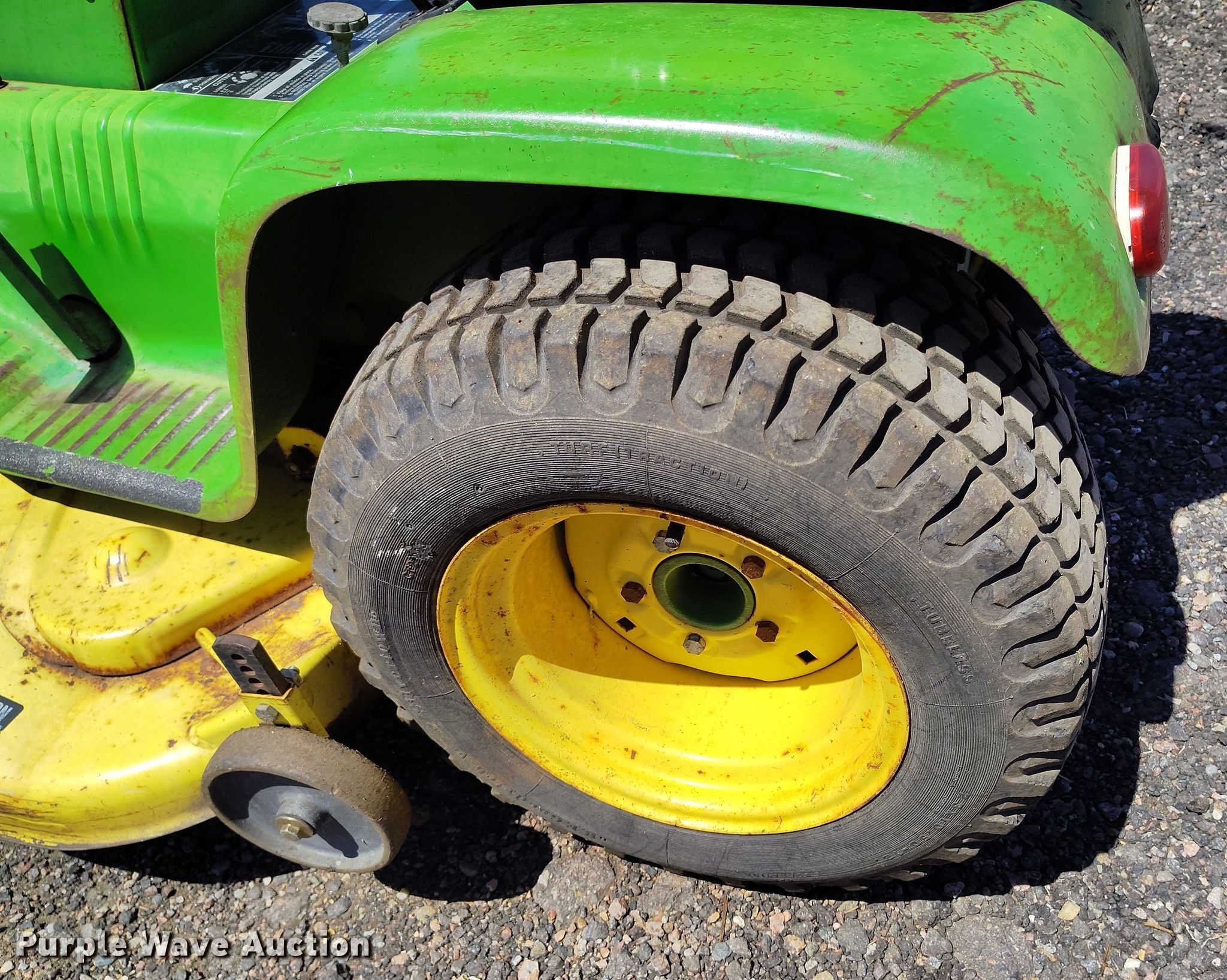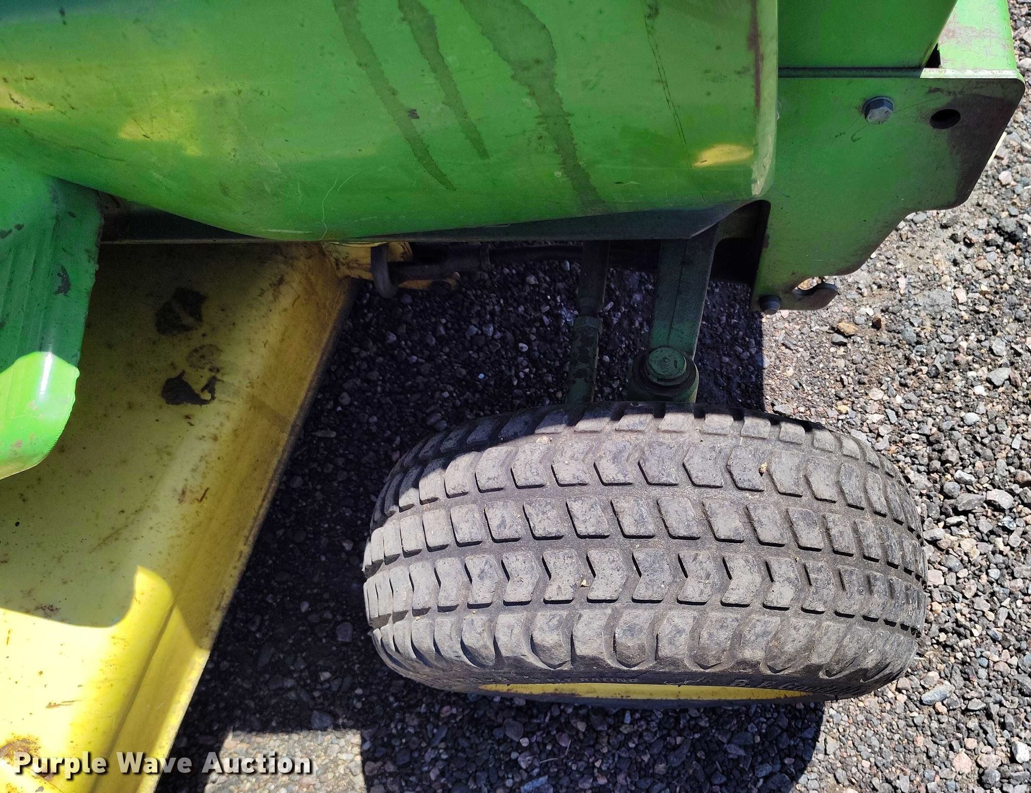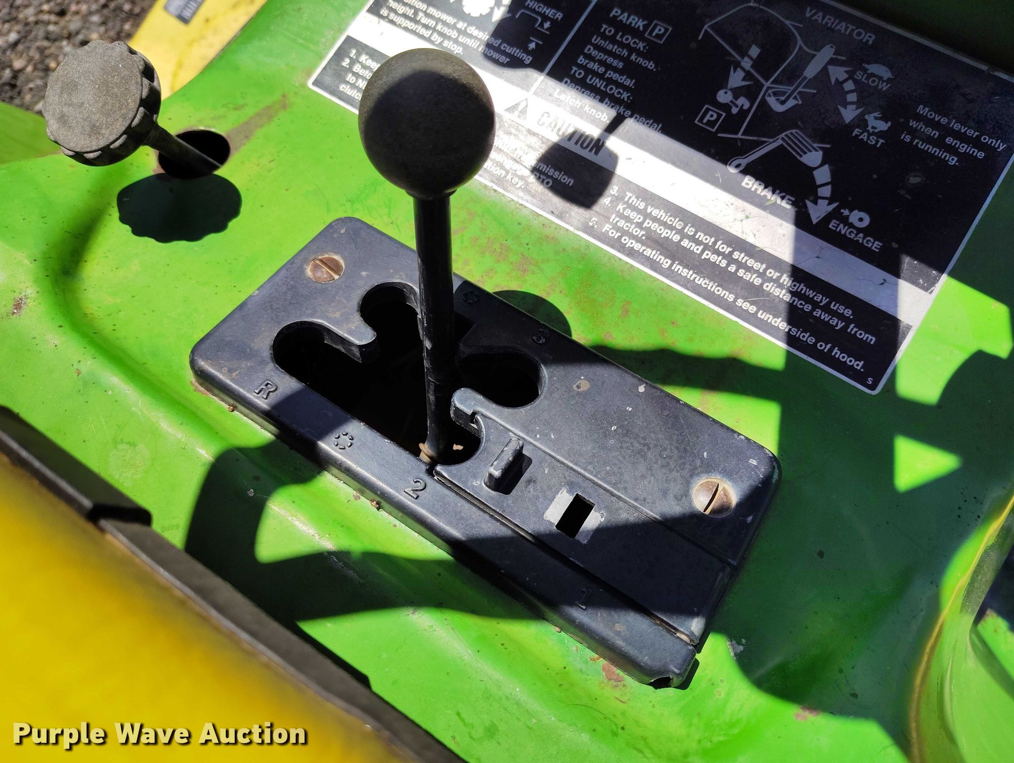Purple Wave is selling a used Lawn Mower in Colorado. This item is a John Deere 110 lawn mower with the following: Cutting width: 48", Serial: 320391M