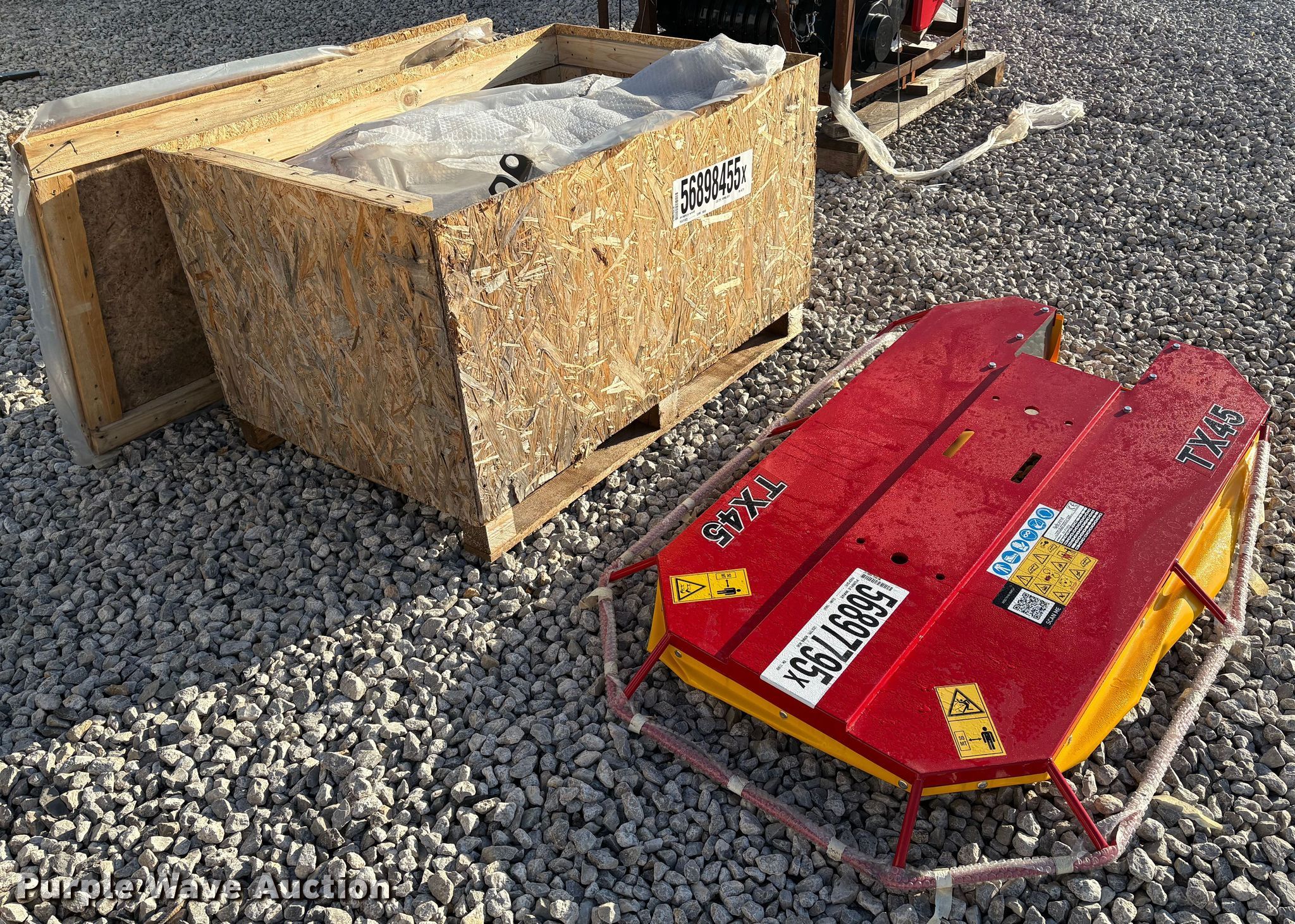 Purple Wave is selling a used Disc or Sickle Mower in Oklahoma. This item is a 2024 IBEX TX45 drum mower with the following: Serial: 24310167718, Unit #: 56898455