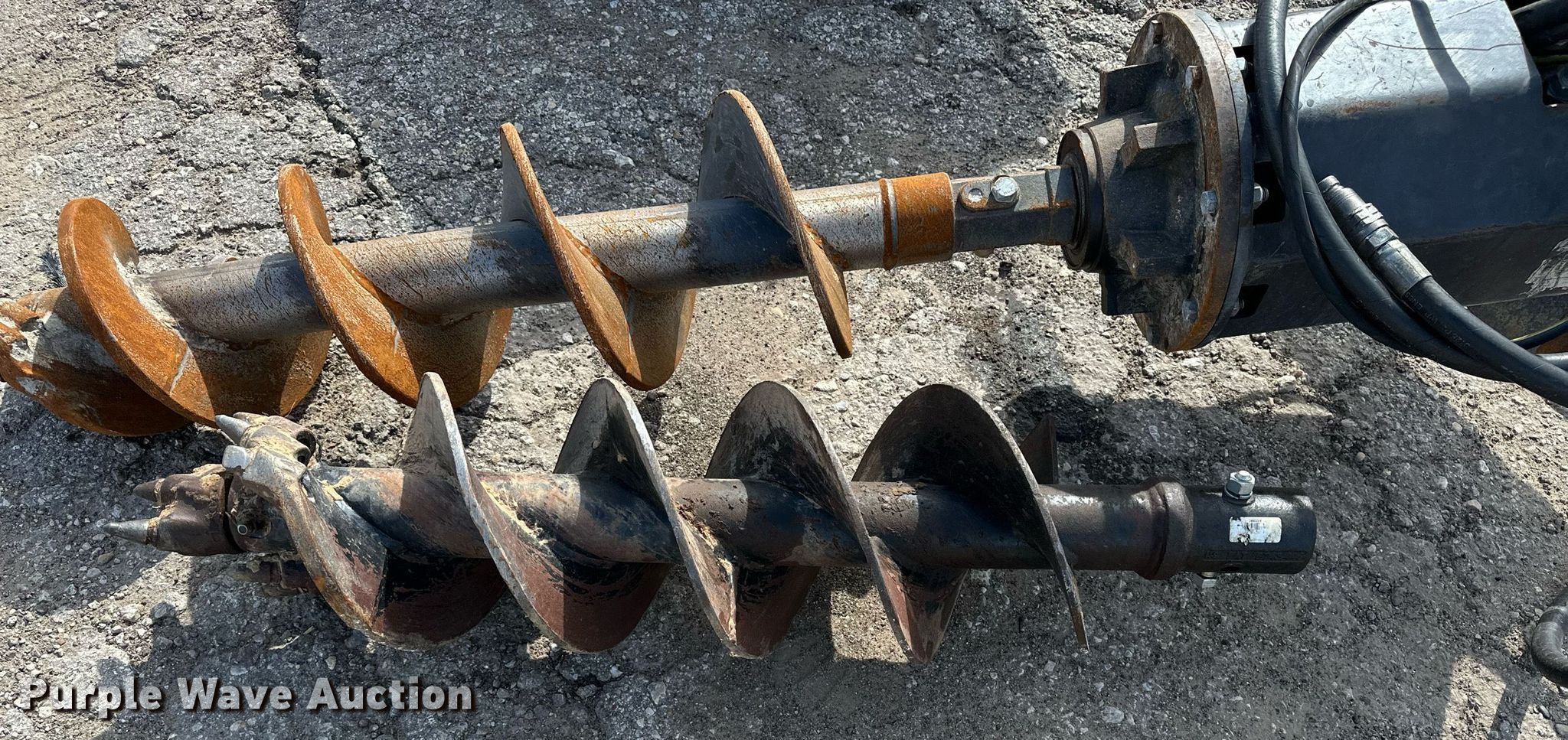 Purple Wave is selling a used Skid Steer Attach. in Texas. This item is a (2) skid steer post hole augers with the following: Length: 36", Diameter: 12"