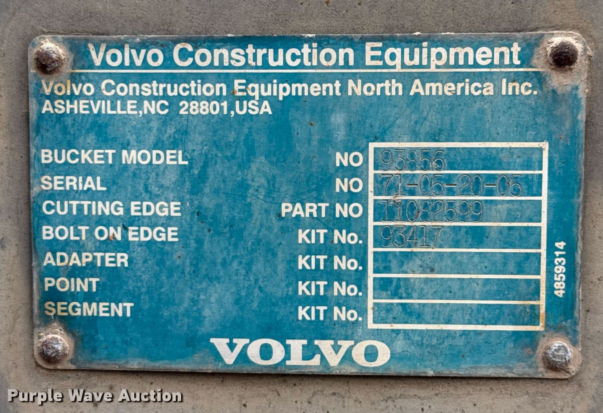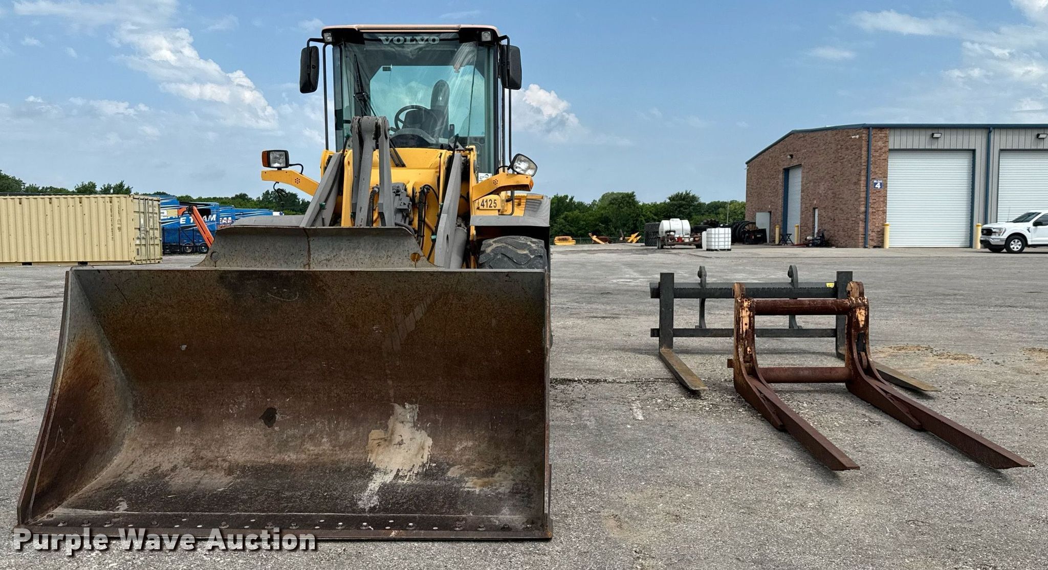 2008 Volvo L90F wheel loader. Hours: 11,708 on meter, Serial: VCE0L90FC00068733, Unit #: 4125. Engine Volvo D6E LAE3, Serial: 10701040, Displacement: 5.7L, Cylinders: 6, Fuel type: Diesel, HP: 160, kW: 119. Transmission Powershift, 4F - 4R. Operators station Enclosed cab, AC, Heat, Bucket controls: Two-lever. Features Auxiliary hydraulics: Front, Quick coupler: Hydraulic, Counter weights, Bucket Volvo 93856, Width: 104", Self- leveling bucket, Cutting edge: Bolt-on, Forks Volvo 83771 Length: 96", Sasforks L90F Length: 108".. Tires Size: 20.5R25. Notes Door damaged, Door glass replaced with plexiglass. Valfair Construction - Open Inspection June 9, 10 and 11. 501 East US Highway 80. Forney, TX 75126