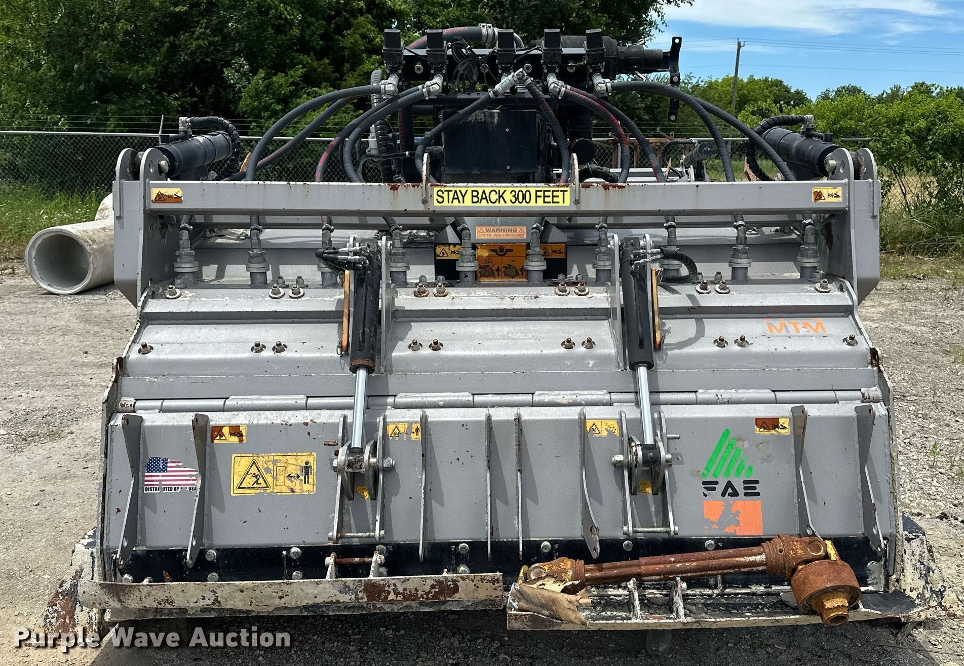 2018 FAE MTM-225 soil stabilizer / recycler. Serial: 18-1455, Unit #: 7761. Features Cutting head Width: 90", Teeth, Carbide, Water/emulsion application system, PTO: 1000, Three point. Valfair Construction - Open Inspection June 9, 10 and 11. 501 East US Highway 80. Forney, TX 75126