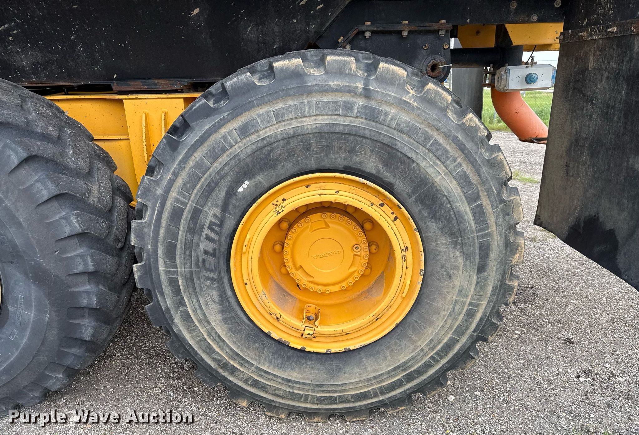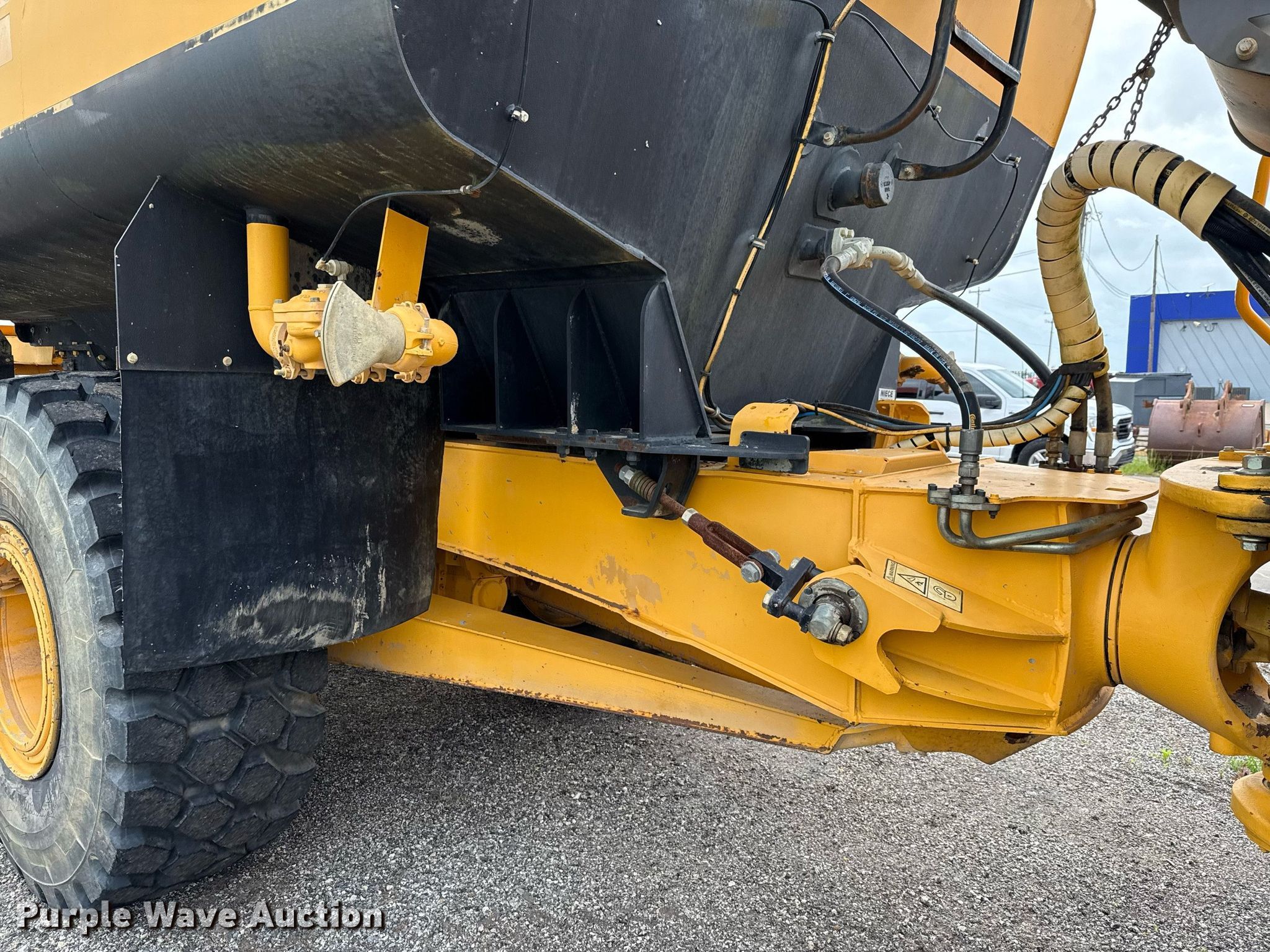 2007 Volvo A25D water wagon. Hours: 14,983 on meter, Serial: A25DV72303, Unit #: 7049. Engine Volvo D9BAAE3, Displacement: 9.4L, Cylinders: 6, Fuel type: Diesel, HP: 300, kW: 224. Transmission Automatic. Chassis Six wheel drive. Interior AC, Heat, Retarder. Features Water tank Capacity: 5,000 gallons, Spray bar: Rear, Side discharge, Remote control water cannon, Hose reel, In-cab spray controls. Tires Size: 23.5R25. Notes Non-operational climate control blower, Water cannon issues, does not move left and right, Unknown operating condition of air valves. Valfair Construction - Open Inspection June 9, 10 and 11. 501 East US Highway 80. Forney, TX 75126