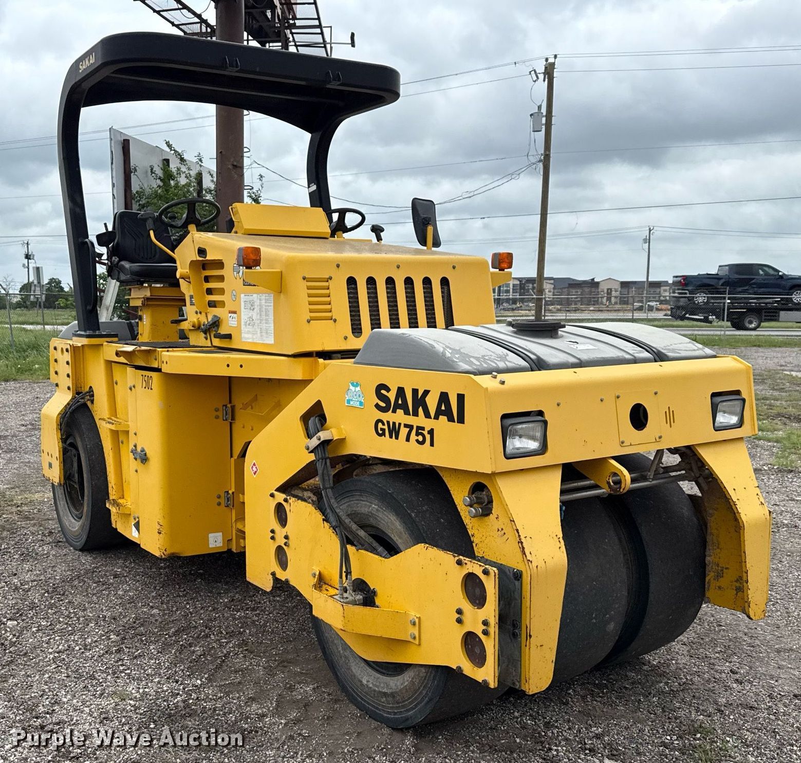 Purple Wave is selling a used Pneumatic Roller in Texas. This item is a 2017 Sakai GW751 pneumatic roller with the following: Hours: 1,417 on meter, Serial: 1GW3-30126, Unit #: 7501