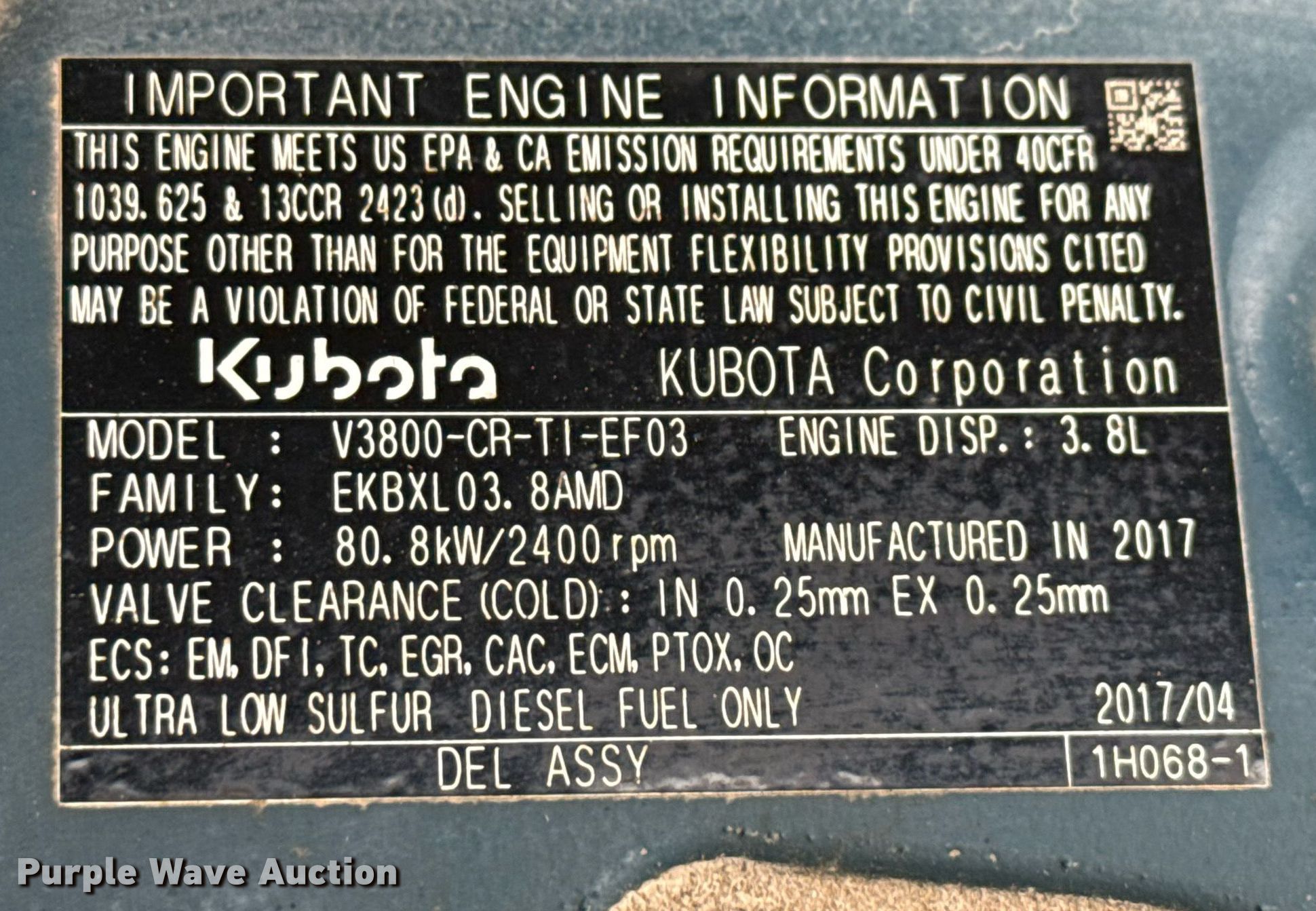 - Kubota V3800