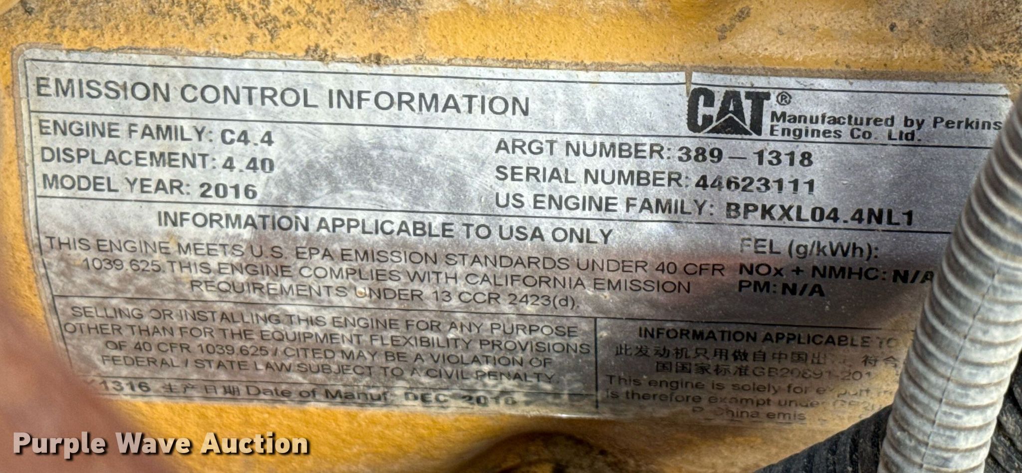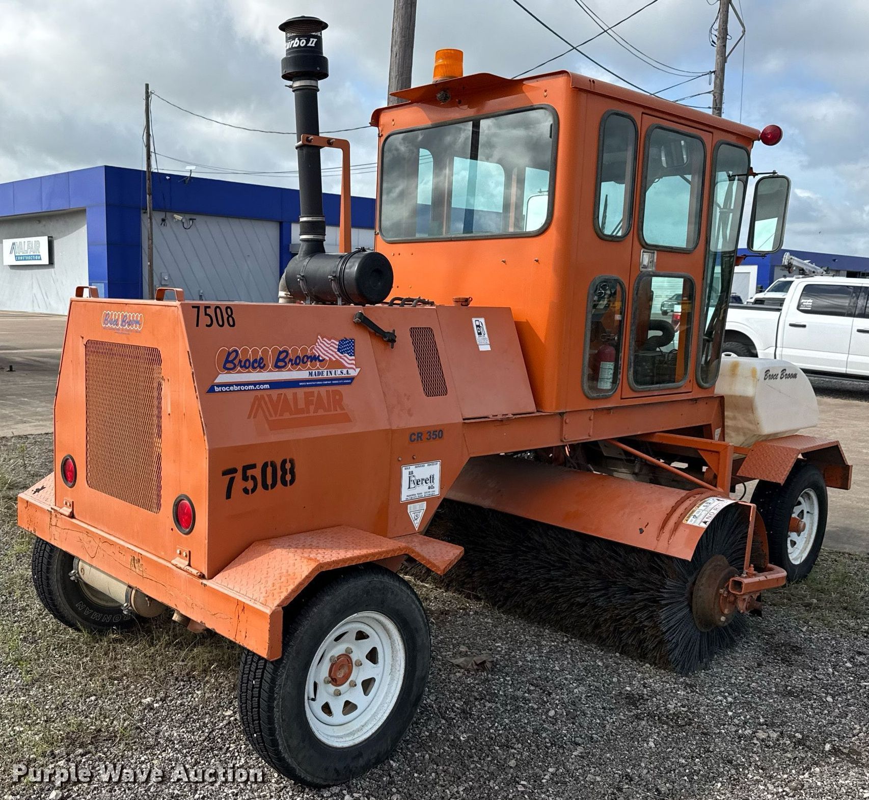 2016 Broce CRT350 broom. Hours: 305 on meter, Serial: 410232, Unit #: 7508. Engine Caterpillar C4.4, Serial: 44623111, Displacement: 4.4L, Cylinders: 4, Fuel type: Diesel. Transmission Hydrostatic. Chassis Brakes: Hydraulic. Operators station Enclosed cab, AC, Heat. Features Broom Width: 96", Water spray system Capacity: 150 gallons. Tires Front: 225/75R16. Notes Fuel delivery issues discovered, Injection pump has been removed, actively being refurbished... Valfair Construction - Open Inspection June 9, 10 and 11. 501 East US Highway 80. Forney, TX 75126