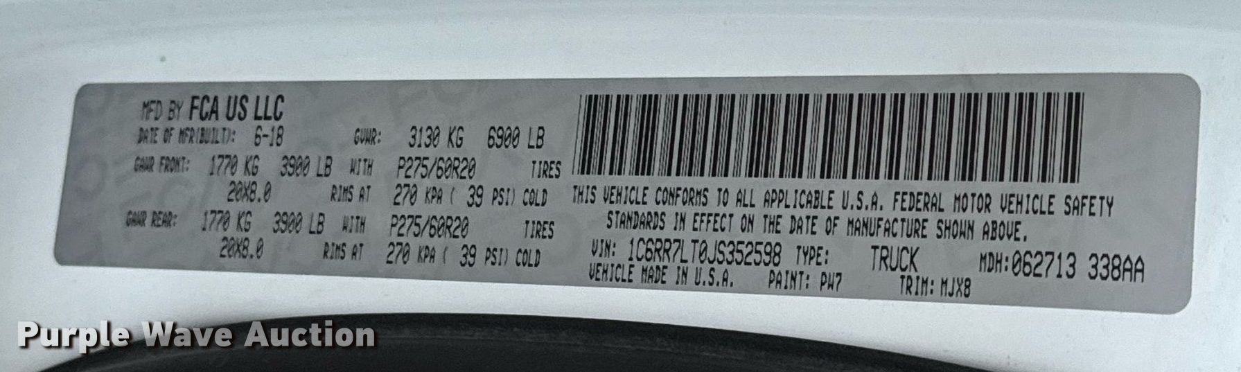 - VIN: 1C6RR7LT0JS352598