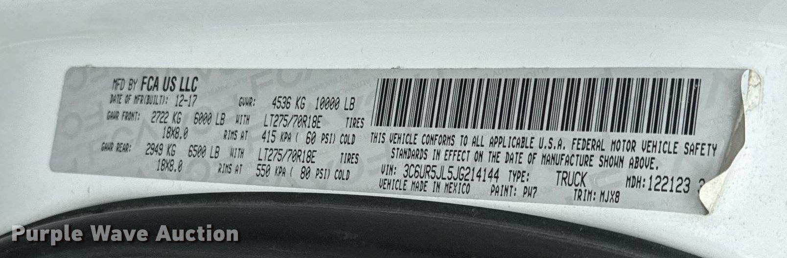This 2018 Dodge Ram 2500 Crew Cab pickup truck will sell to the highest bidder regardless of price.