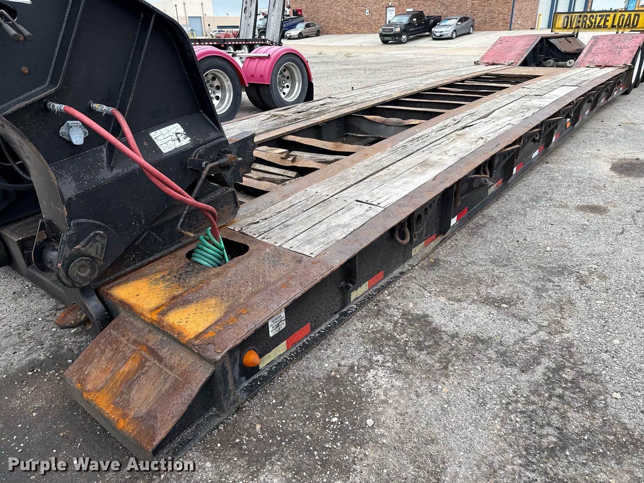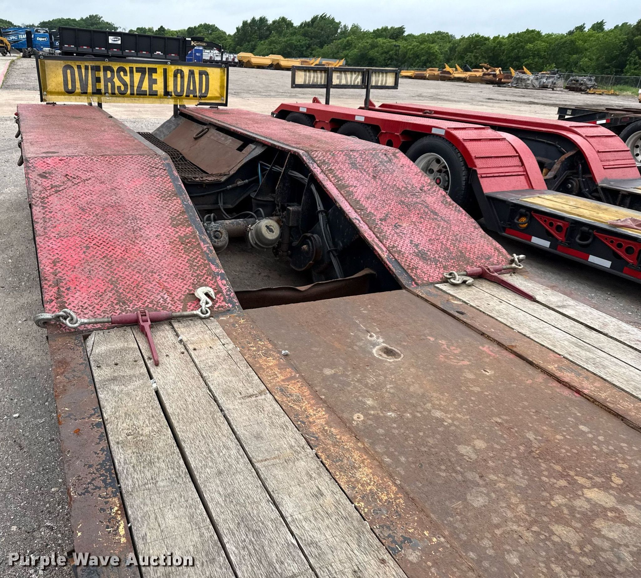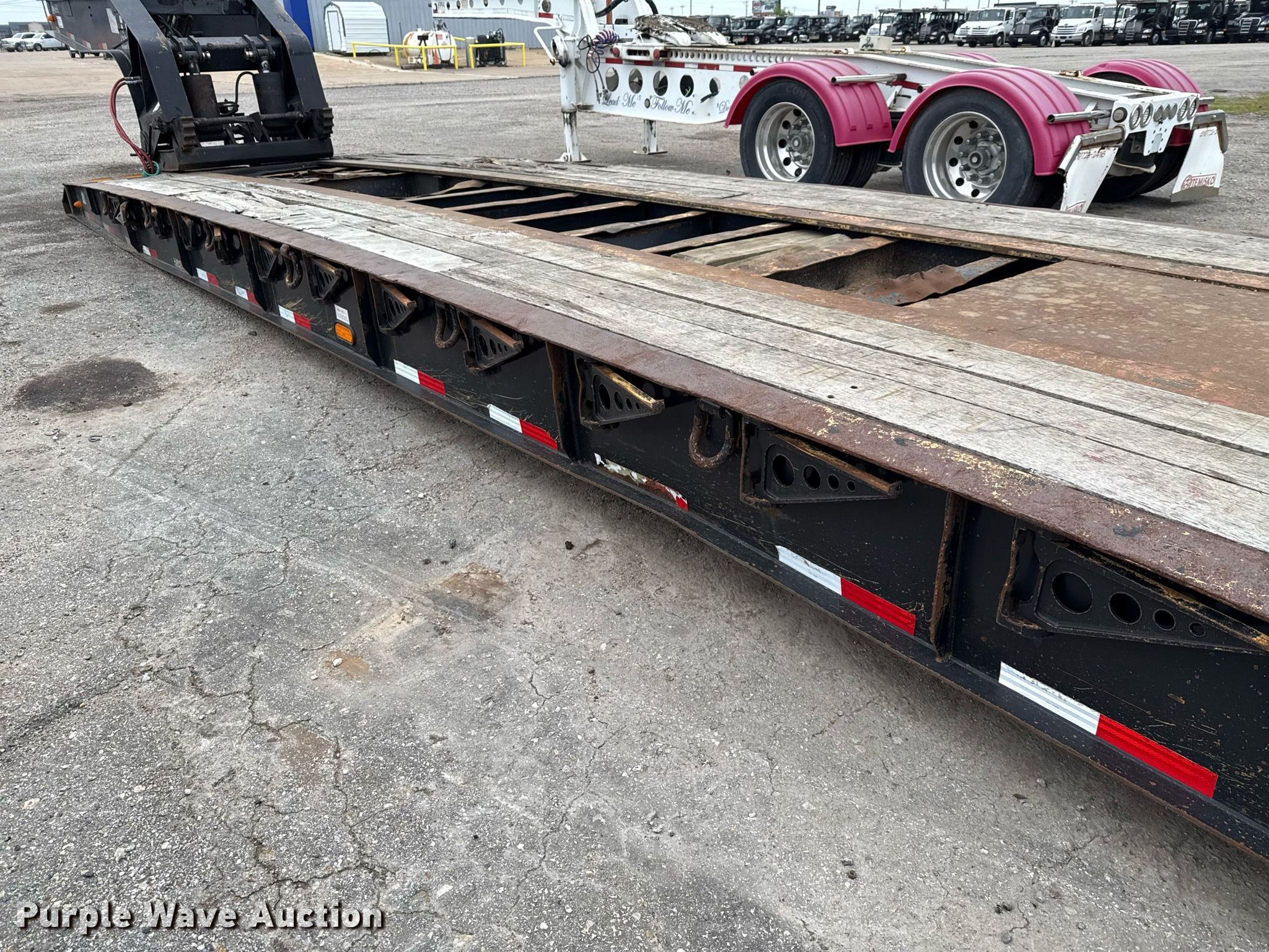 2008 Pitts lowboy equipment trailer. VIN: 5JYLB55378P080599, Unit #: 6992. Dimensions Overall: 54' 5" L x 102" W, Deck: 26' L x 102" W, Rear deck length: 11'. Features Deck type: Steel, Wood, Outriggers: Swing-out Board size: 12", Neck type: Detachable, Hydraulic controls: Manual. Chassis Suspension: Air, Brakes: Air, Axles: Triple, GAWR: 20,280 lbs. Tires Steel wheels, Size: 275/80R22.5. Texas title. Title distribution may be delayed up to 30 days from verification of funds. Valfair Construction - Open Inspection June 9, 10 and 11. 501 East US Highway 80. Forney, TX 75126