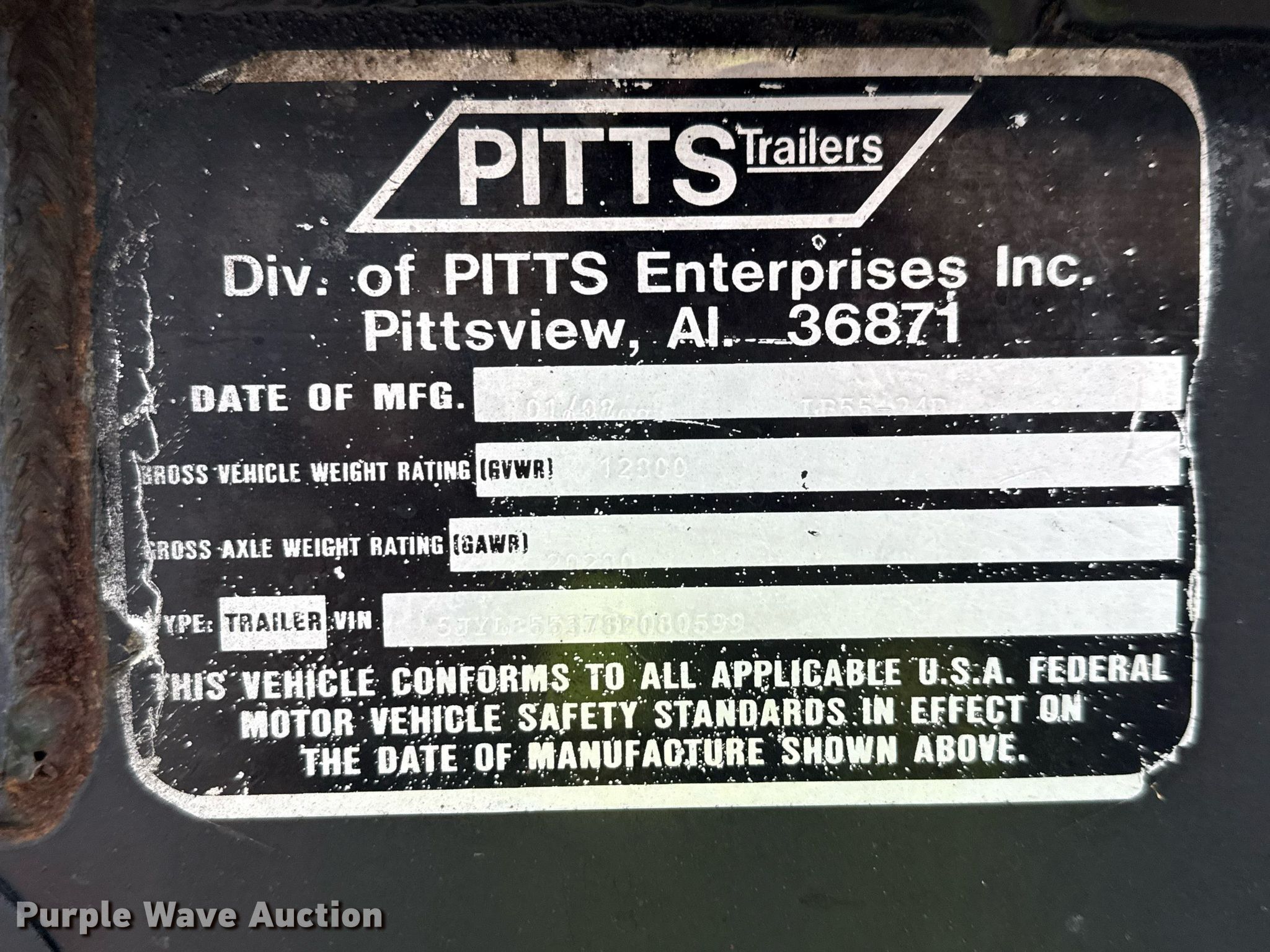 Purple Wave is selling a used Equip. Trailer in Texas. This item is a 2008 Pitts lowboy equipment trailer with the following: VIN: 5JYLB55378P080599, Unit #: 6992