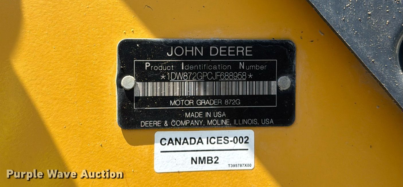 2018 John Deere 872G motor grader | SOLD! June 12 Valfair Construction Auction