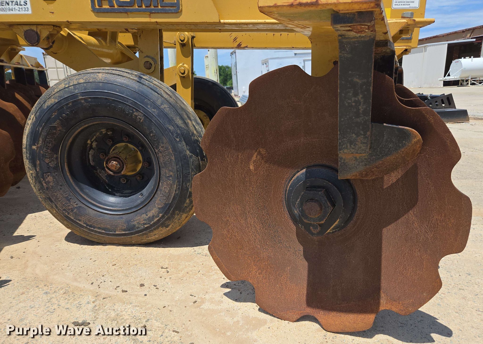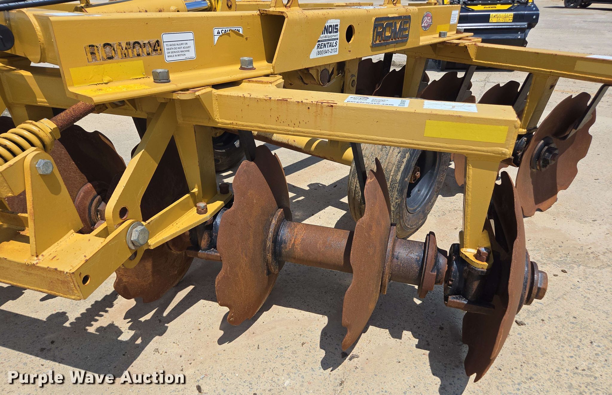 Rome TACW-16 off-set disk. Overall width: 11', Serial: 8TACW-570. Features Front blades Diameter: 32", Spacing: 17", Rear blades Diameter: 32", Spacing: 17", Disk scrapers, Operation Hydraulic lift. Tires Tire size: 12.5L-15. Valfair Construction - Open Inspection June 9, 10 and 11. 700 Southbound Road. Gaston, SC 29053