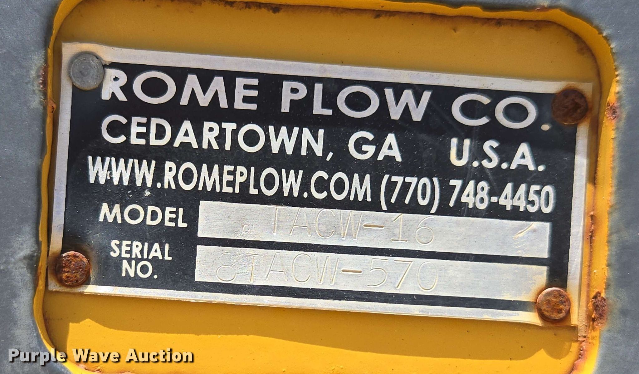 Take a look at this used Rome TACW-16 off-set disk being sold on June 12th, 2025 in the SOLD! June 12 Valfair Construction Auction made by Rome. Take a look at all of the item information below or take a look at similar auctions for Tillage Equipment.
