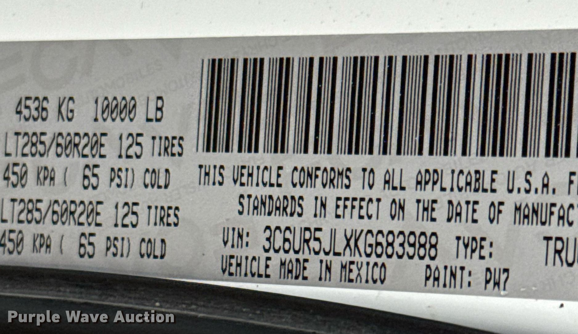 This 2019 Dodge Ram 2500 Crew Cab pickup truck will sell to the highest bidder regardless of price.