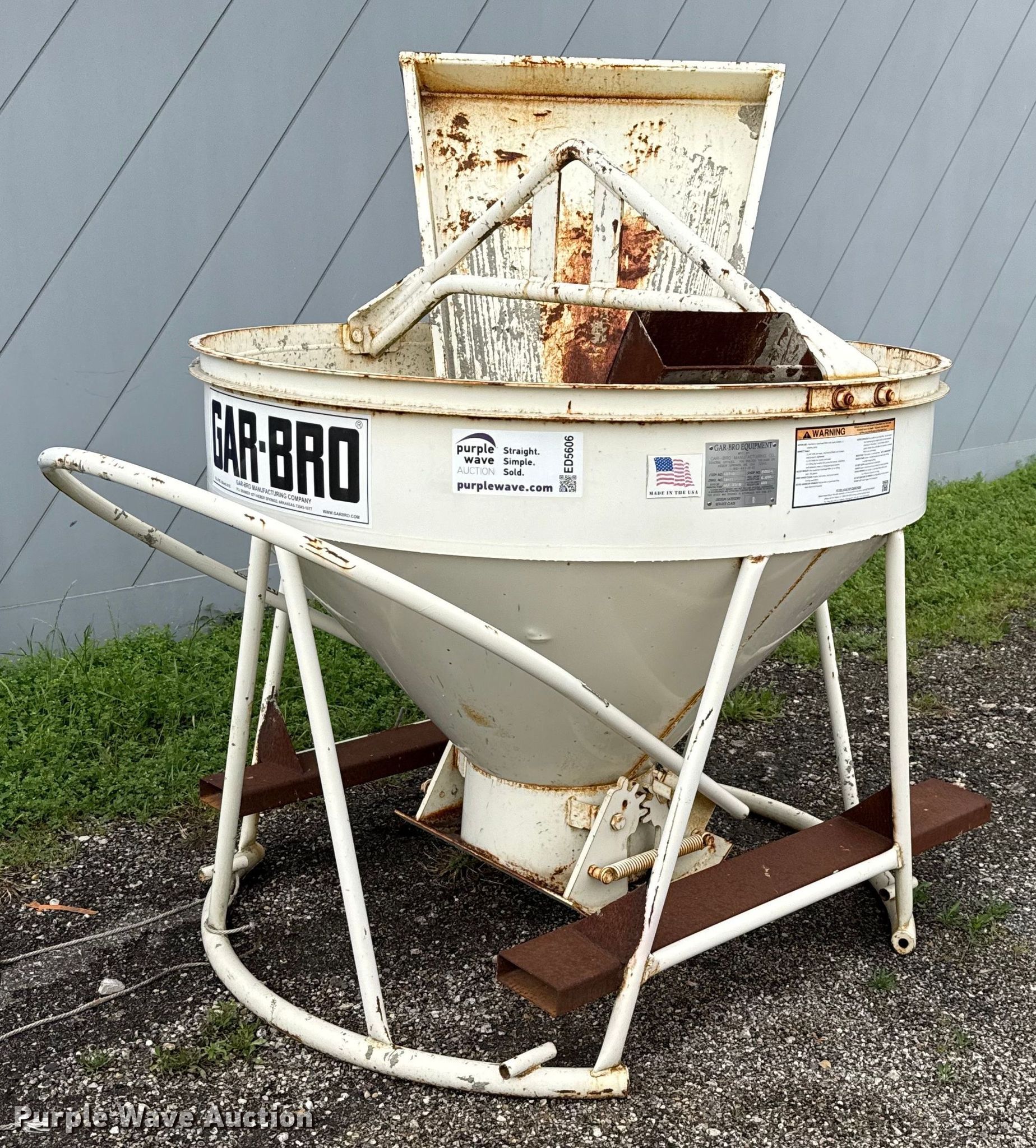 This 2018 Gar-Bro 427-R concrete bucket will sell to the highest bidder regardless of price.