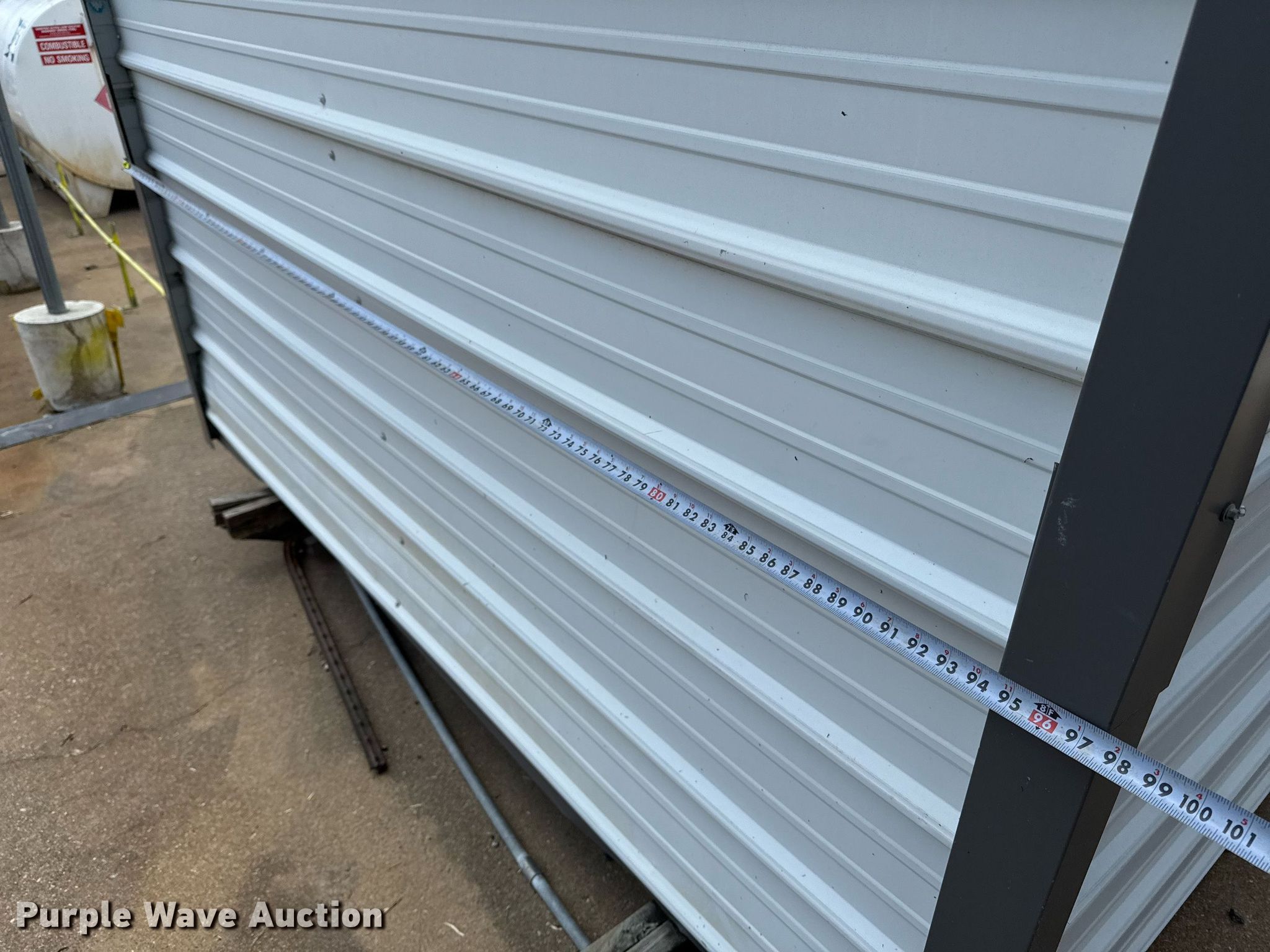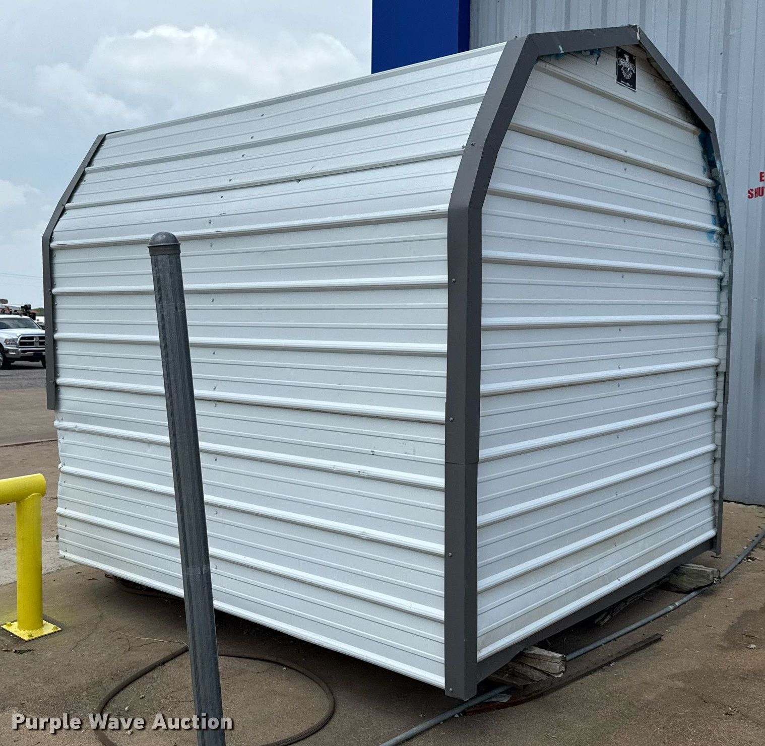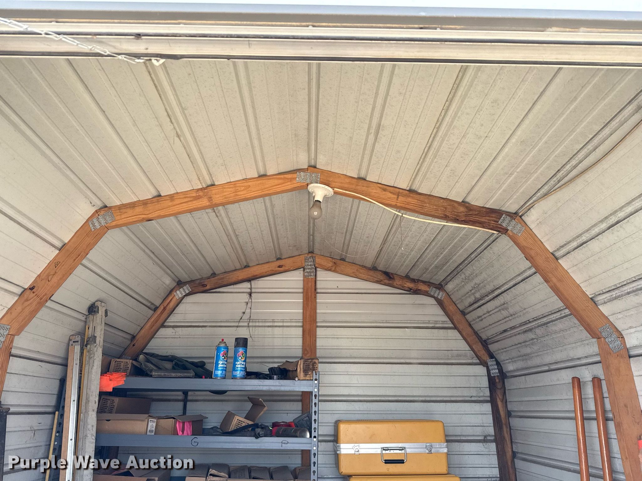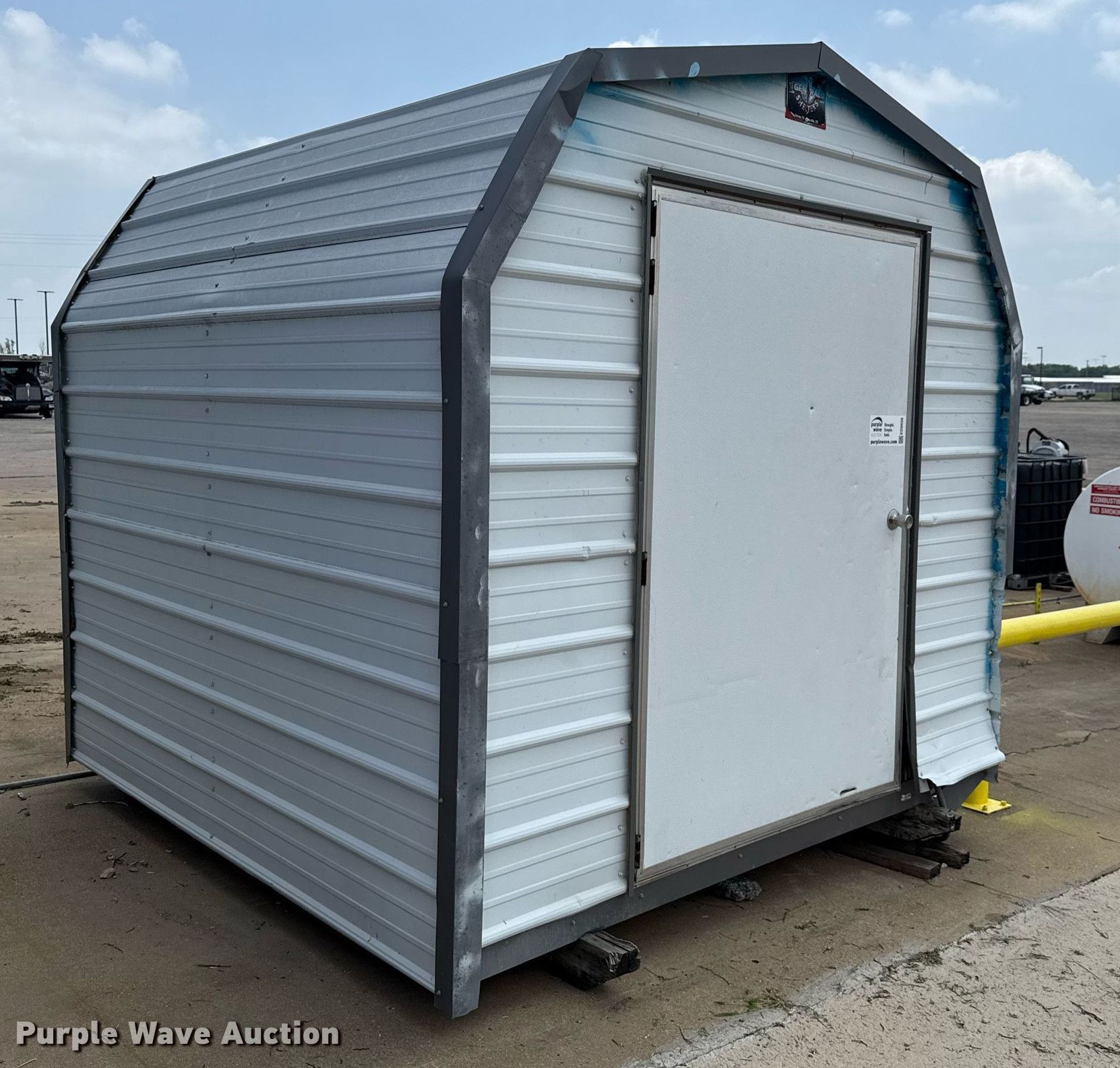 Purple Wave is selling a used Building Materials in Texas. This item is a General Shelters storage shed with the following: Dimensions: 8.5' L x 8' W x 8.5' H, Door: 48"
