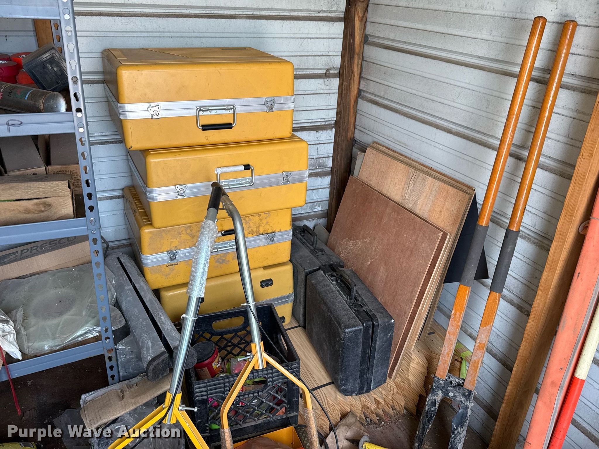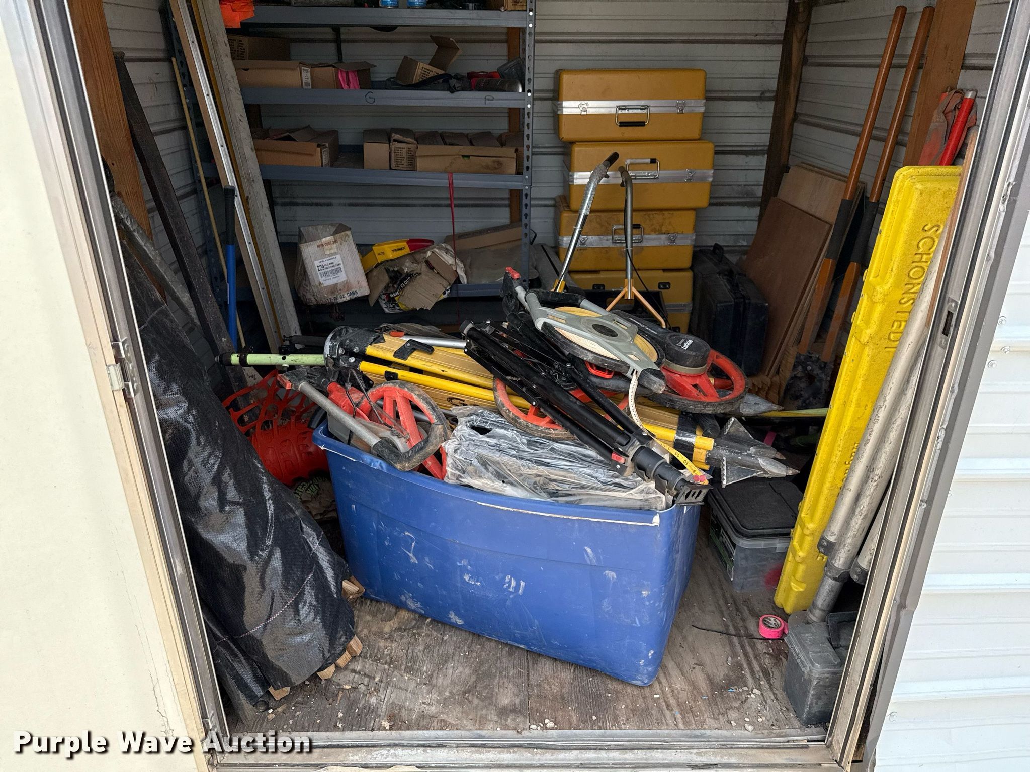 General Shelters storage shed. Dimensions: 8.5' L x 8' W x 8.5' H, Door: 48". Notes Contents included. Valfair Construction - Open Inspection June 9, 10 and 11. 501 East US Highway 80. Forney, TX 75126