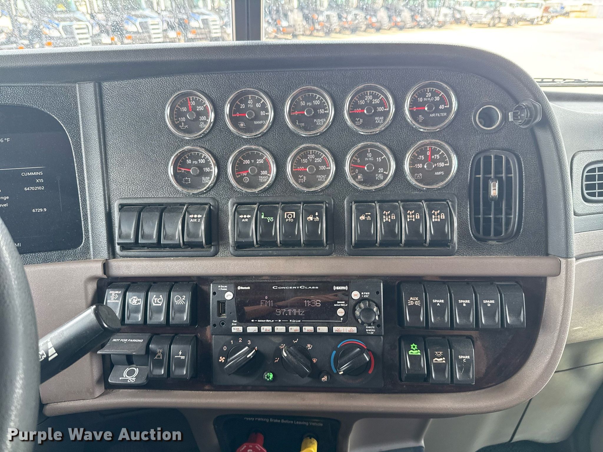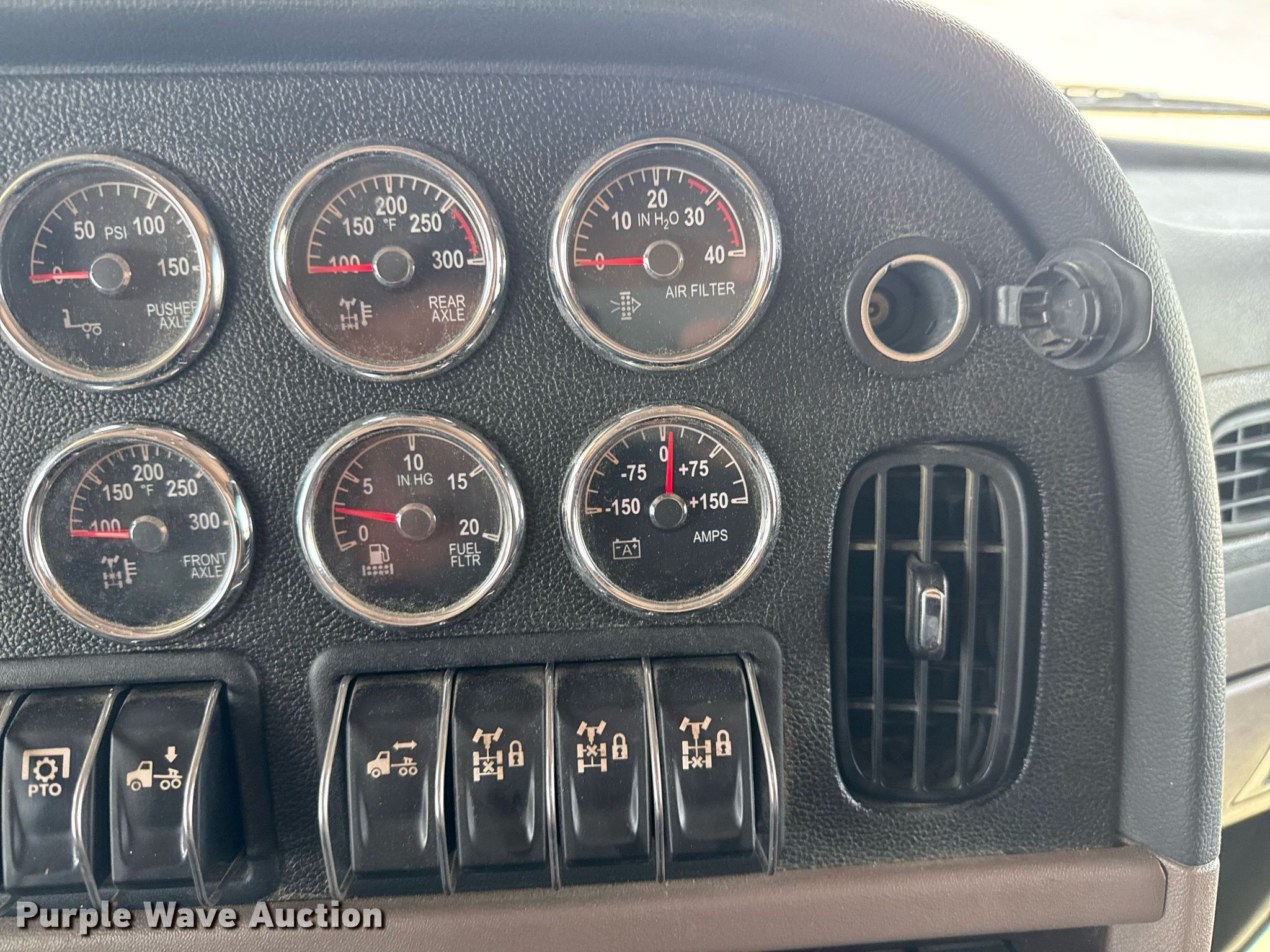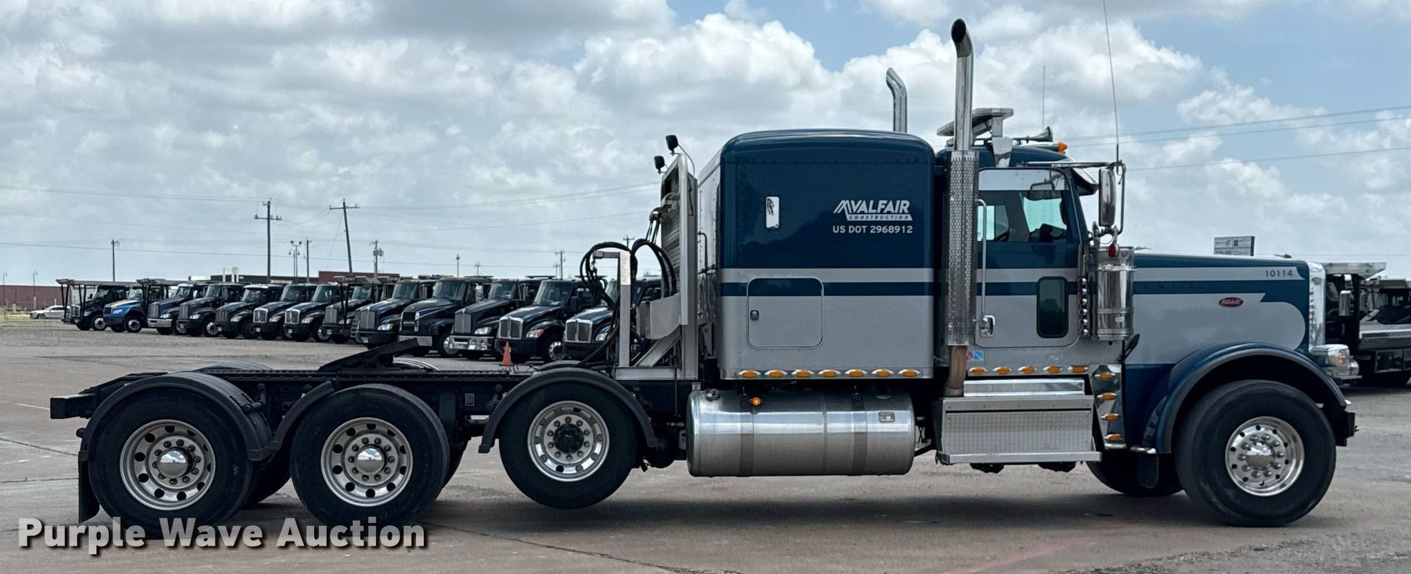 2022 Peterbilt 389 semi truck. Miles: 162,320 on odometer, Hours: 6,730 on meter, VIN: 1XPXP4EX4ND784690, Unit #: 10114. Engine Cummins X15, Serial: 80387493, Displacement: 15.0L, Cylinders: 6, Fuel type: Diesel, HP: 565, Engine brake. Transmission Eaton Fuller, Manual, Speed: 18. Chassis Axles: Triple, Pusher axle, Differential lock: Full, Suspension: Air Dump valves, Brakes: Air, PTO, Wet kit, GVWR: 80,000 lbs FAWR: 20,000 lbs, IAWR: 23,000 lbs, RAWR: 23,000 lbs, Lift axle GAWR: 22,700 lbs. Interior AC, Heat, Heated mirrors, Power windows, Power locks, Cruise control, Air ride cab, Sleeper Sleeper length: 60", Beds: Single, Rear climate control. Features Deck plate: Aluminum, Fifth wheel type: Air operated, Sliding, Fuel tank: Dual. Tires Front: 425/65R22.5, Rear: 11R24.5, Lift axle: 295/75R22.5. Notes Windshield chipped or cracked. Texas title. Title distribution may be delayed up to 30 days from verification of funds. Valfair Construction - Open Inspection June 9, 10 and 11. 501 East US Highway 80. Forney, TX 75126