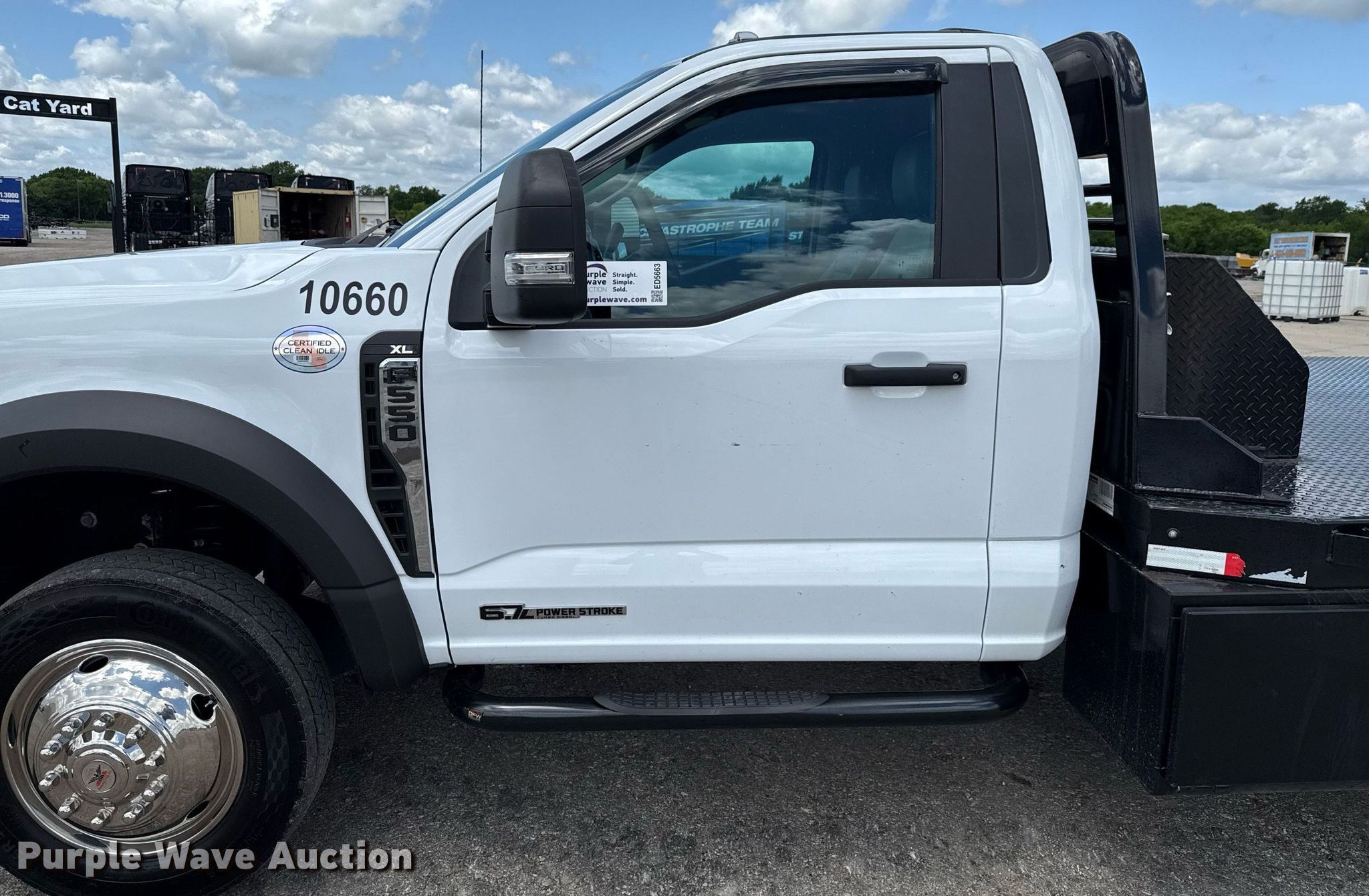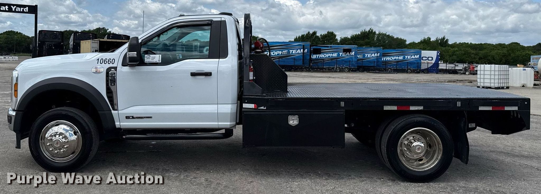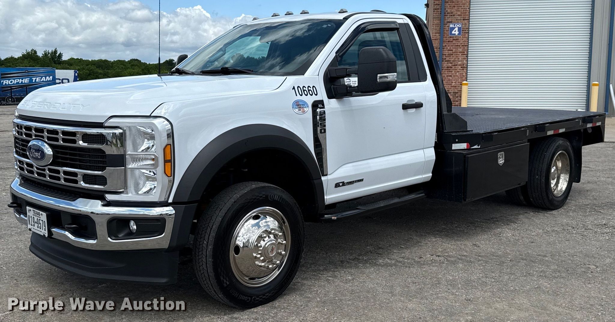 Purple Wave is selling a used Flat Bed Truck in Texas. This item is a 2024 Ford F550 Super Duty XL flatbed truck with the following: Miles: 76,616 on odometer, Engine hours: 1,937 on meter, VIN: 1FDUF5GT8RDA04800, Unit #: 10660