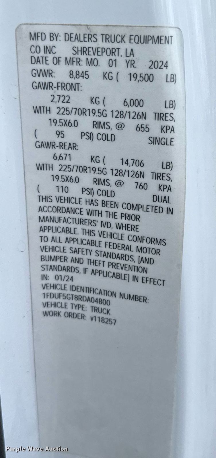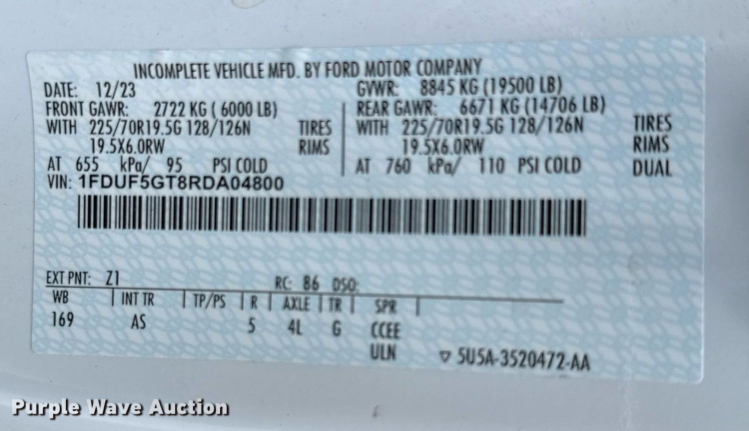 - VIN: 1FDUF5GT8RDA04800