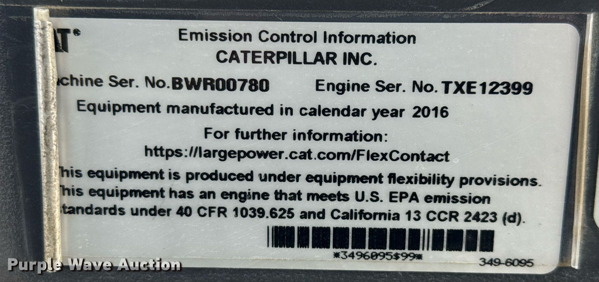 2016 Caterpillar RM300 reclaimer. Hours: 1,841 on meter, Serial: BWR00780, Unit #: 7868. Engine Caterpillar C11 Acert, Serial: TXE12399, Displacement: 11.1L, Cylinders: 6, Fuel type: Diesel. Transmission Hydrostatic, Two speed travel, Differential lock. Operators station Enclosed cab, AC, Heat, Backup camera, Steering: Crab. Features Cutting head Width: 96", Cutting speeds: 3, Teeth. Tires Front: 28L-26, Rear: 18.4-30. Notes Glass cracked. Valfair Construction - Open Inspection June 9, 10 and 11. 501 East US Highway 80. Forney, TX 75126